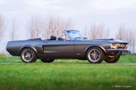 Ford Mustang Convertible, bouwjaar 1967. Kleur antraciet metallic met zwarte striping, een zwartlederen interieur en donkergrijze vloerbedekking. Zwarte cabrioletkap. Deze spectaculaire Ford Mustang convertible werd gerestaureerd en gebouwd door Ford Mustang specialist ‘Classic Speed’ in de USA. De auto werd perfect gerestaureerd en gereviseerd. Er werden 4100 uren in de auto geïnvesteerd en de restauratie werd afgerond in het jaar 2014. Een uitvoerige fotoreportage van de restauratie is aanwezig. Deze Ford Mustang verkeert in absolute topconditie en de auto rijdt geweldig! Mustang is tot op het hoogste niveau met bijna alle denkbare opties gerestaureerd. De nieuwe V8 ‘blueprinted’ injectiemotor levert een enorm vermogen van 430 PK (aantoonbaar) en is uitgerust met een automatische versnellingsbak. Tevens zijn de volgende opties gemonteerd; volledig lederen interieur, sportstoelen met stoelverwarming, Mota-lita sportstuur, Airconditioning, speciale 17” aluminium velgen, 13” remschijven voor en achter, speciaal gebouwd RVS uitlaatsysteem, Cobra luchtfilter, Stuurbekrachtiging, elektrische ramen, speciale veren en schokbrekers, Retrosound radio en een elektrische soft-top, Deze Mustang is geregistreerd in België. Dit is en zeer bijzondere Ford Mustang in fabelachtige topstaat!