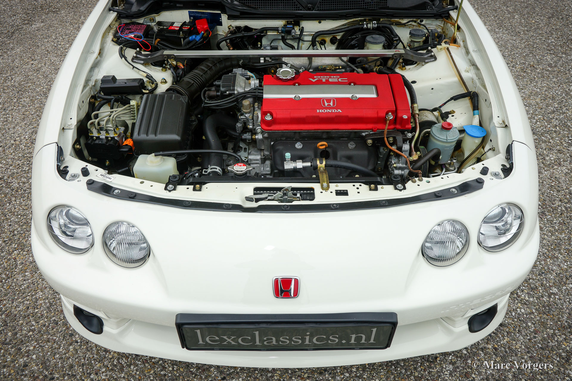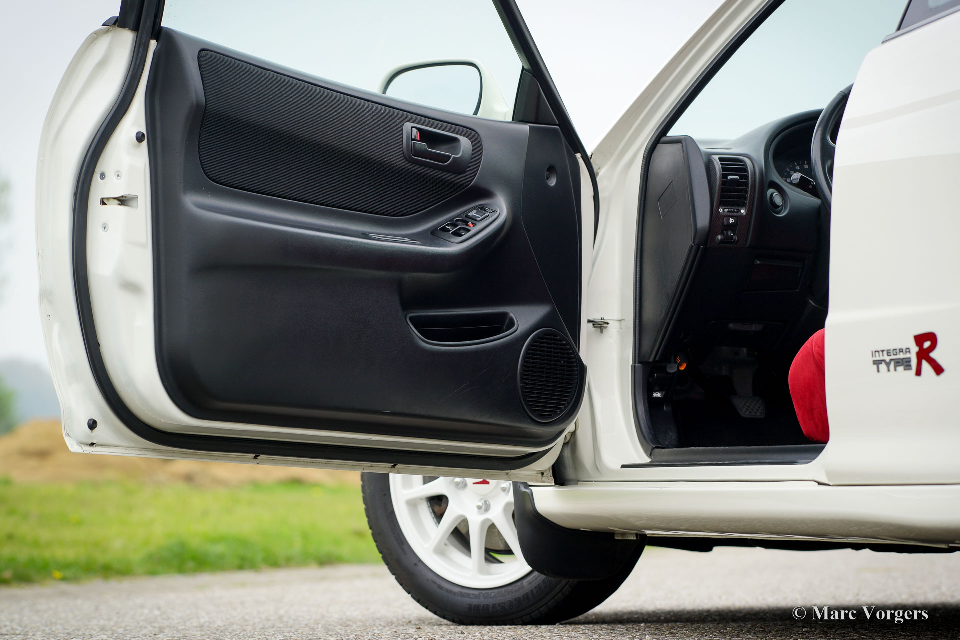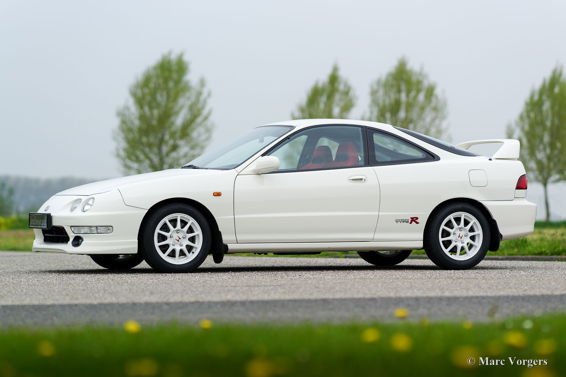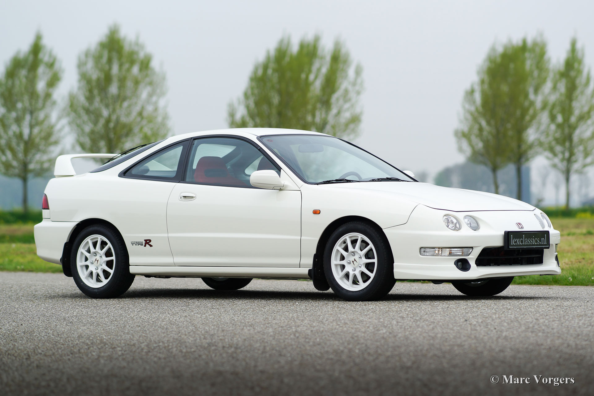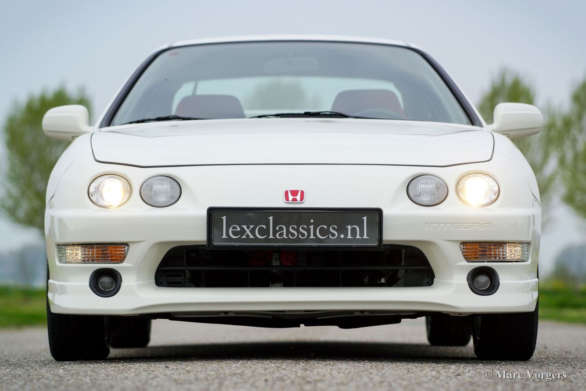Honda Integra Type-R, jaar 1998. Kleur ‘Formula 1 White’ met een zwart/ rood interieur. Dit is een van de 70 nieuw in Nederland verkochte exemplaren. Dit is een van de weinige Nederlandse exemplaren die afgeleverd werden met airconditioning.