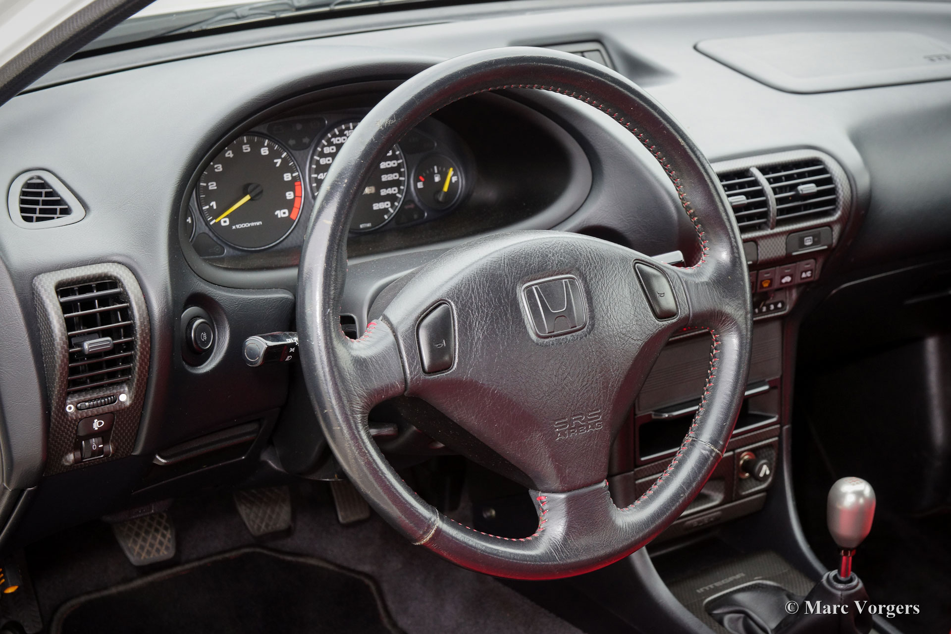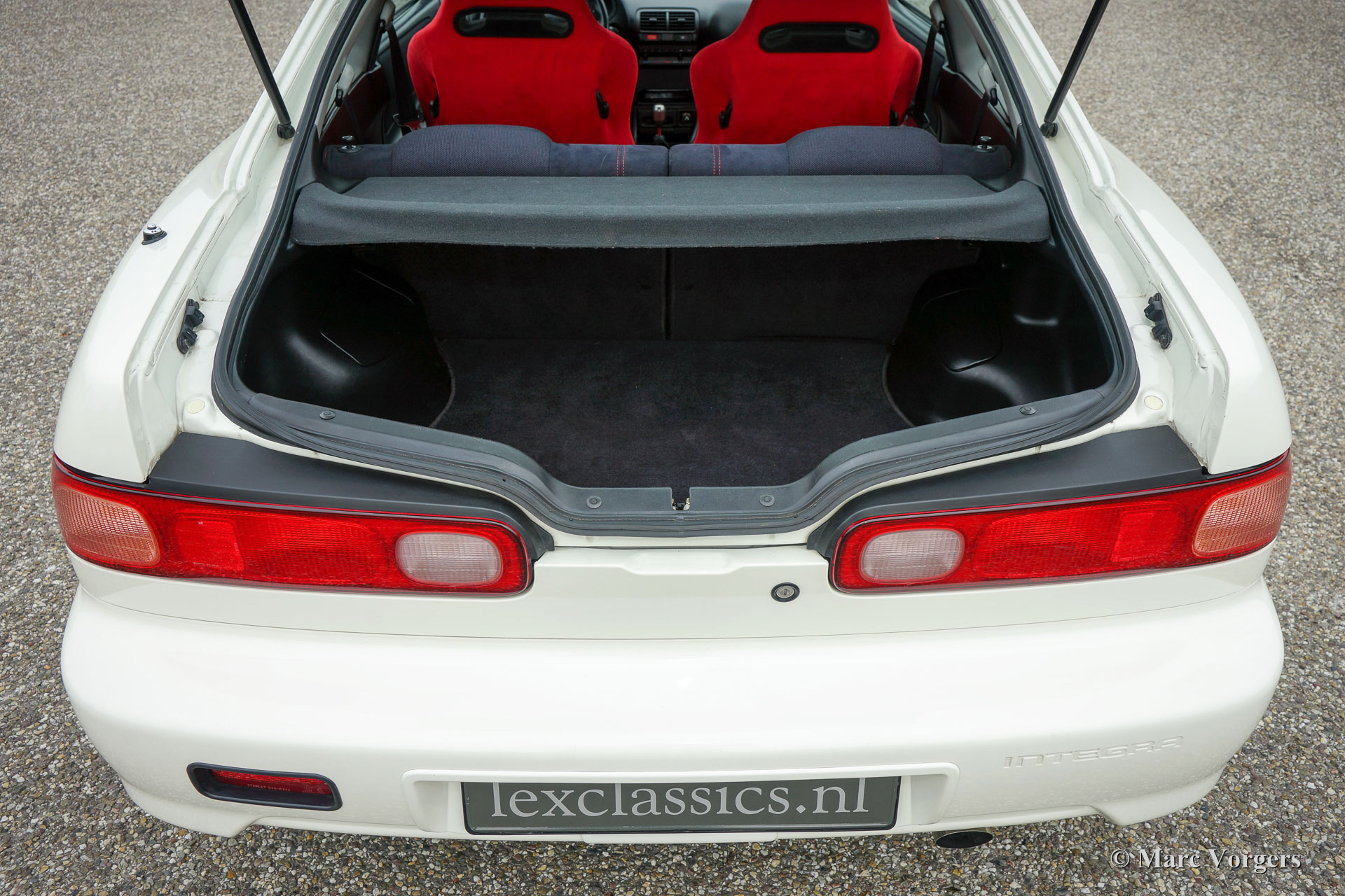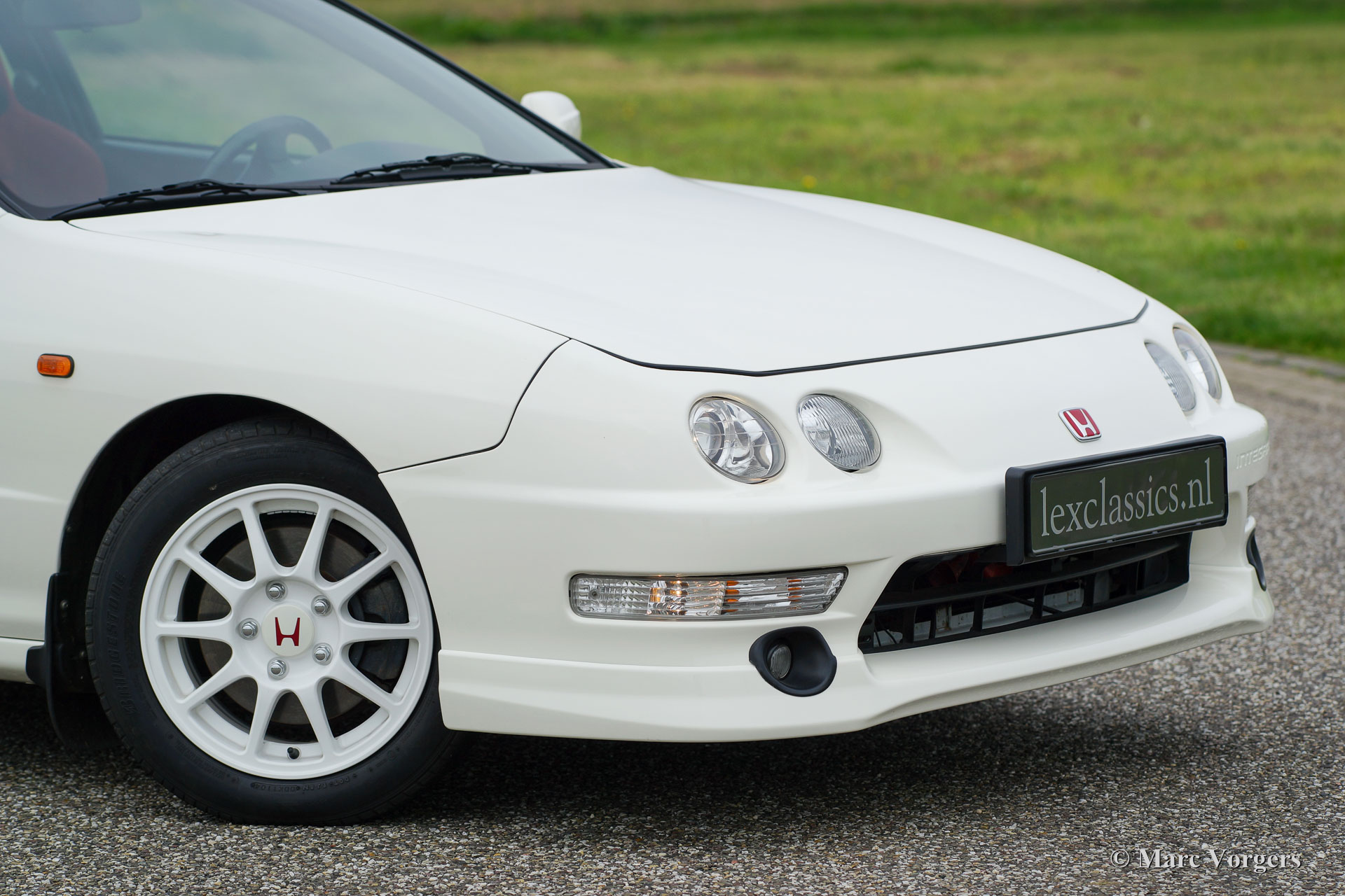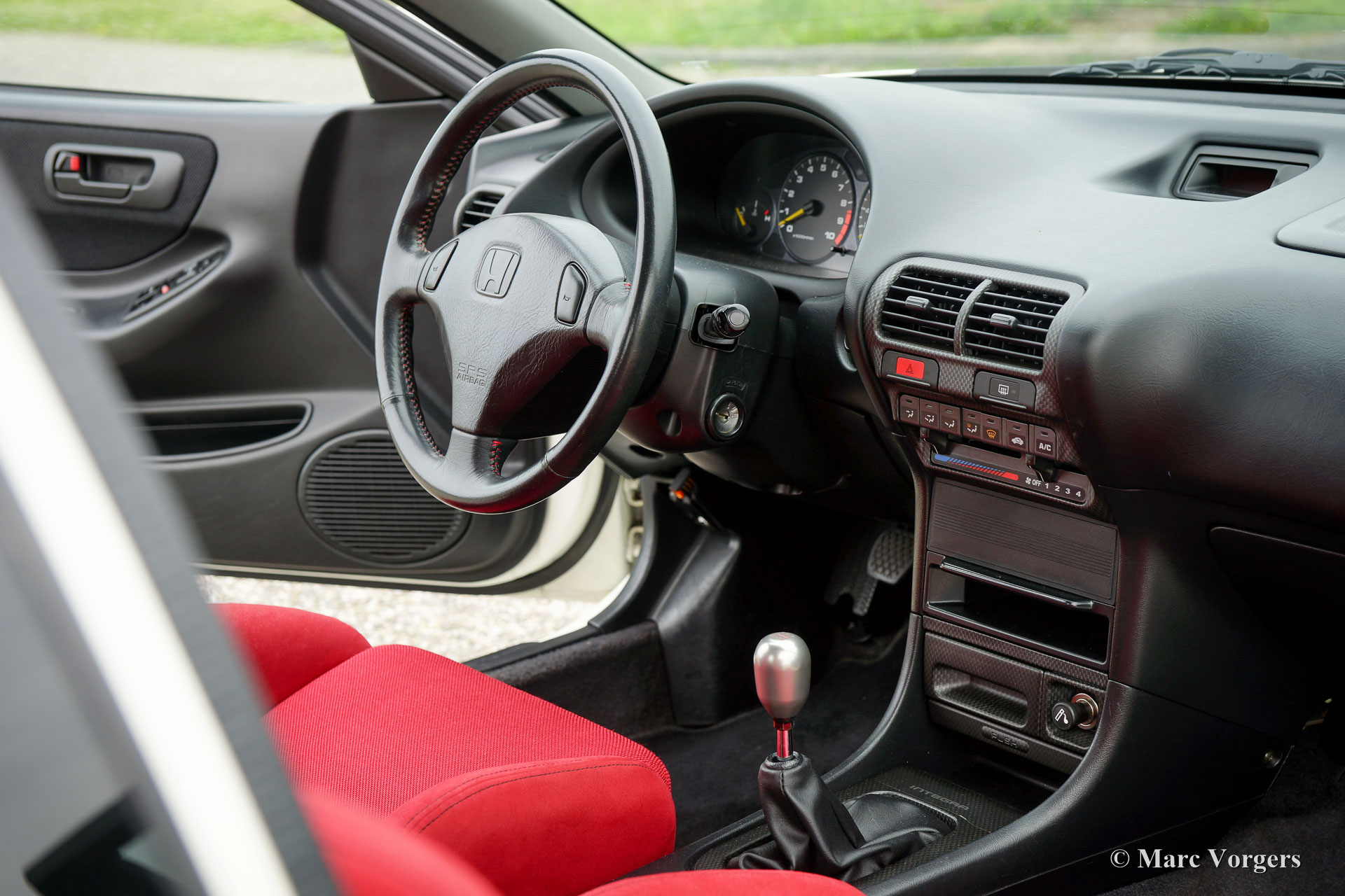 Honda Integra Type-R, jaar 1998. Kleur ‘Formula 1 White’ met een zwart/ rood interieur. Dit is een van de 70 nieuw in Nederland verkochte exemplaren. Dit is een van de weinige Nederlandse exemplaren die afgeleverd werden met airconditioning.