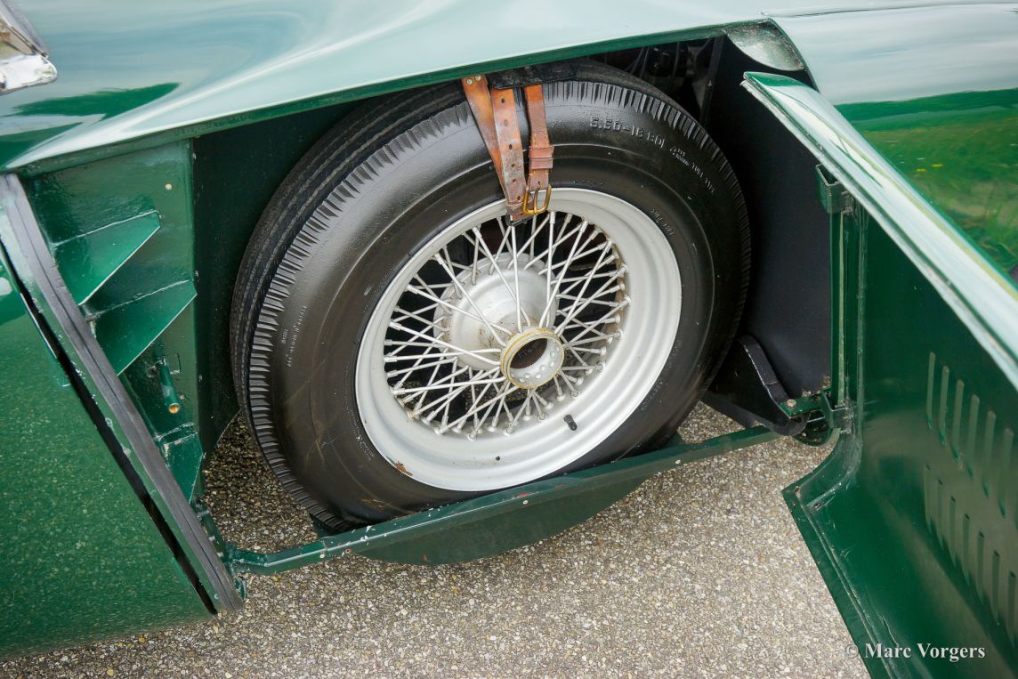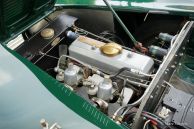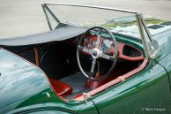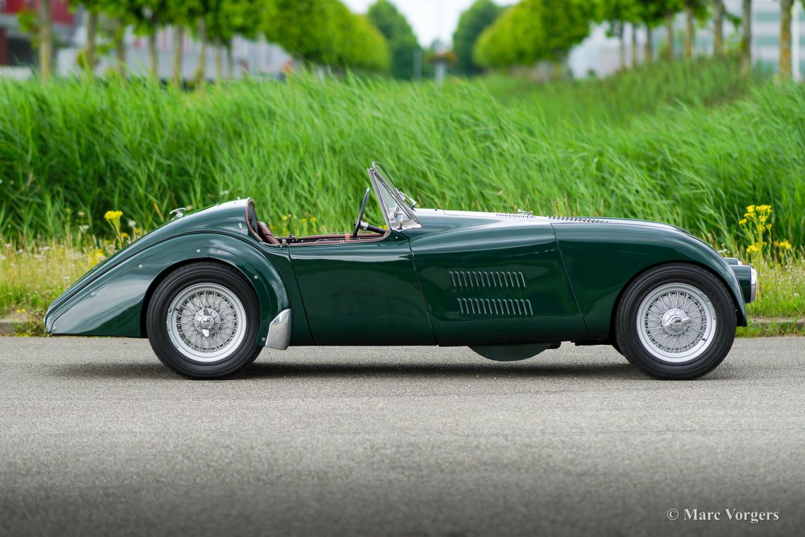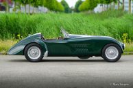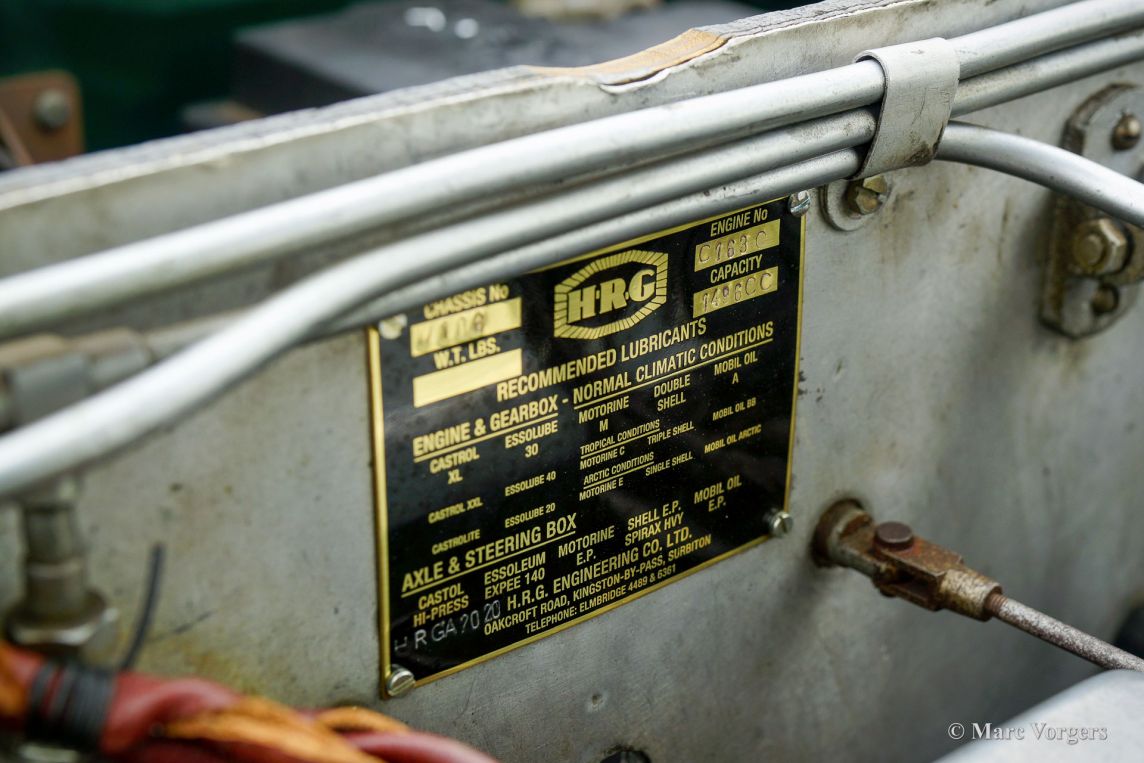 HRG 1500 Aerodynamic, jaar 1947. Kleur donker British Racing Green. Interieur met bruin lederen stoelen. Deze zeldzame en prachtige HRG 1500 Aerodynamic werd nieuw verkocht in het Verenigd Koninkrijk aan de heer Hartford in Fawley. De volledige geschiedenis van de auto is bekend en gedocumenteerd (geschiedenis gedocumenteerd door Ian Dussek historicus van de HRG Association). In het begin van de jaren 1960 werd de auto gerestaureerd naar originele specificaties. Na de restauratie nam de W106 deel aan evenementen en bijeenkomsten zoals de ‘Griffith Formula for Historic Cars’. In de jaren 1990 werd een tweede restauratie gestart door de 5e eigenaar dhr. Halfpenny. De mechanische componenten (motor, versnellingsbak, achteras, chassis) zijn gereviseerd door Roundwood Ltd in Harpenden UK. De heer Halfpenny verkocht de auto als een onvoltooid project in 2017, de nieuwe eigenaar heeft de restauratie in 2019 voltooid. Deze zeldzame automobiel verkeert in een uitstekende conditie met een fraai vintage patina. Deze HRG toont alle originele details en de auto rijdt en schakelt voortreffelijk! De HRG 1500 Aerodynamic is een bijzondere en zeldzame automobiel, er zijn slechts 45 exemplaren van gebouwd van 1945 tot 1949, er zijn nog 20 auto’s van dit type bekend. Deze automobiel vertoont veel interessante technische en stylingdetails. De benzinetank bevindt zich onder het linker voorspatbord en het reservewiel heeft een prominente plaats onder het openklappende rechter voorspatbord. Het met leer beklede dashboard ziet er zeer indrukwekkend uit met een vierspaaks stuur in Brooklands-stijl, zeven meters met chromen ringen en een reeks schakelaars. De auto is uitgerust met bredere 19-inch spaakwielen met klassieke Michelin-banden.