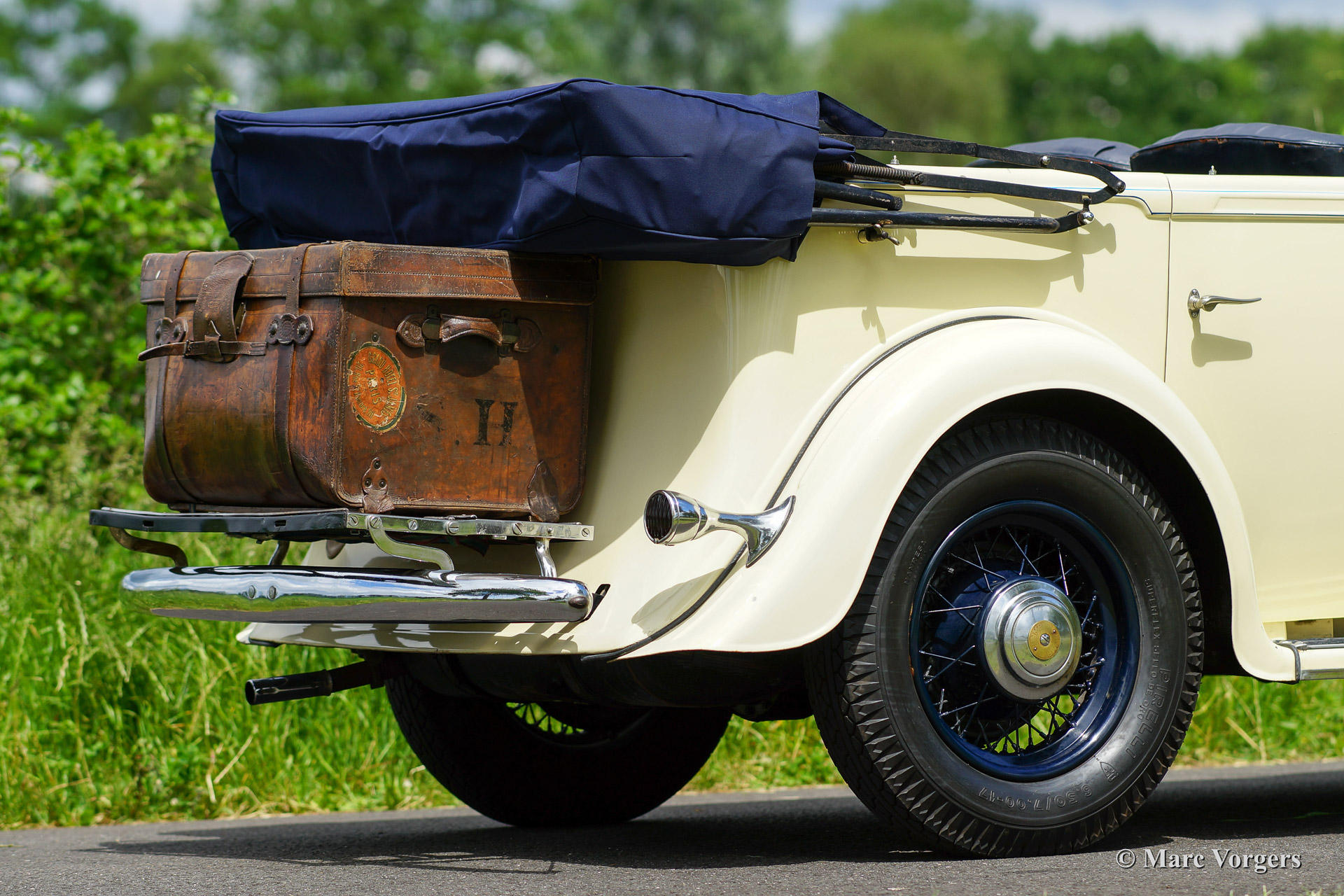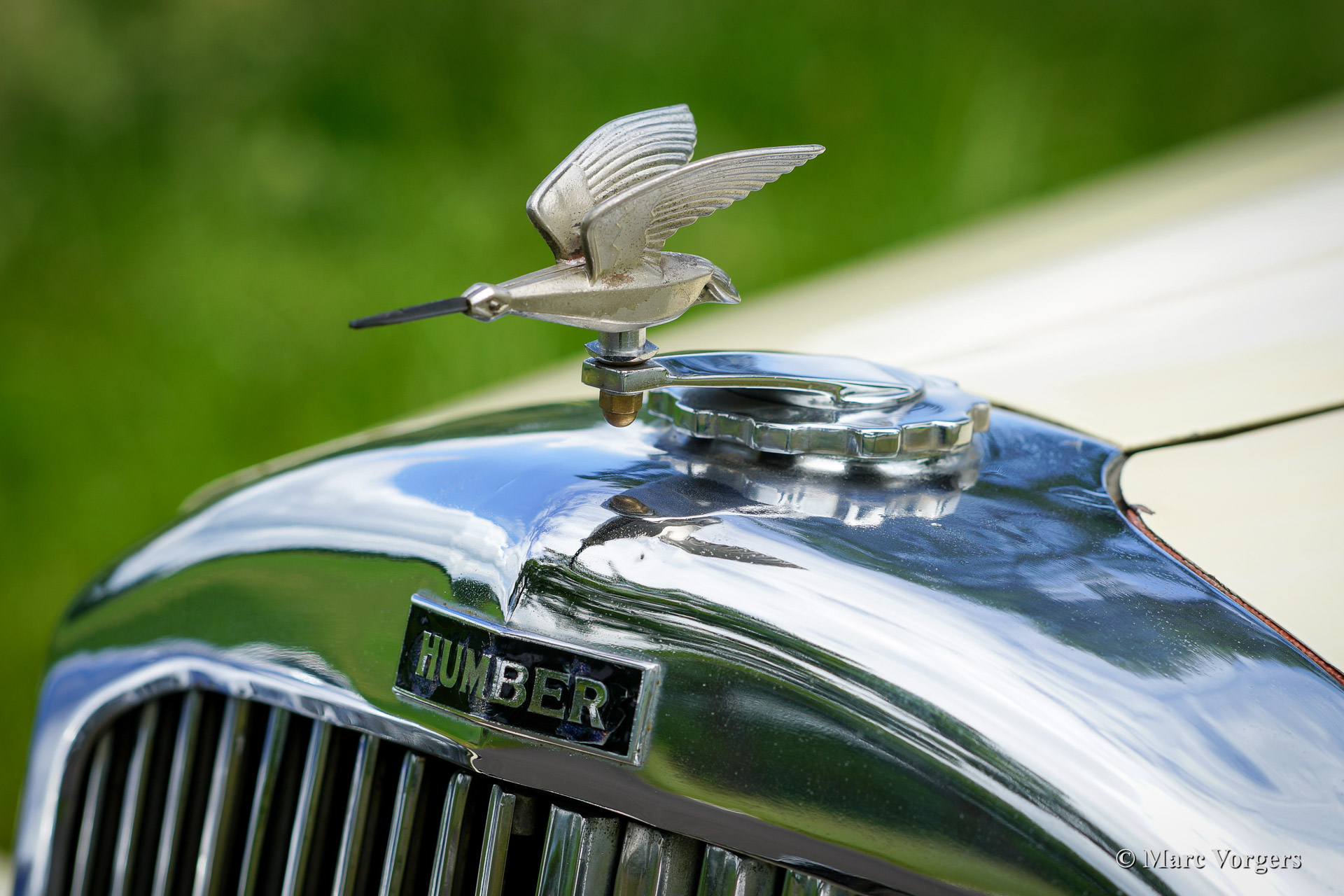 Humber Snipe 80, bouwjaar 1934. Kleur ivoor wit met donkerblauw gelakte spaakwielen. Donkerblauw lederen interieur en donkerblauw tapijt. Donkerblauwe kap, hood cover en tonneau cover. Deze geweldige Humber Snipe 80 open tourer verkeert in zeer goede staat en de automobiel rijdt, schakelt en remt indrukwekkend goed. Aan alles is te merken dat Humber een kwalitatief Engels topmerk was in de vooroorlogse periode. De auto is reeds voorzien van een gesynchroniseerde vier-versnellingsbak met ‘free-wheel’ mogelijkheid. De zescilinder lijnmotor is voorzien van zeven krukaslagers en deze levert bijna tachtig onvermoeibare paardenkrachten. Deze zeldzame Humber is zeer origineel en toont een prachtig patina in de vorm van enige sporen van ouderdom en van gebruik; precies zoals het hoort. De kap, de hood cover en de tonneau cover zijn recentelijk vernieuwd. Een bijzonder fraaie, uitstekend rijdende en zeldzame Britse tourer.