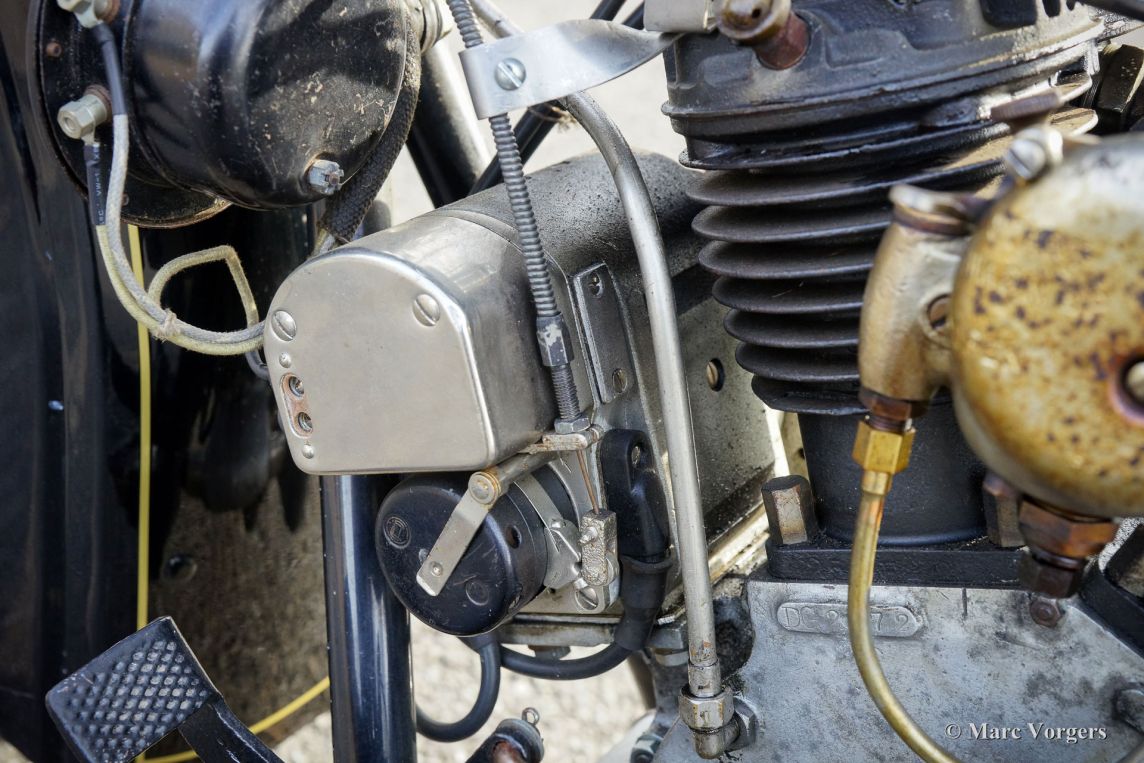 Indian Scout model 101, bouwjaar 1929. Kleur zwart met crème witte benzinetank zijvlakken, zwarte spaakwielen en een donkerbruin leren zadel. Deze zeldzame en zeer speciale Indian Scout motorfiets is enkele decennia geleden gerestaureerd. Deze prachtige machine verkeert in zeer goede staat met een prachtig vintage patina. De 596 cc 2-cilinder (V-Twin) viertakt OHV-motor levert iets meer dan 8 pk en de machine weegt leeg 185 kilogram. Indian was ooit het grootste motorfietsbedrijf ter wereld. De legendarische machines werden gebouwd in Springfield van 1901 tot het midden van de jaren 1950. De vroege motorfietsen van Indian hadden een voorsprong op de concurrentie vanwege het voor die tijd geavanceerde ontwerp. Indian werd voor de Eerste Wereldoorlog beroemd omdat ze zeer competitieve racers bouwden. De motorfietsen waren ook zeer succesvol op het oude Brooklands-circuit in Engeland, waar Indians een 1, 2, 3 overwinning behaalden in de 1911 Senior TT-race. De Indian Scout en de Police Scout zijn de hoogst gewaardeerde Indian-modellen uit de late jaren 1920 en daarom tegenwoordig zeer begeerd door verzamelaars en liefhebbers. Deze legendarische Amerikaanse machines zijn erg moeilijk te vinden in Europa; deze indian Scout is een bijzonder verzamelobject!