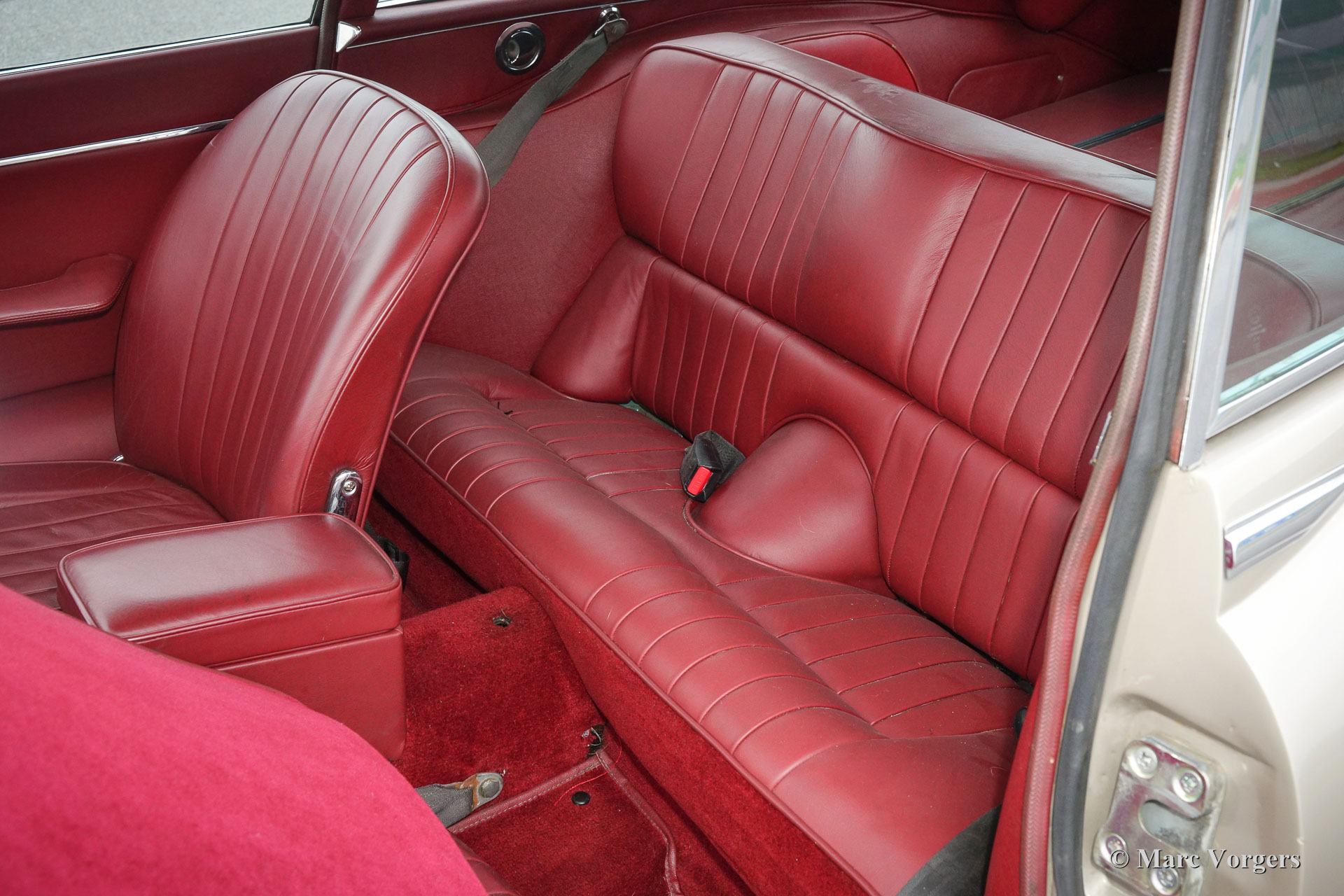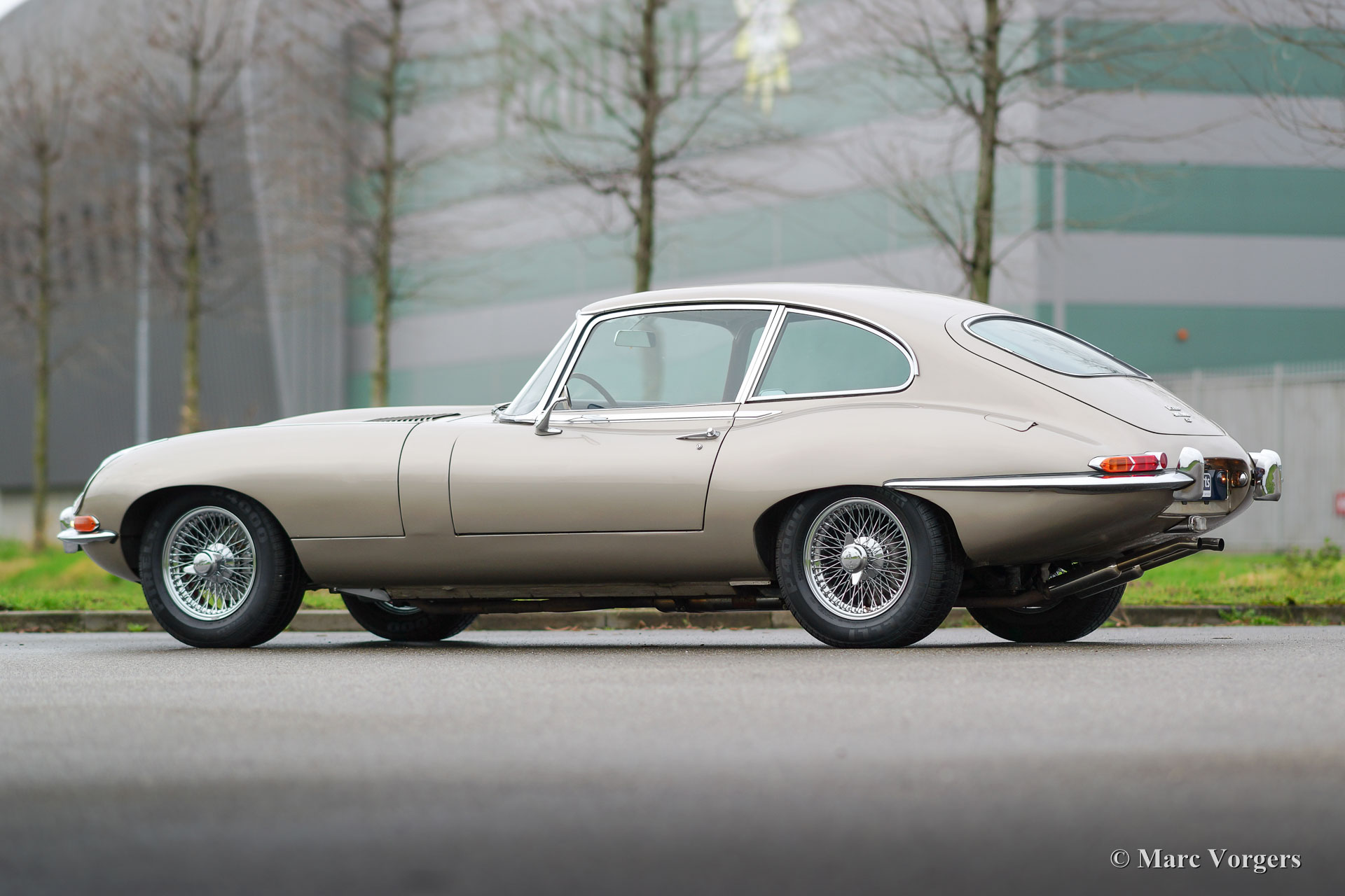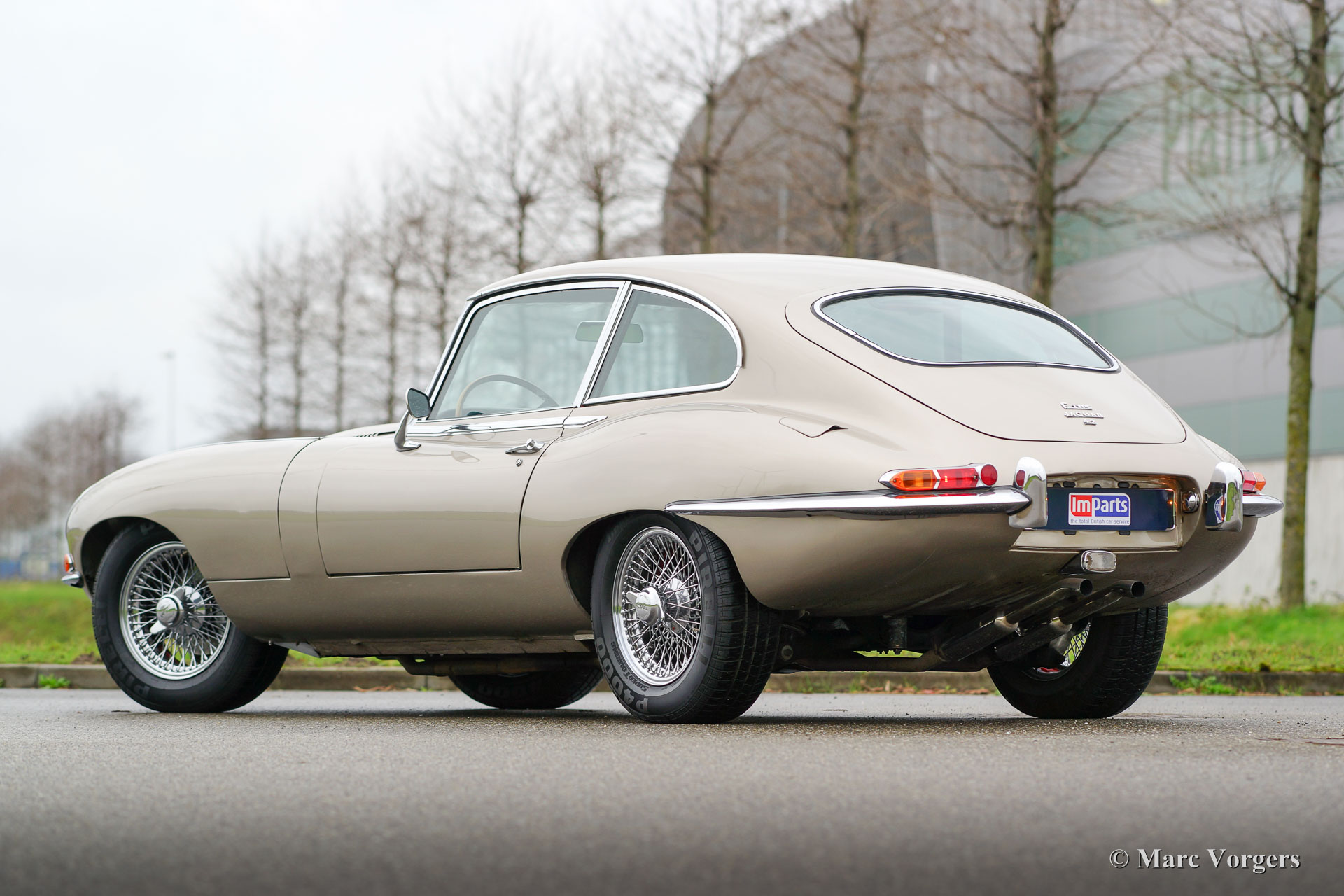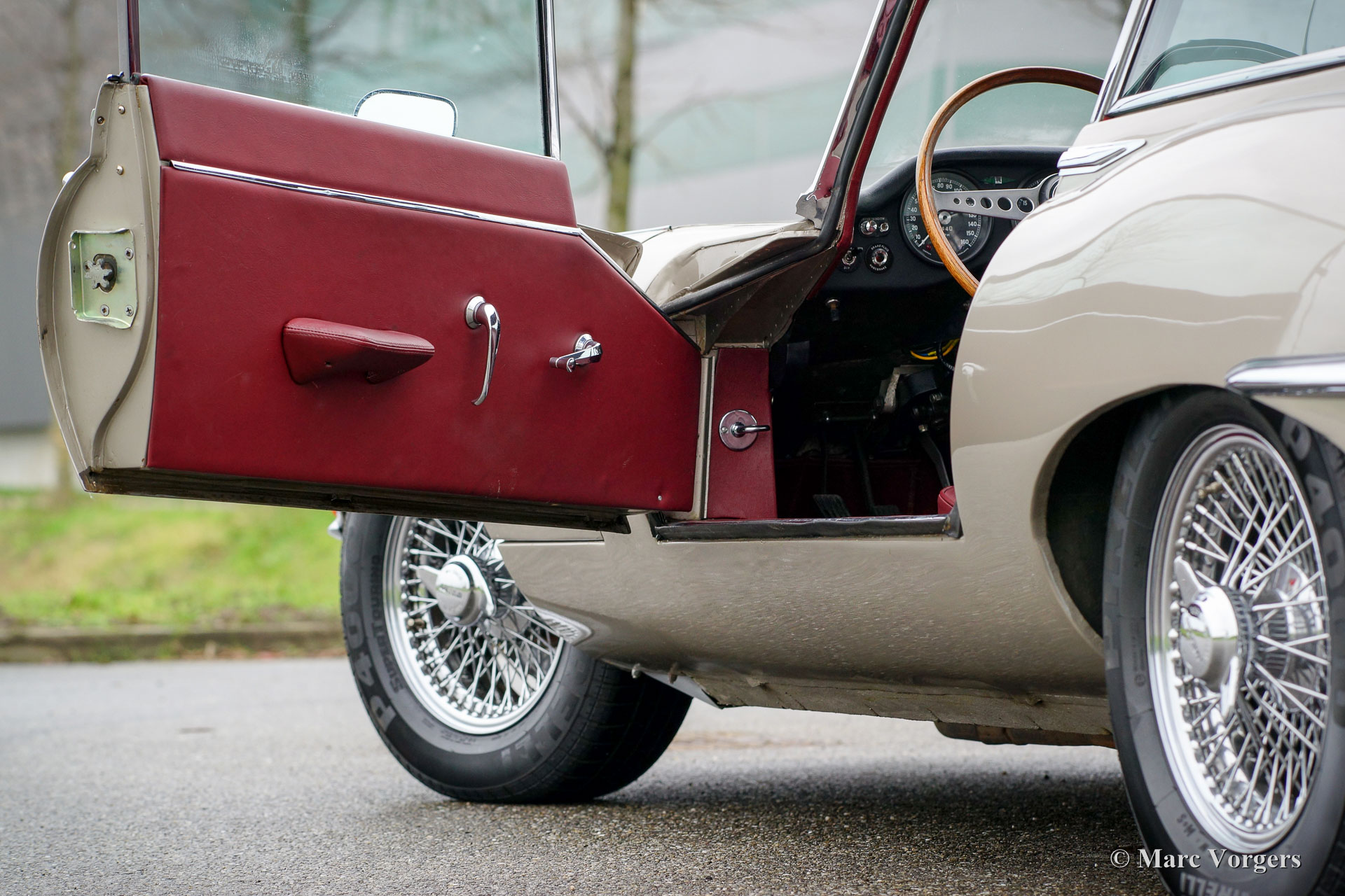 Jaguar E-type 4.2 Litre 2+2 serie 1½ FHC, bouwjaar 1967. Chassisnummer 1E508XX, motornummer 7E5310X-X, ‘matching numbers‘. Kleur ‘Golden Sand’ metallic met een donkerrood lederen interieur. Deze fraaie Jaguar E-type Fixed Head Coupe is een vrij zeldzaam serie 1½ model dat slechts een jaar werd gebouwd van eind 1967 tot eind 1968. Middels dit model maakte de serie 1 de transitie naar de serie 2. Dit model toont hetzelfde als de serie 1 2+2 maar is direct herkenbaar aan de opengewerkte koplampen. Deze Jaguar E-type verkeert in zeer goede staat met enige sporen van gebruik waaronder een paar kleine deukjes. De Jaguar is zeer goed onderhouden. Recent werd de cilinderkop gereviseerd en werd er een aluminium radiator gemonteerd. De auto is uitgerust met een handgeschakelde versnellingsbak, chroom spaakwielen, Pirelli 205/70-15 banden, een ‘high-torque’ startmotor, een RVS uitlaat en een klassieke radio. Deze Jaguar E-type rijdt geweldig!