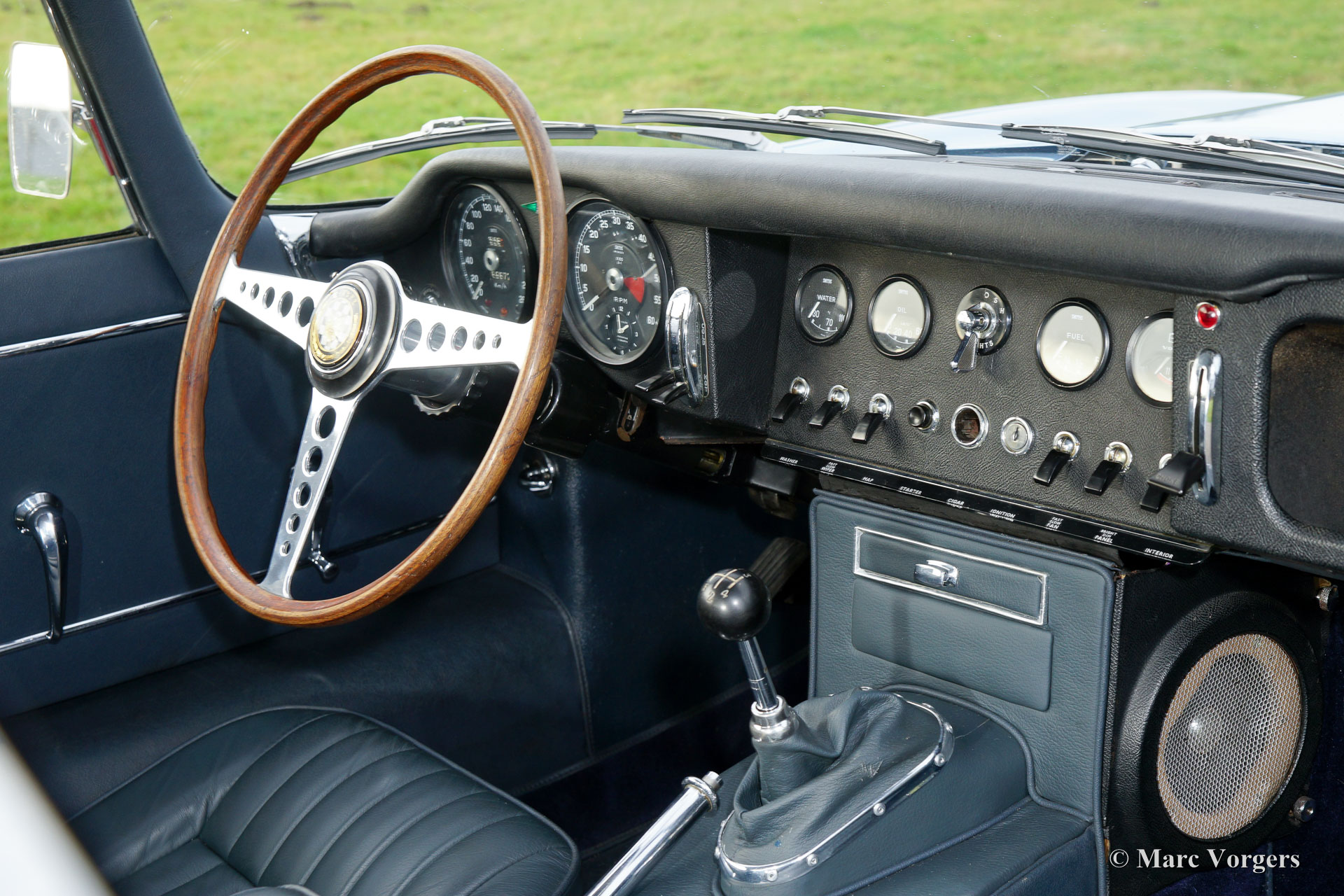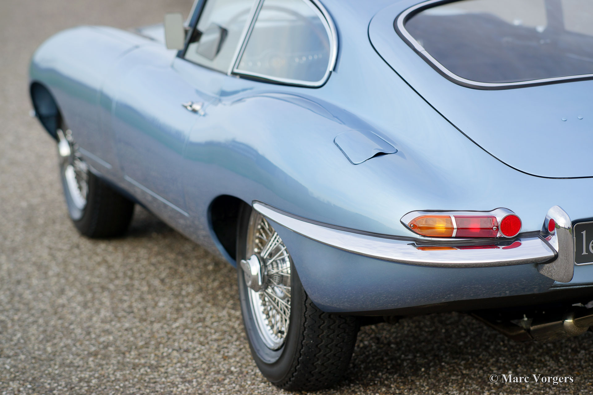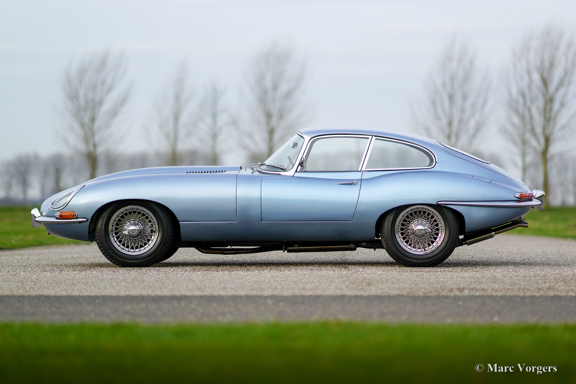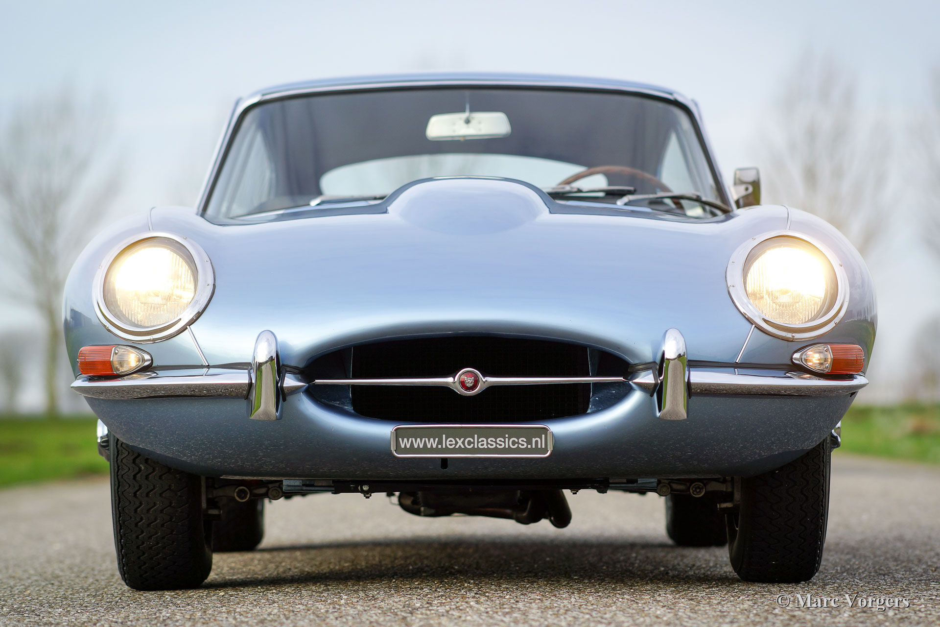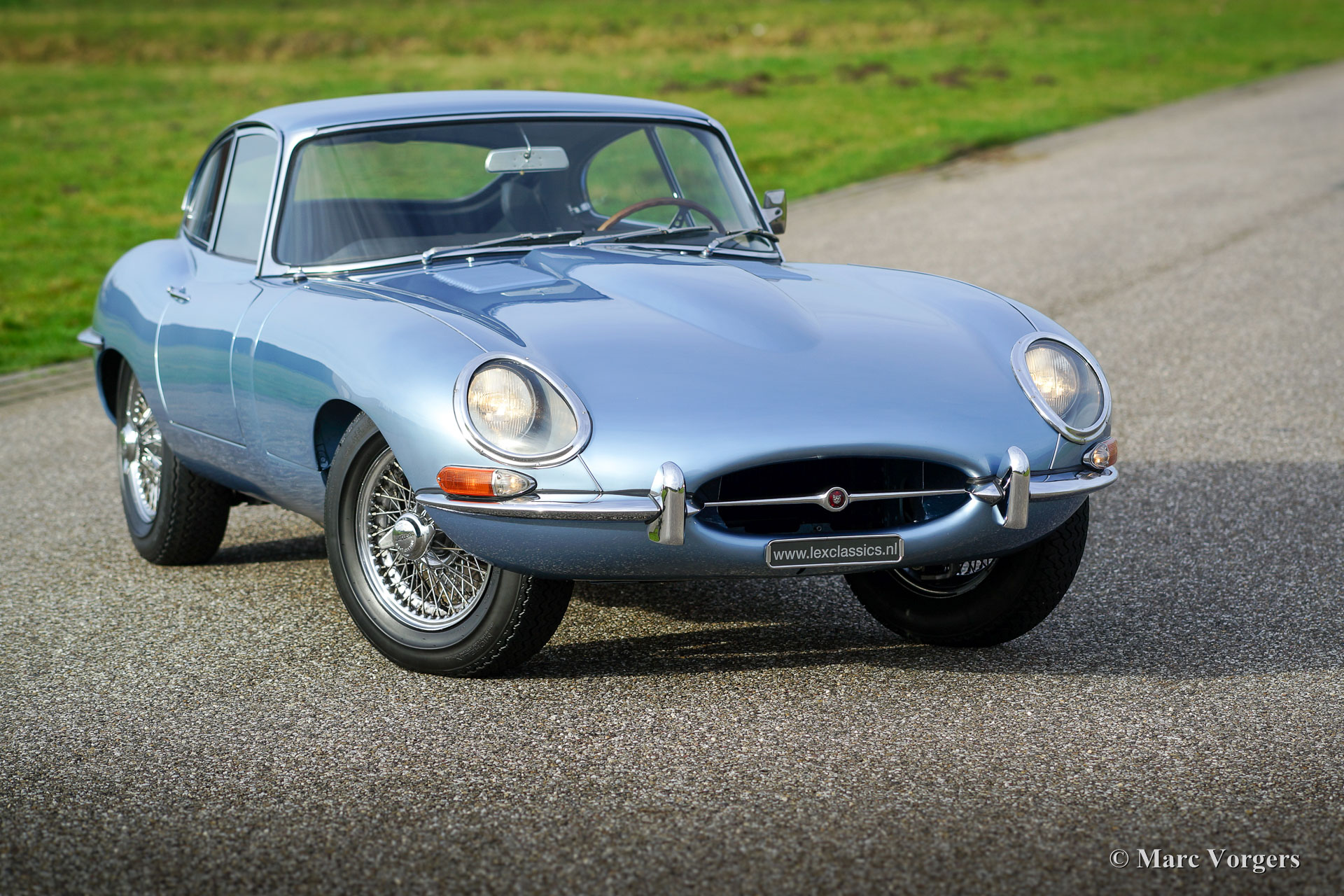 Jaguar E-type 4.2 Litre FHC, jaar 1965. Chassisnummer 3009X. Kleur lichtblauw metallic (Opalescent Silver Blue) met een blauw leren interieur. Deze prachtige Jaguar E-type uit de eerste serie werd nieuw verkocht door toenmalig Jaguar dealer Lagerweij in den Haag. In het verleden werd de auto in Nederland gerestaureerd, foto’s en rekeningen hiervan zijn aanwezig. Deze Jaguar E-type verkeert in zeer goede staat en de auto rijdt geweldig. Het betreft een exemplaar uit de gezochte eerste serie met de gesloten koplampen.