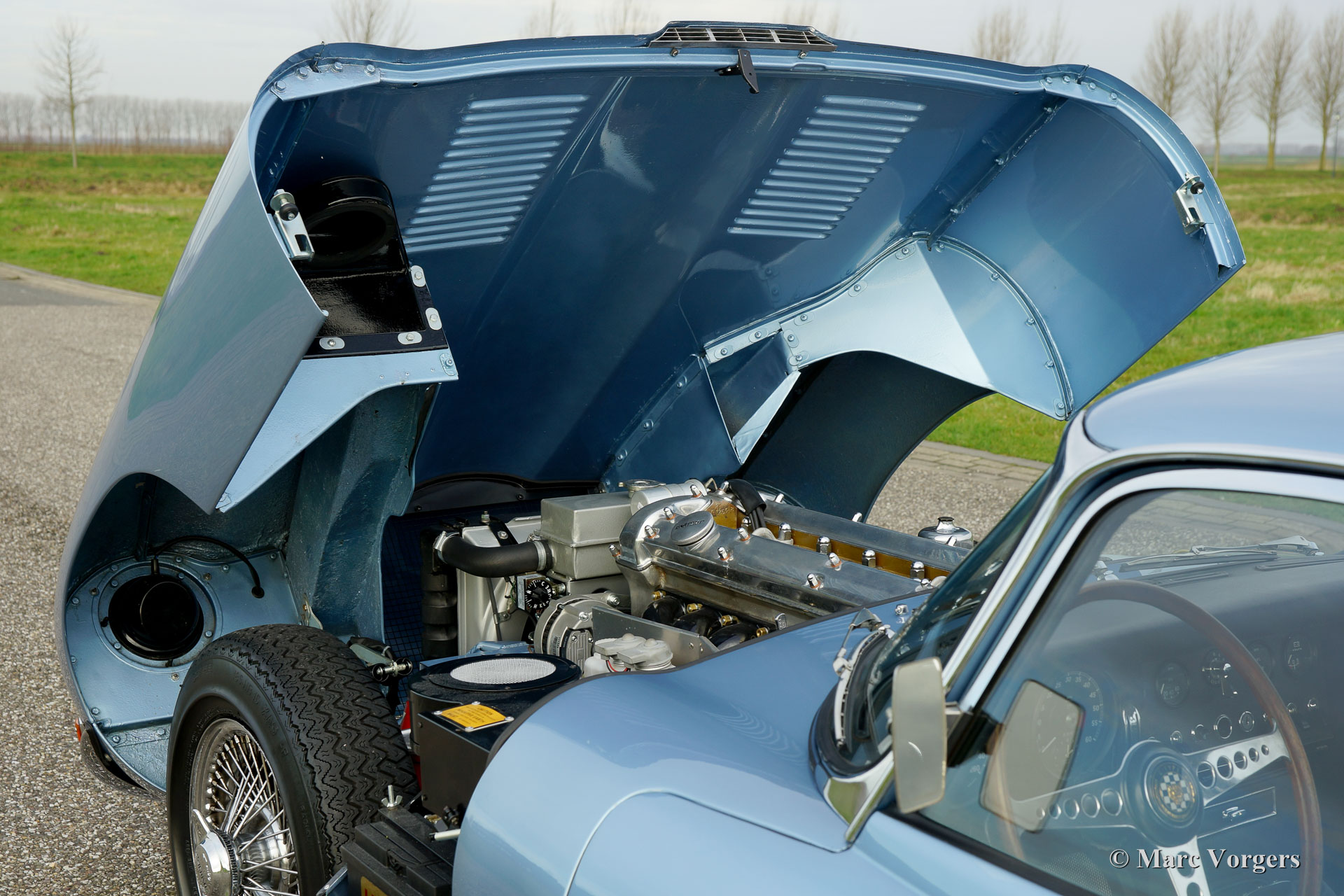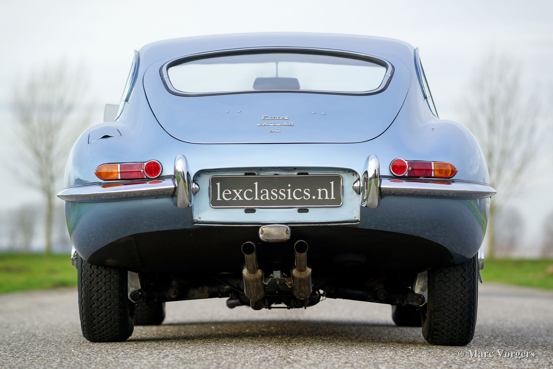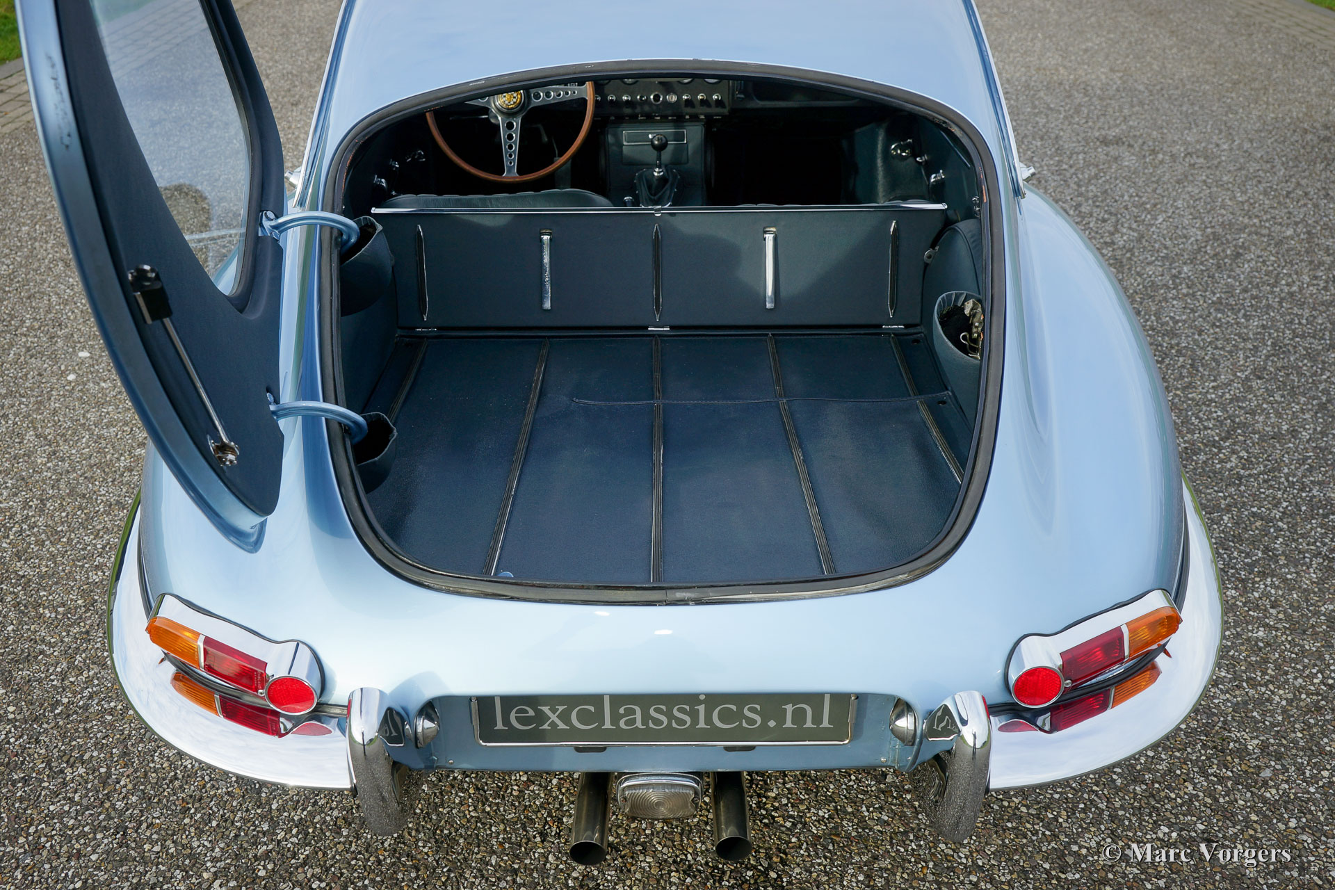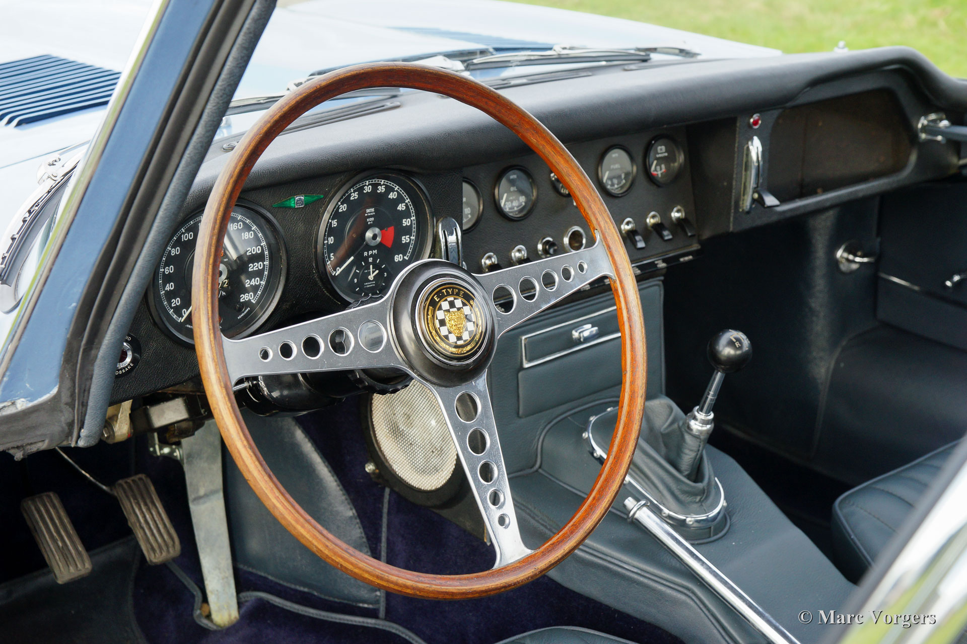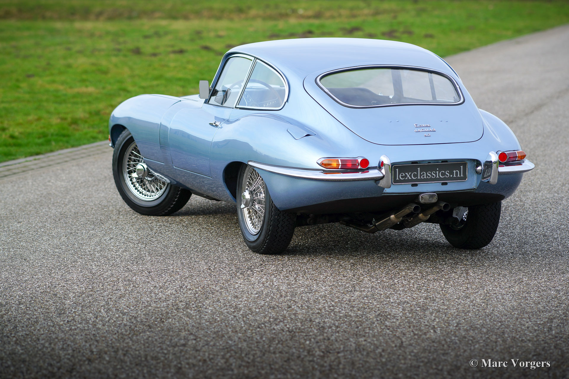 Jaguar E-type 4.2 Litre FHC, jaar 1965. Chassisnummer 3009X. Kleur lichtblauw metallic (Opalescent Silver Blue) met een blauw leren interieur. Deze prachtige Jaguar E-type uit de eerste serie werd nieuw verkocht door toenmalig Jaguar dealer Lagerweij in den Haag. In het verleden werd de auto in Nederland gerestaureerd, foto’s en rekeningen hiervan zijn aanwezig. Deze Jaguar E-type verkeert in zeer goede staat en de auto rijdt geweldig. Het betreft een exemplaar uit de gezochte eerste serie met de gesloten koplampen.