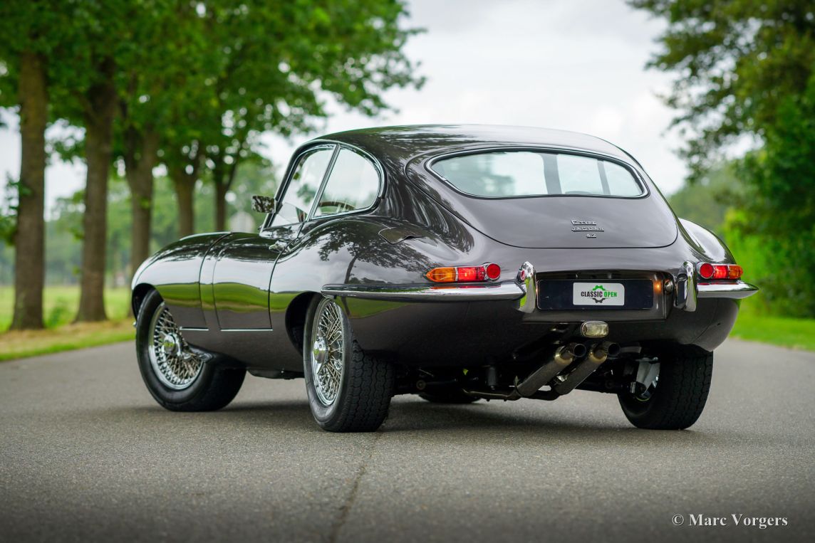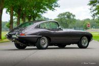 Jaguar E-type 4.2 liter FHC, jaar 1965. Kleur Tudor Grey gecombineerd met een bruin lederen interieur. Deze schitterende Jaguar E-type uit de eerste serie werd nieuw verkocht in de USA. In 2007 is de auto verscheept naar Duitsland waar de auto prachtig is gerestaureerd. Enkele foto's van de restauratie zijn aanwezig. In 2009 vond de E-type een nieuwe eigenaar in Nederland die de auto tot op de dag van vandaag koestert. Deze prachtige serie 1 E-type verkeert in een zeer mooie en goede staat en de auto rijdt en stuurt perfect! De Jaguar E-type is een van de mooiste auto's ooit ontworpen, een lichtend icoon in de geschiedenis van de auto. Het serie 1 model met de met glas afgedekte koplampen is het meest gewilde model. De eerste E-types hadden een 3,8 liter zescilinder-in-lijn motor, deze latere serie 1 auto is uitgerust met de 4,2 liter motor, verbeterde remmen, verbeterde elektra en comfortabelere stoelen. In 2018 werd de originele Amerikaanse specificatie 4-versnellingsbak ingeruild voor een Tremec 5-versnellingsbak die lagere motortoerentallen geeft bij hogere snelheden. De auto wordt compleet geleverd met een Heritage-certificaat dat bevestigt dat de motor fabrieksorigineel is (overeenkomende chassis- en motornummers). Deze schitterende Jaguar 4.2 Litre FHC (Fixed Head Coupé) is in deze kleurencombinatie een plaatje en de auto is een genot om in te rijden. De 265 pk sterke zescilinder motor loopt en klinkt perfect! Het openen van de lange motorkap is als het openen van een juwelendoos… We kennen geen auto met een mooier gepresenteerde motor. Deze fraaie Jaguar is voorzien van chromen spaakwielen, een rvs-uitlaatsysteem, een prachtige klassieke Blaupunkt Frankfurt radio met FM en een prachtig origineel stuurwiel met een iets kleiner formaat om de bestuurder meer ruimte te geven. Deze Jaguar E-type is een prachtig exemplaar. De auto is klaar om met volle teugen van te genieten!