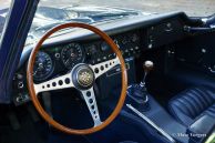Jaguar E-type 4.2 Litre FHC (Fixed Head Coupé) serie 1.5, bouwjaar 1968. Kleur ópalescent blue metallic' met een blauw lederen interieur. Deze fantastische Jaguar E-type werd uitvoerig gerestaureerd, sublieme topstaat. Deze auto werd nieuw verkocht in Dallas, Texas, USA.