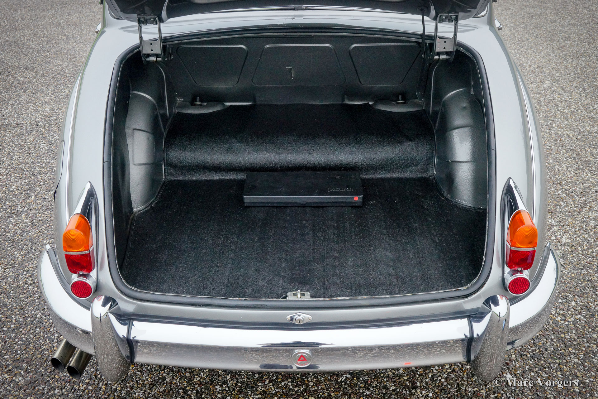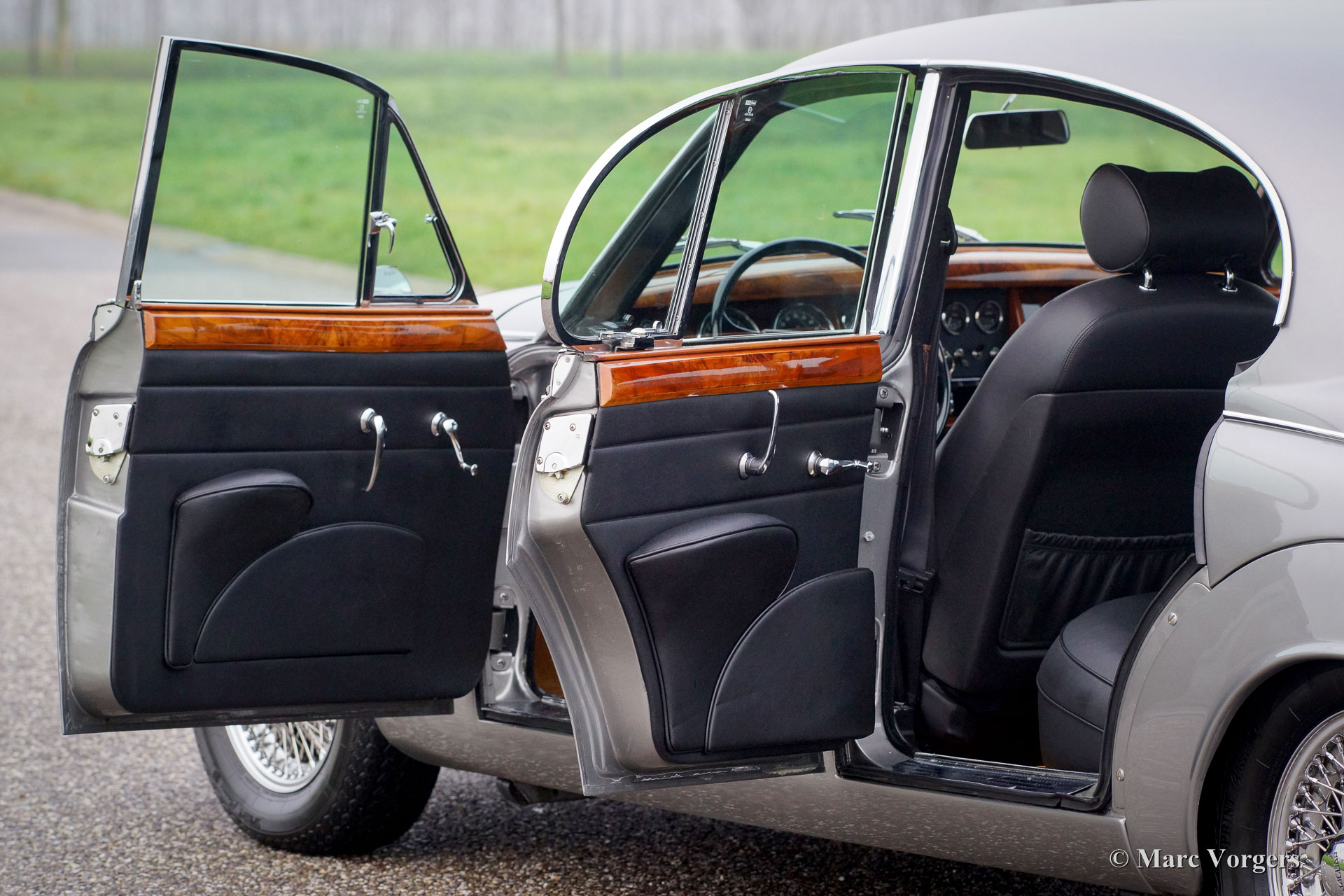 Jaguar Mk II 3.8 liter, jaar 1962. Kleur grijs metallic met een zwartleren interieur en cognac-kleurig tapijt. Deze fraaie Jaguar Mk II werd enige jaren geleden uitvoerig gerestaureerd en gereviseerd. De moto is gereviseerd door de firma van Giersbergen. Facturen van de restauratie zijn aanwezig. Deze prachtige Jaguar verkeert in excellente staat en de auto rijdt voortreffelijk! De auto is uitgerust met chroom spaakwielen, een automatische versnellingsbak en comfortabele XJ-stoelen.