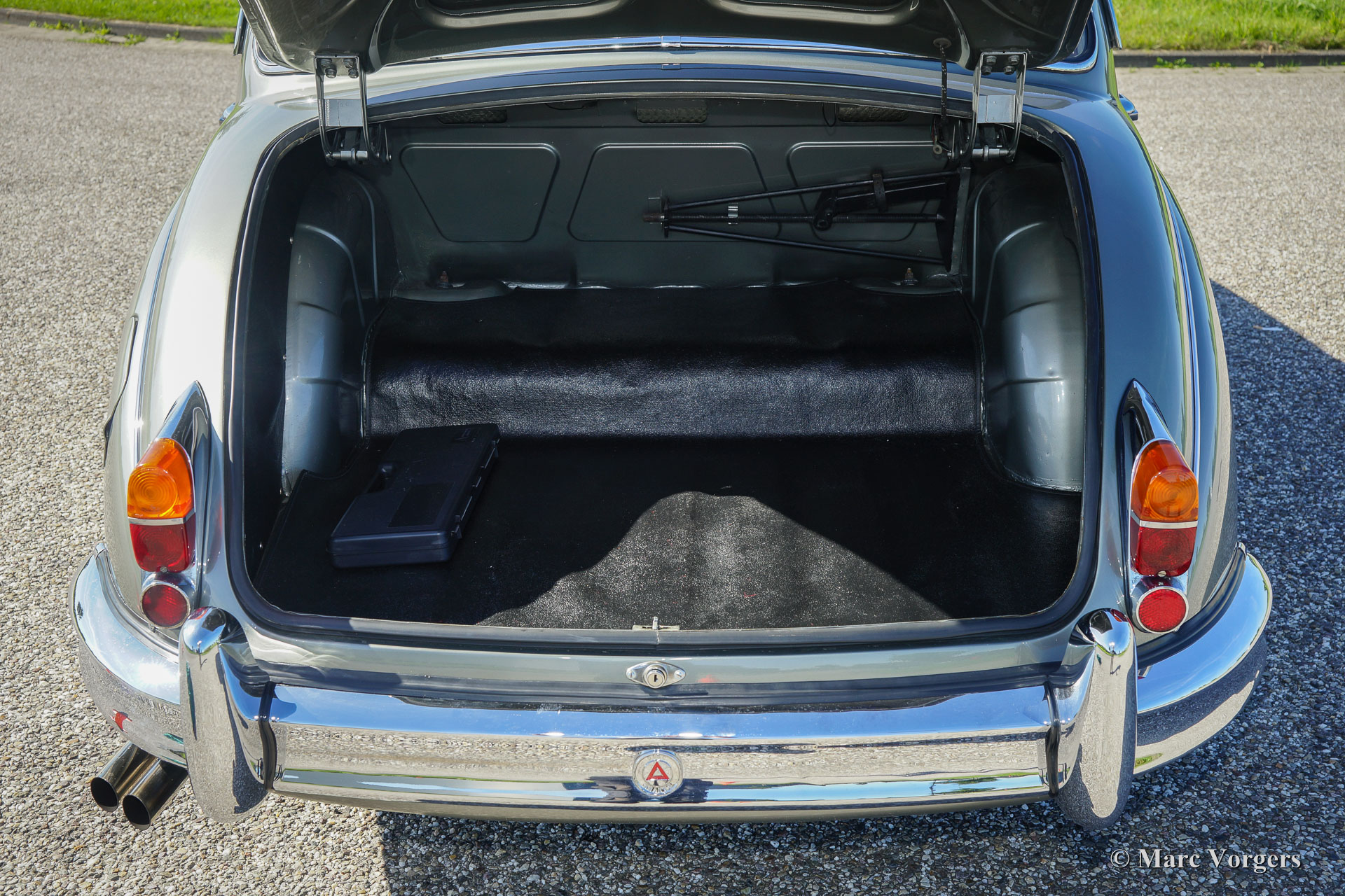 Jaguar Mk II 3.4 Litre, bouwjaar 1967. Kleur ‘Gun Metal Grey’ metallic met een cognac lederen interieur. Deze prachtige Jaguar Mk II werd recent door Lex Classics aangekocht in Italië, de auto werd daar in vroegere jaren gereden door een regeringsfunctionaris. Deze geweldige Jaguar Mk II verkeert in sublieme staat en de auto rijdt perfect. De auto is voorzien van de volgende opties: chroom spaakwielen, airconditioning, achterruitverwarming, Jaguar XJ6 tandheugel stuurhuis met hydraulische stuurbekrachtiging, overdrive, RVS uitlaat en mistlampen aan de voorzijde. Een prachtexemplaar!