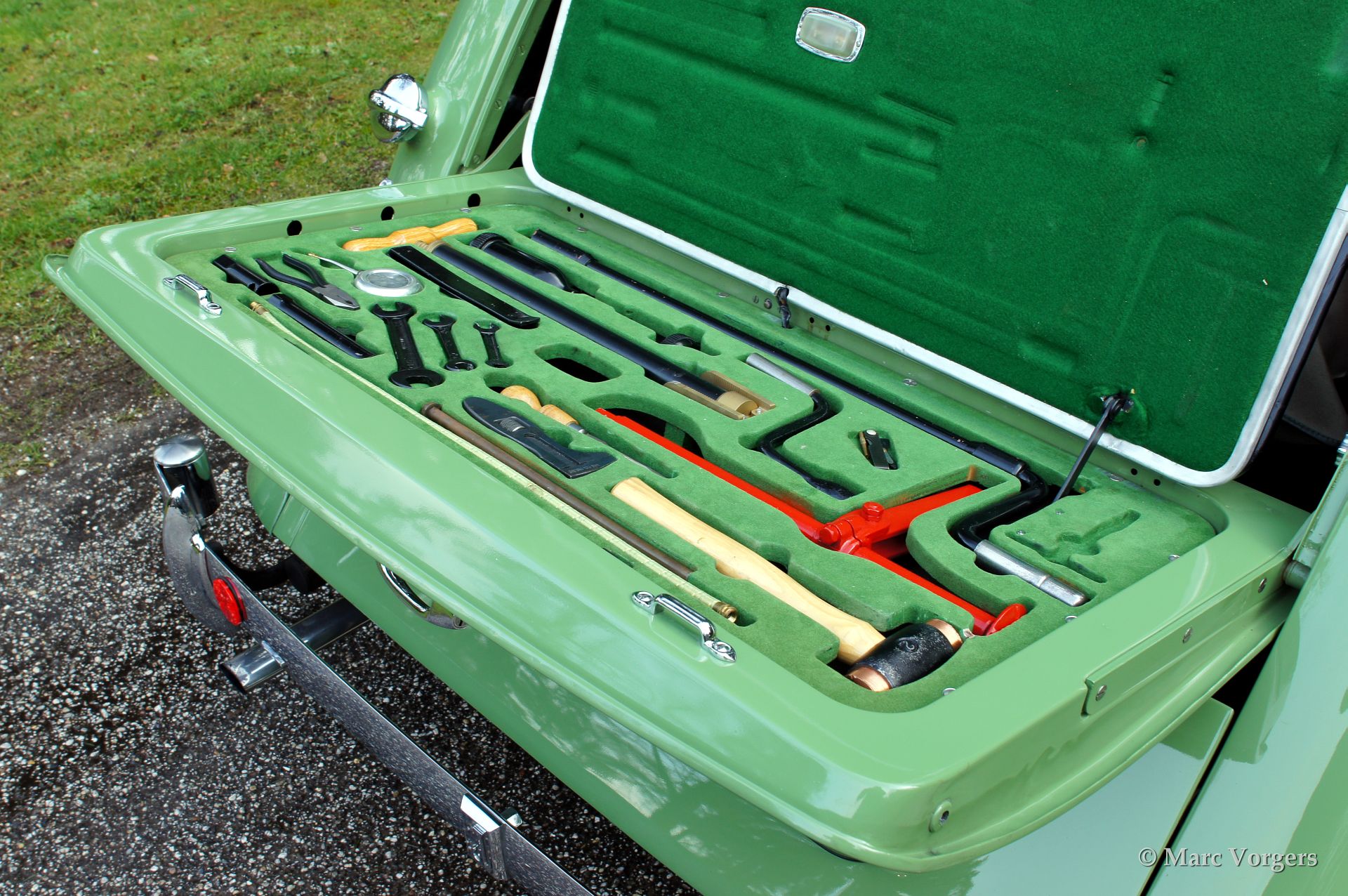 Jaguar Mk IV 3.5 Litre Drop Head Coupe, bouwjaar 1947. Kleur lichtgroen met een 'suede green' lederen interieur en donkergroen tapijt. Beige mohair kap.