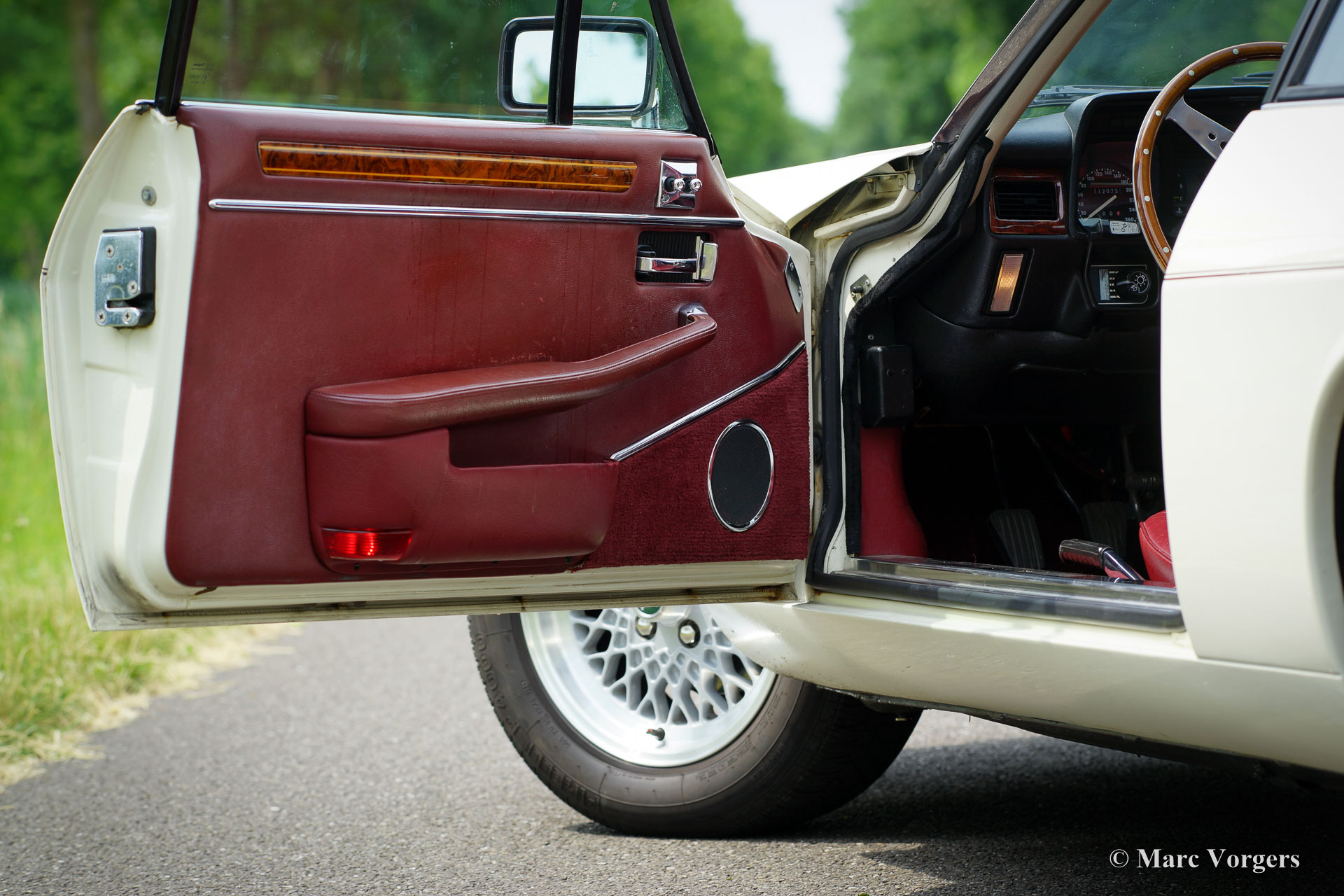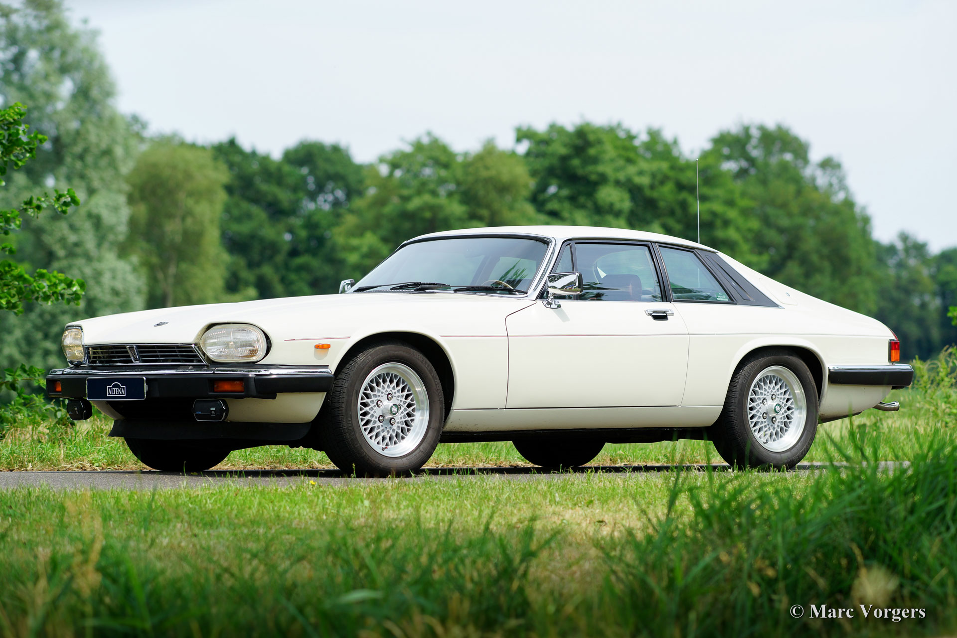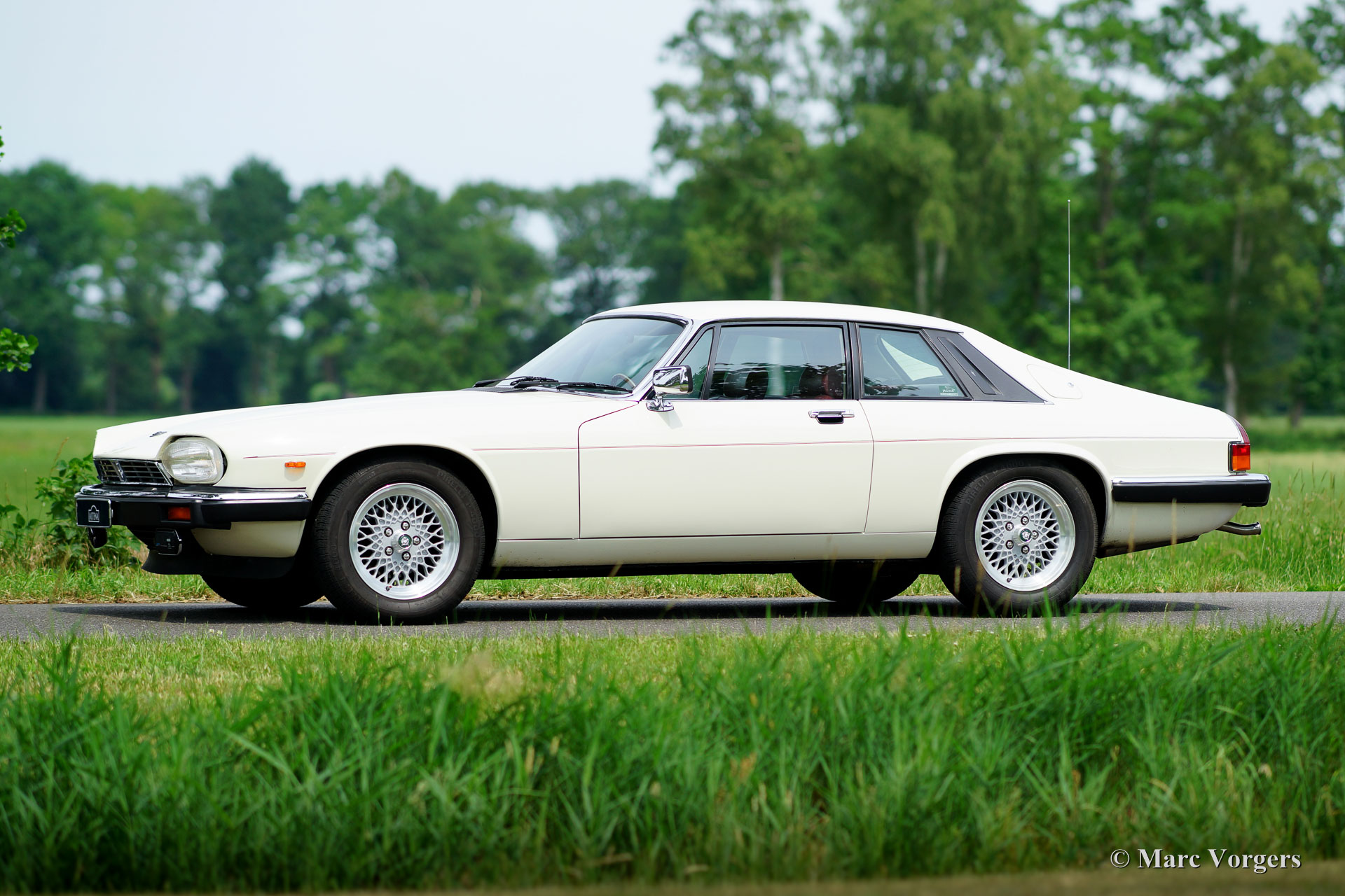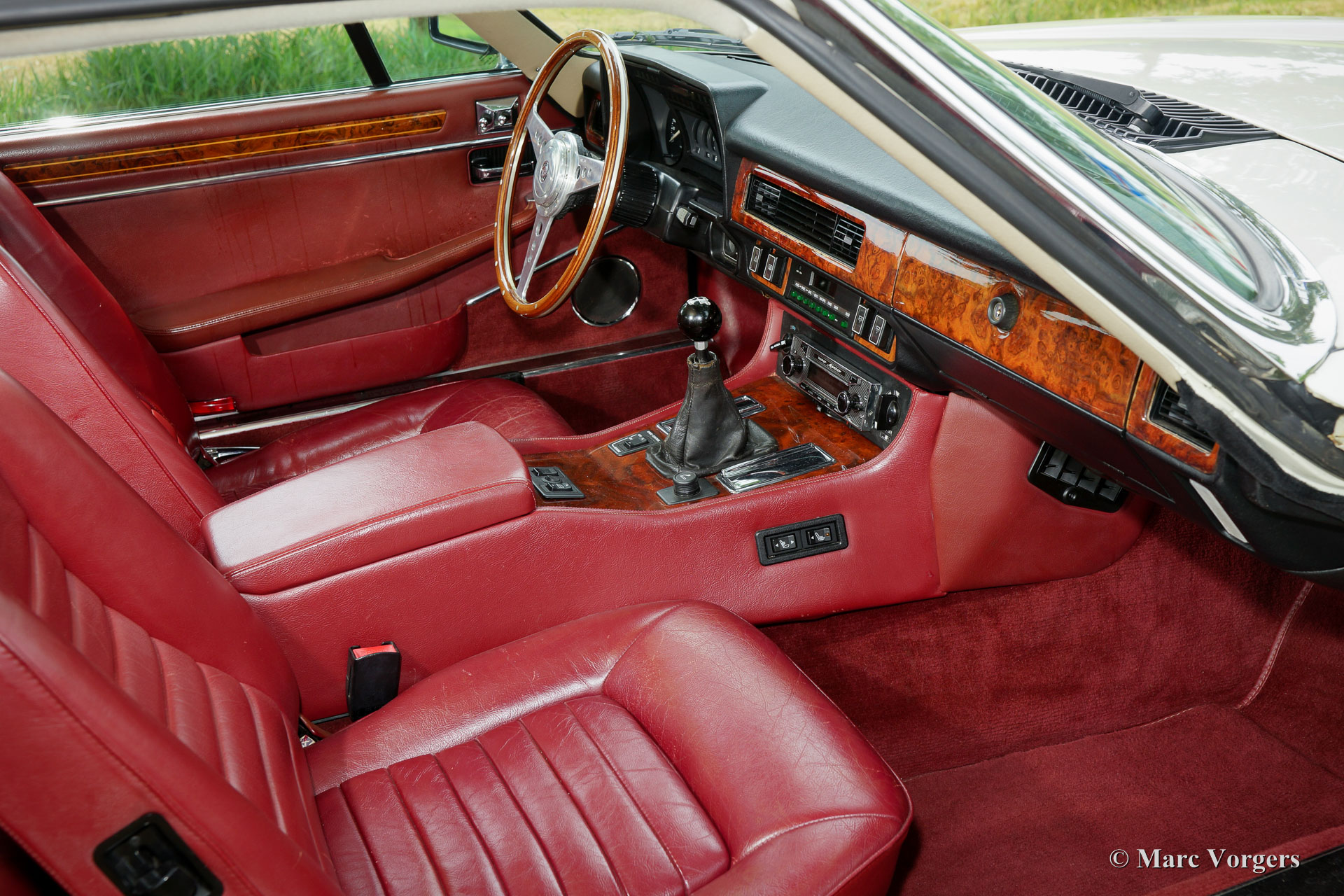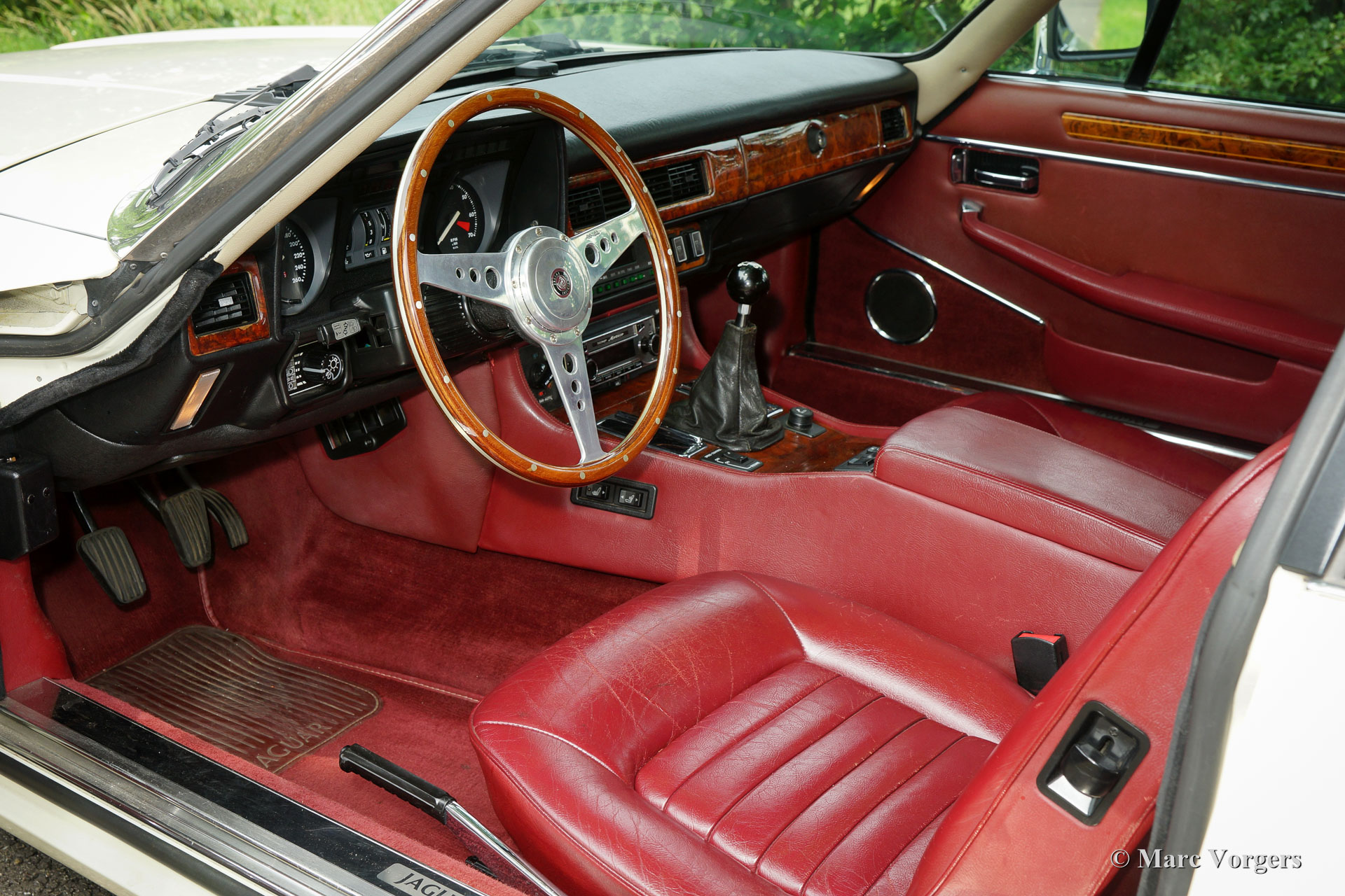 Jaguar XJS V12 5.3 liter coupe, jaar 1987. Chassisnummer: SAJ-JNAEW4BA 1407XX. Kleur ‘Nimbus White’ met een ‘Mulberry’ roodleren interieur. Deze geweldige Jaguar XJS V12 coupe werd nieuw verkocht in Nederland. Deze fraaie XJS heeft vanaf nieuw 112.000 kilometer gereden en de auto verkeert in zeer goede en zeer originele staat! Het betreft een zeldzame handgeschakelde versie die is uitgerust met alle opties! De auto is nog voorzien van de eerste en nog zeer fraaie lak en het originele interieur vertoont slechts minimale sporen van gebruik; zeer bijzonder. Er is een Heritage certificaat aanwezig en een map met alle originele boekjes. Het originele serviceboekje is punctueel door de dealer afgestempeld! In de kofferbak vindt u een originele gereedschapset en in het interieur een prachtig Moto-Lita sportstuur met houten rand en een gezochte moderne ‘klassieke’ Becker Mexico radio. De auto is voorzien van 16 inch lichtmetalen Jaguar velgen, de originele velgen zijn bij de auto aanwezig. Een indrukwekkende XJS en een zeer origineel exemplaar!