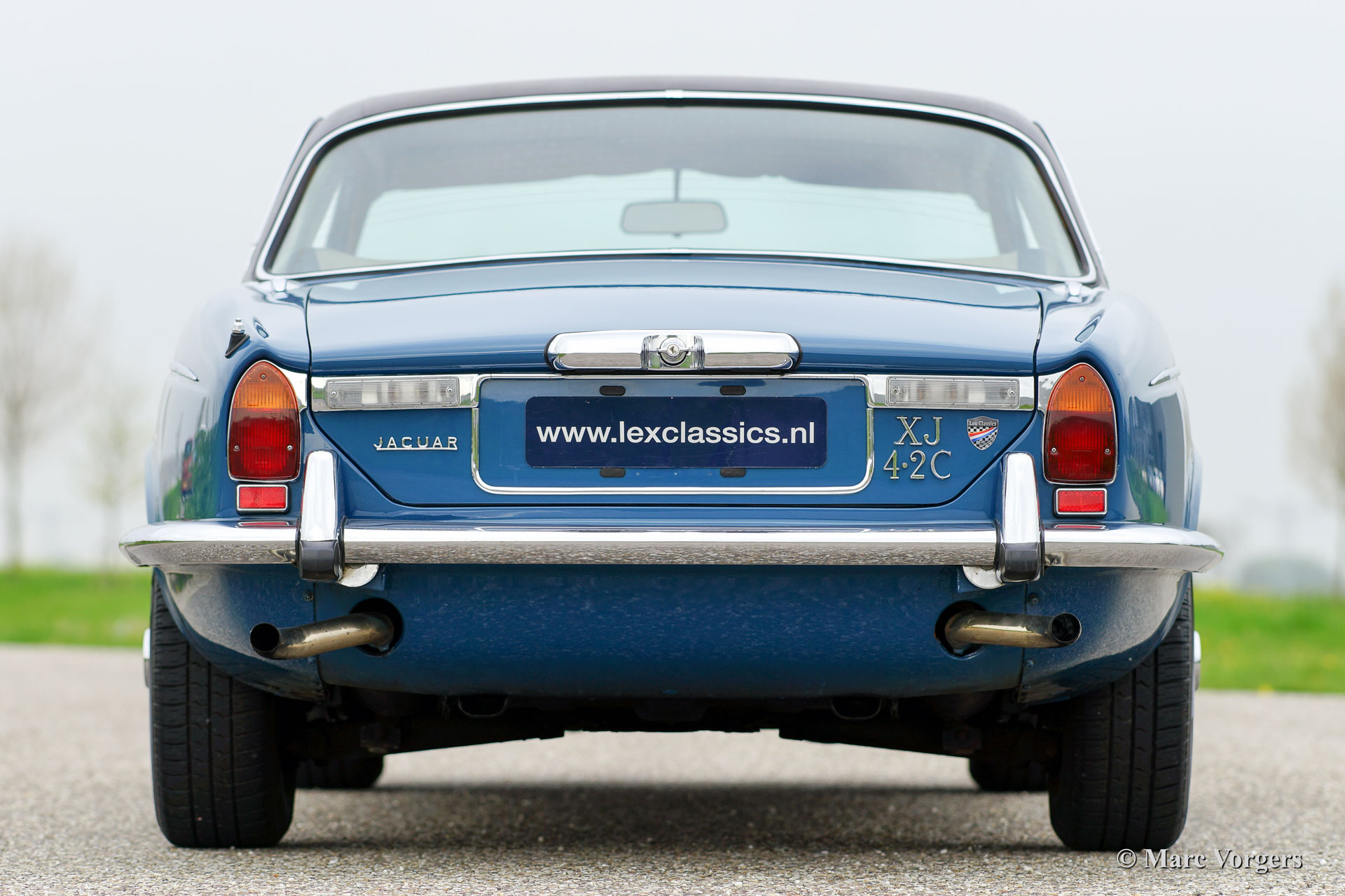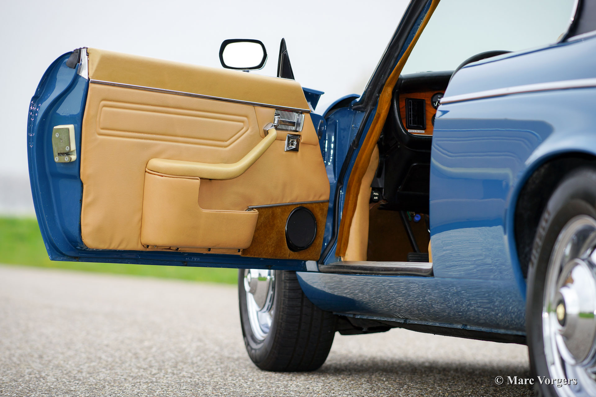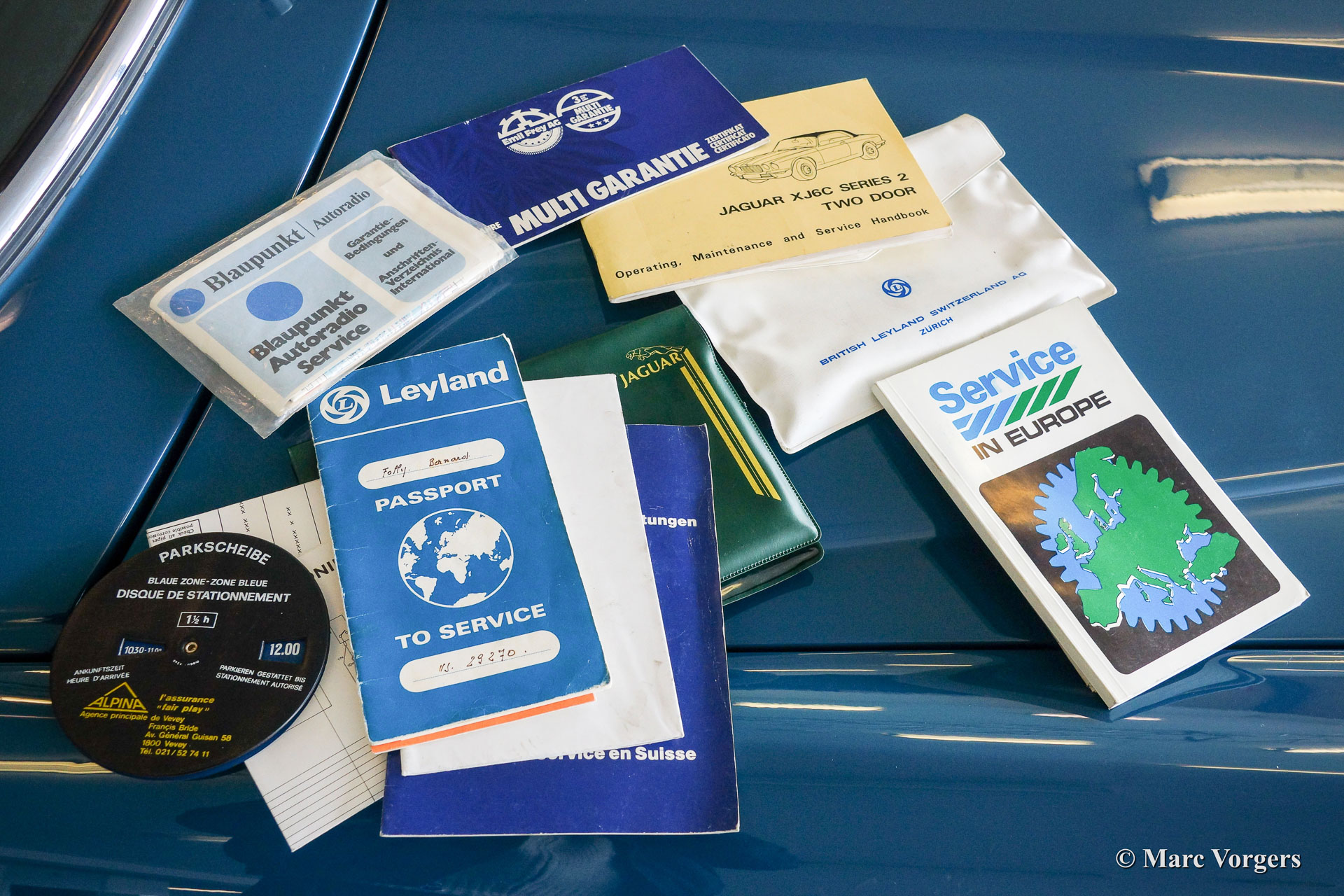 Jaguar XJ6 Coupe, bouwjaar 1978. Chassisnummer: 2J538XX BW, motornummer: 8L 558XX S. Kleur ‘Cotswold’ blauw met een beige lederen interieur. Deze stijlvolle jaguar XJ6 coupe werd nieuw verkocht in Zwitserland. De originele boekjes en het garantie certificaat zijn aanwezig. Deze XJ6 coupe verkeert in zeer goede originele staat en de auto is altijd zeer goed onderhouden. De carrosserie werd in het verleden voorzien van fraaie nieuwe lak in de originele kleur. Het originele interieur vertoont een klassiek patina. De service historie is goed gedocumenteerd. Deze Jaguar is uitgerust met fraaie originele verchroomde wielen met wieldoppen, twee verstralers aan de voorzijde, radio en antenne, 123 elektronische ontsteking en stuurbekrachtiging. De auto rijdt uitstekend!