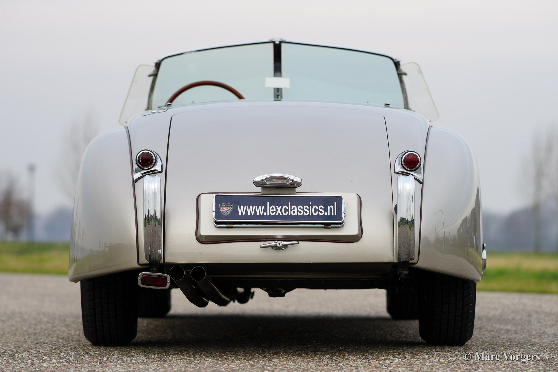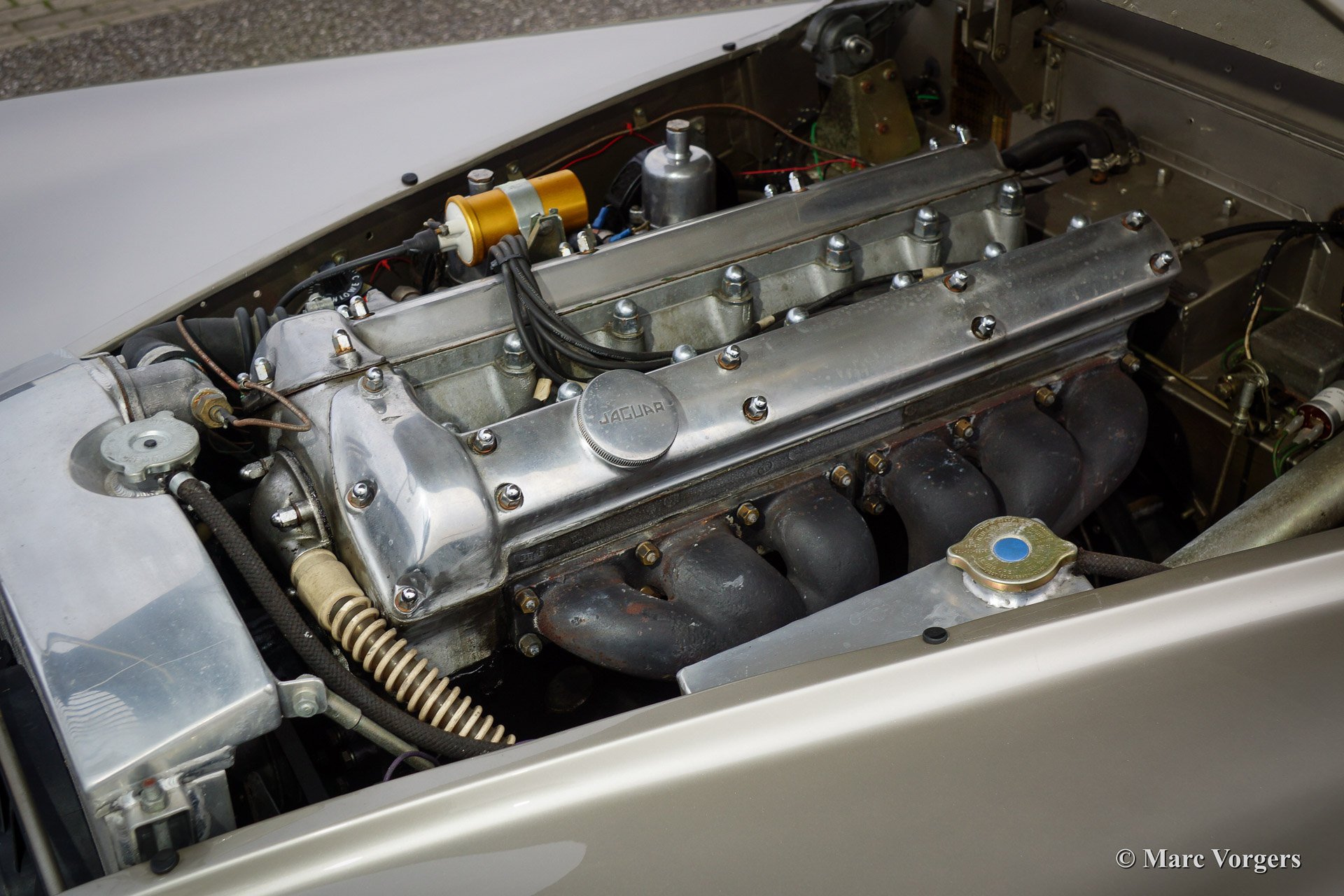 Jaguar XK 120 SE Open Two Seater (OTS / roadster), bouwjaar 1953. Chassis nummer S6736XX, motornummer W7657-XX. Kleur zilver metallic met een donkerrood lederen interieur. Donkerrode mohair soft top. Deze fantastische Jaguar XK 120 SE OTS werd enige jaren geleden uitgebreid en 'body off' gerestaureerd in Nederland. De kilometerteller werd daarbij teruggezet naar '0' (nul). Vanaf dat moment heeft de auto 14,993 kilometer gereden. Deze voortreffelijke Jaguar verkeert in excellente staat. Een fotoreportage van de restauratie, documentatie en facturen zijn aanwezig.