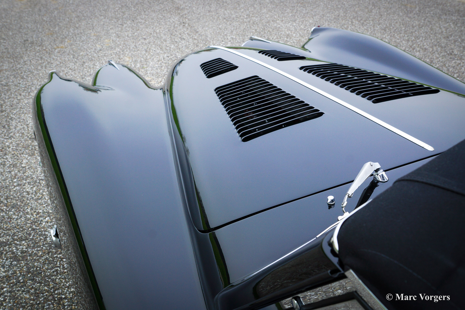 This fantastic Jaguar XK140 SE DHC features black enameled 16 inch wire wheels, eared chrome 'knock off' hub nuts, disc brakes all round, high torque starter motor, aluminium radiator, 5-speed manual gearbox, AC dynamo, Mallory electronic ignition, a Stainless Steel exhaust, aluminium petrol tank, power brakes, up rated rear axle with stabilizer, bonnet louvres, J-type driving lamps, sump protection plate, modern electric fuel pump, hood cover and storage bag, Motolita sports steering wheel, classic bucket seats (original seats are present), heater and a class 5 alarm system. this is a highly desirable Jaguar XK 140 Special equipment model. a sound investment and a fantastic car to enjoy on the open road!