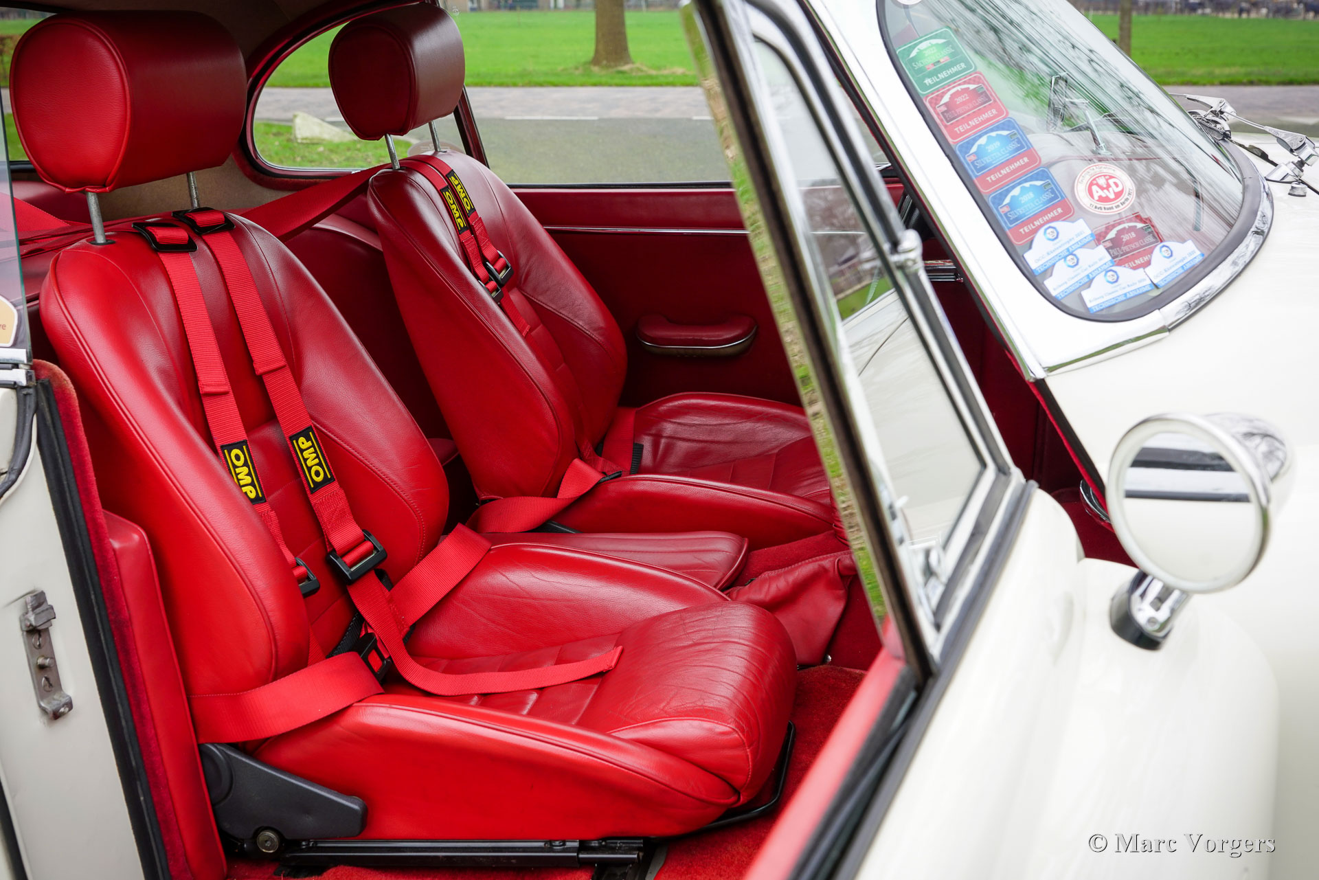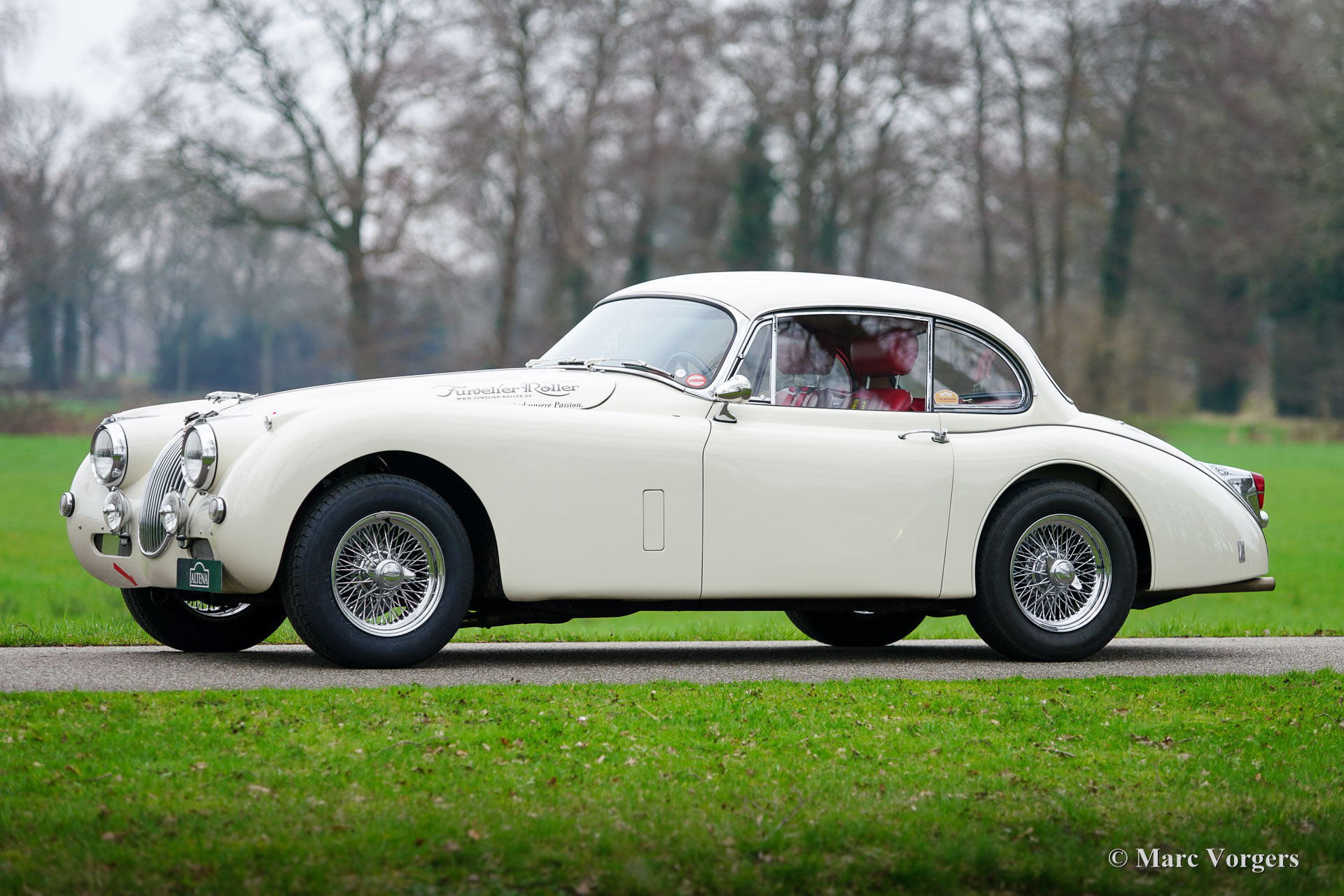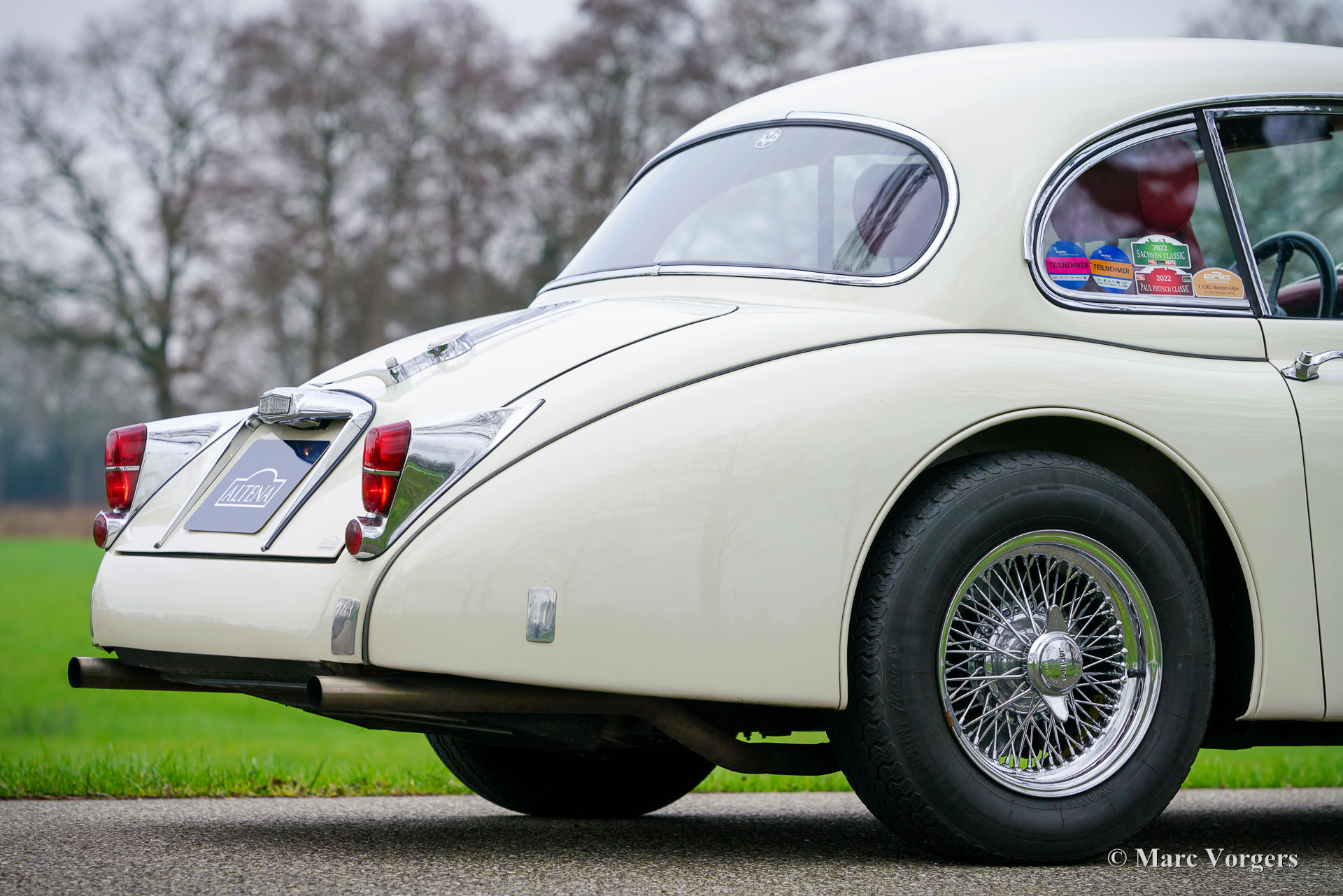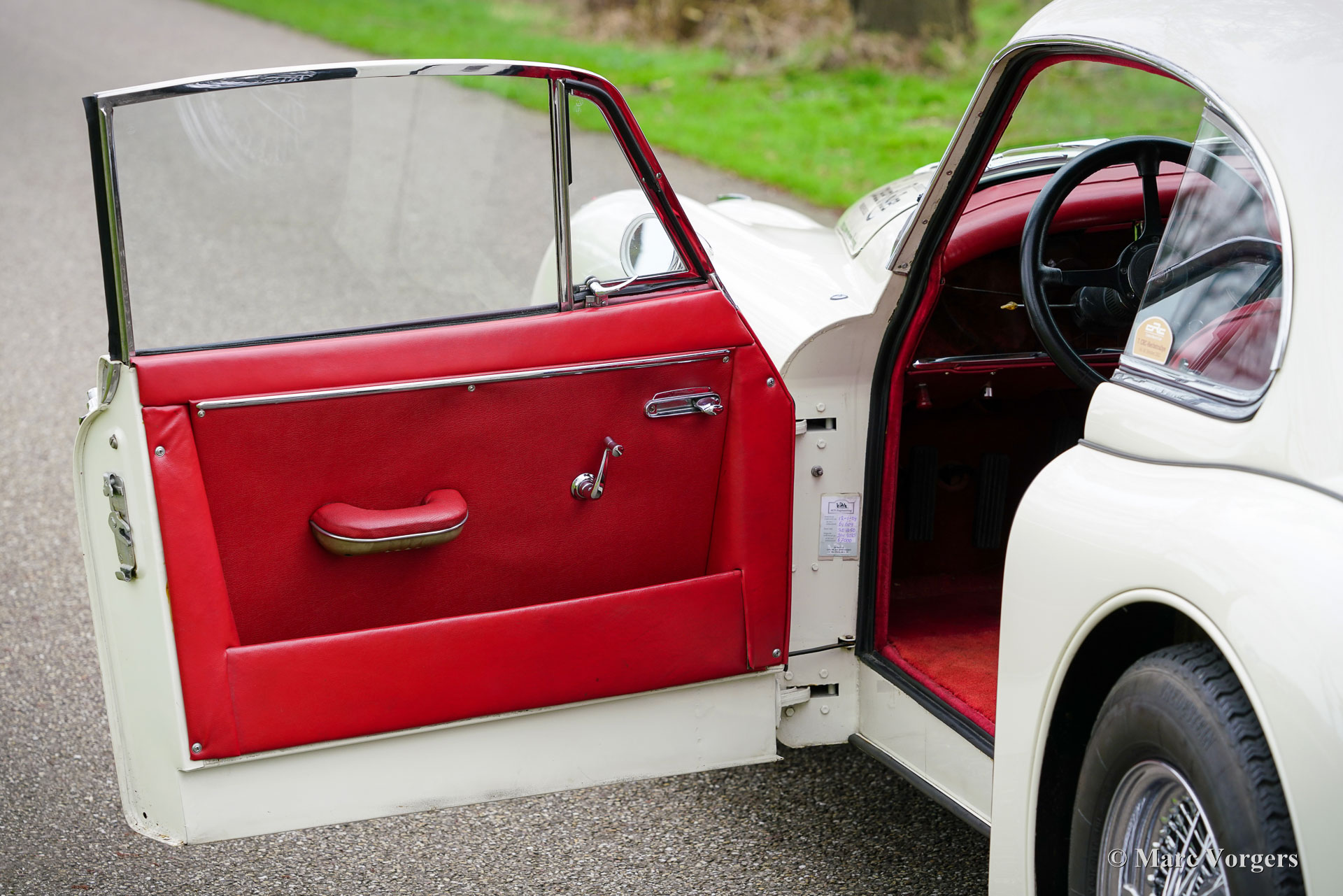 Jaguar XK 150 3,8 liter FHC, jaar 1960. Kleur Old English White gecombineerd met een rood interieur voorzien van roodleren rallystoelen. Deze Jaguar XK 150 FHC (Fixed Head Coupé) is origineel voorzien van de krachtige 3,8 Liter XK-motor. Deze geweldige Jaguar is in opdracht van de huidige eigenaar rally geprepareerd door Altena Classic en Rally Service. De Jaguar verkeert in een zeer goede staat en de auto rijdt en stuurt perfect!