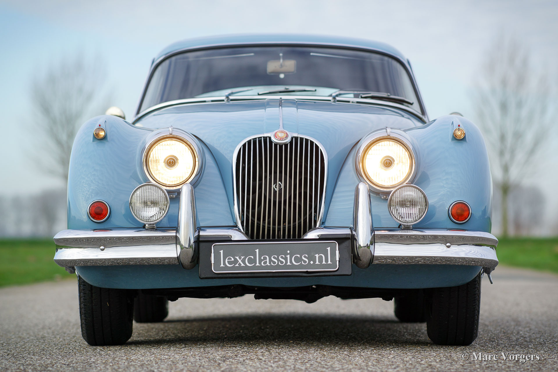 Jaguar XK 150 3.8 liter FHC, jaar 1960. Chassisnummer S836628XX, motornummer op aanvraag. Kleur lichtblauw (Pastel Blue) met een donkerblauw lederen interieur en donkerblauw tapijt. Deze fantastische Jaguar XK 150 coupe werd nieuw afgeleverd door de firma Lagerwij Automobiel Maatschappij in Den Haag. De auto is tot 2016 in Nederland geregistreerd geweest. Een Heritage certificaat is aanwezig. Deze geweldige Jaguar XK 150 werd in de periode 1999-2002 volledig en ‘body-off’ gerestaureerd onder regie van Lex Classics. Een uitvoerige fotoreportage van de restauratie is aanwezig. Het plaatwerk en het spuitwerk is uitgevoerd door Harry Frens uit Nunspeet, de bekleding werd gedaan door de firma Cools uit Eindhoven en de motor is gereviseerd door de firma van Giersbergen uit Silvolde. De gehele opbouw is uitgevoerd door Lex Classics. De Geweldige XK 150 verkeert in sublieme conditie en de auto rijdt voortreffelijk. Sinds de restauratie heeft de auto 18.569 km gereden. De Jaguar is uitgerust met een origineel handbediend schuifdak (een zeldzame en uiterst begeerlijke optie!), chroom spaakwielen, chroom ‘knock-off’ vleugelmoeren, mistlampen aan de voorkant en Jaguar koplampen het ‘J’ logo erop. Deze XK 150 is een top-of-the-line uitvoering met de sterkste 3.8 liter motor, handgeschakelde versnellingsbak, overdrive en schijfremmen rondom; een zeer begeerlijk exemplaar!