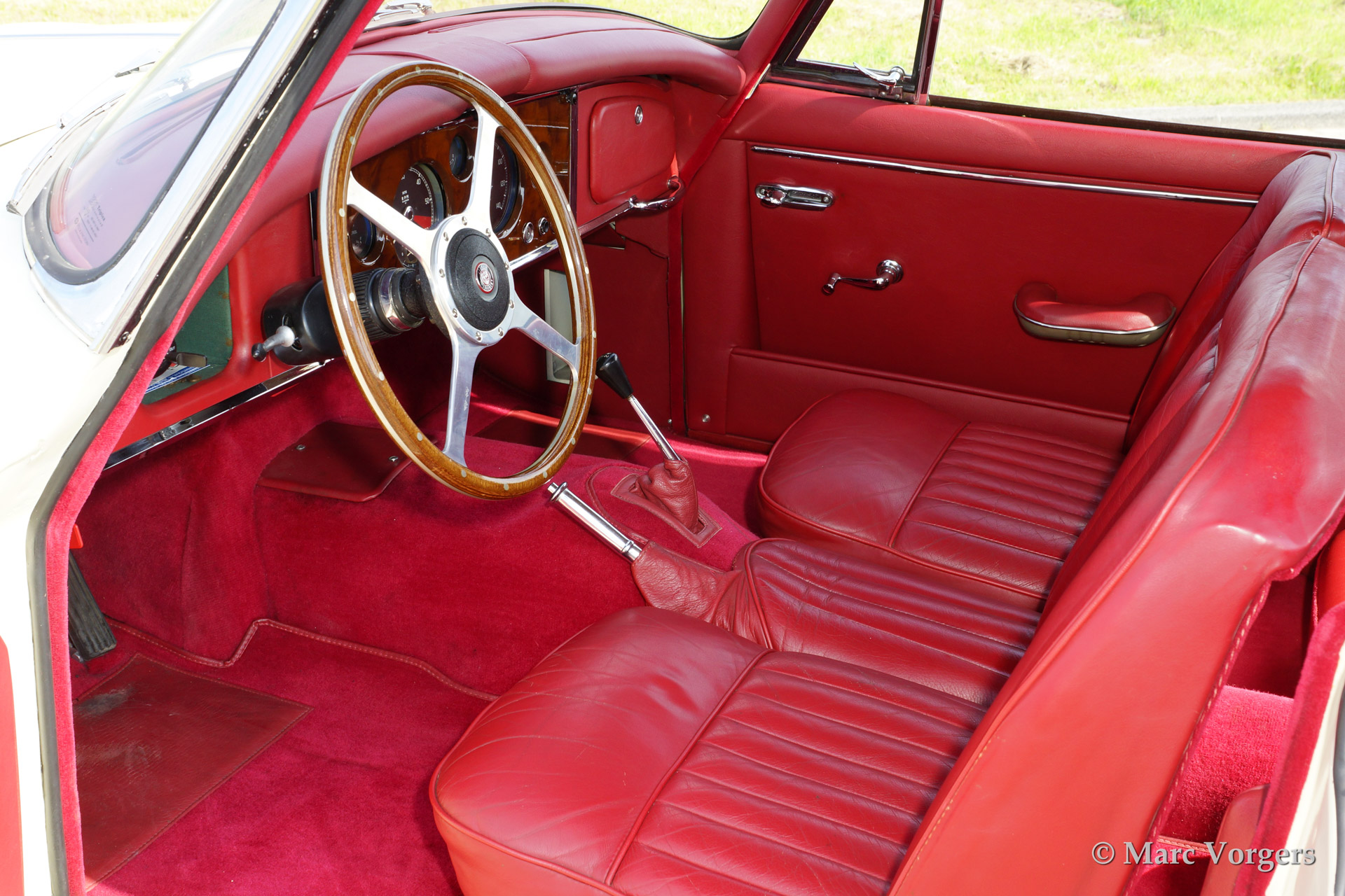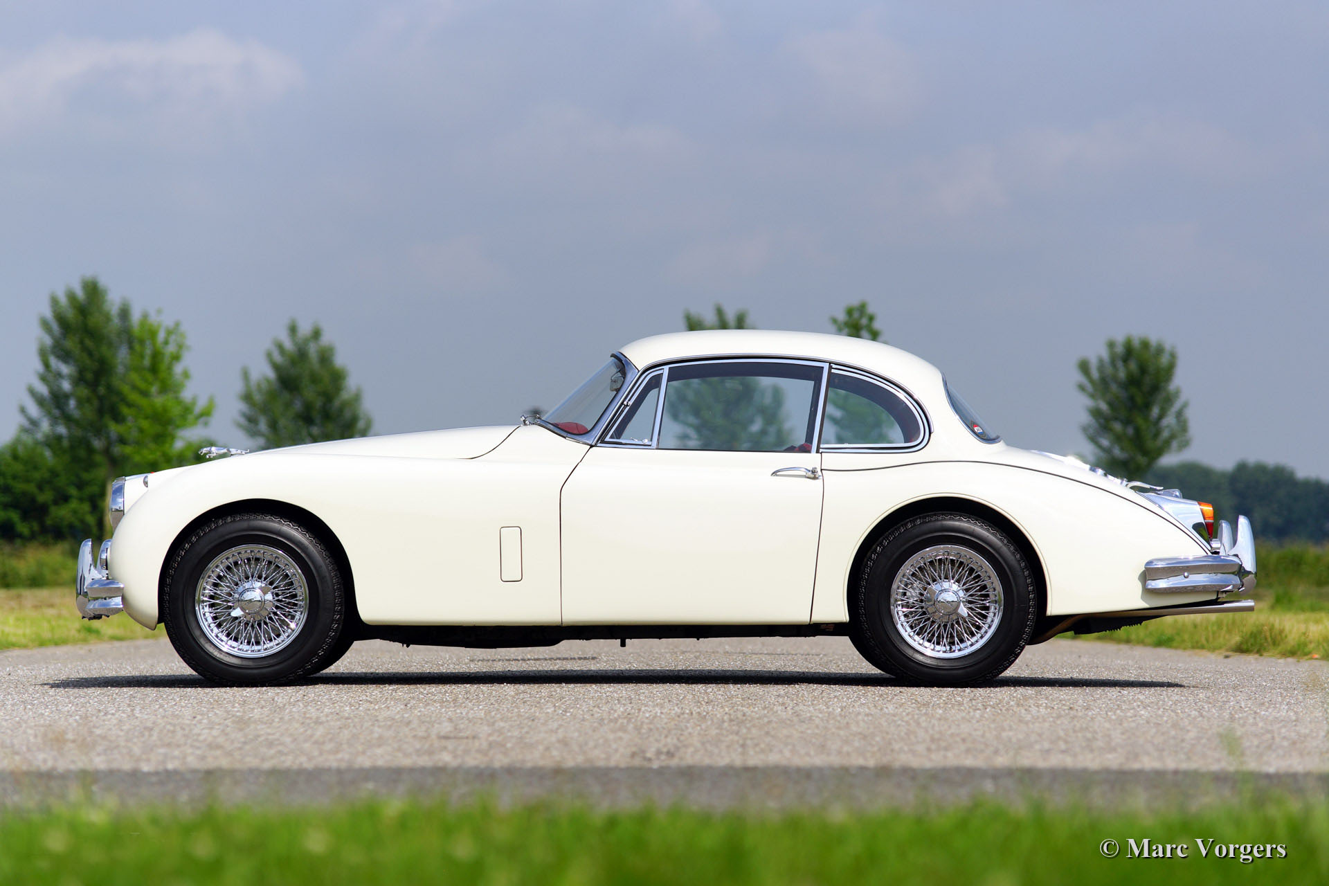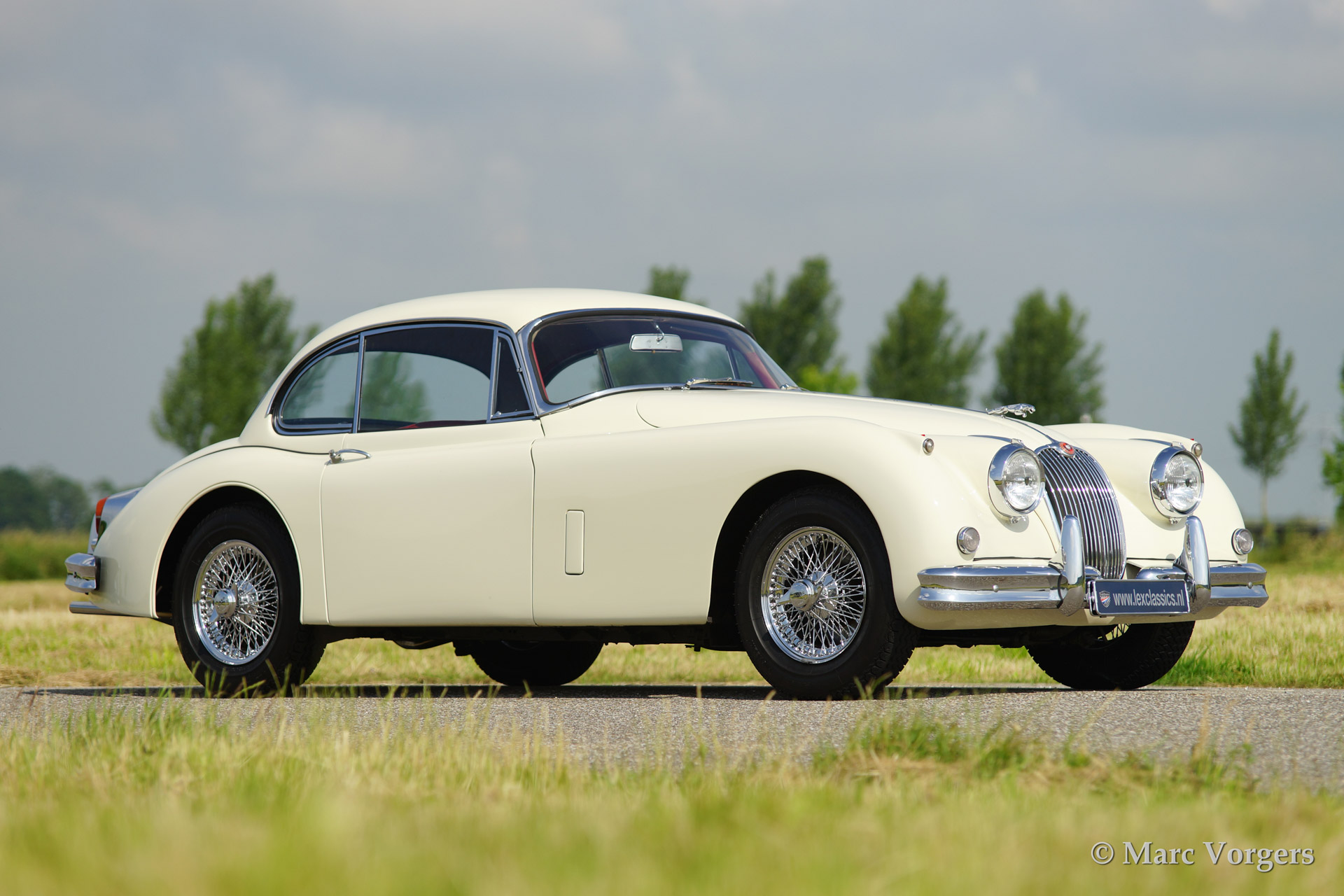 Jaguar XK 150 3.8 Litre Fixed Head Coupe (FHC), bouwjaar 1961. Kleur 'Old English White' met een rood lederen interieur en rood tapijt. Deze prachtige Jaguar XK 150 werd uitvoerig gerestaureerd naar topstaat. Deze XK 150 FHC is voorzien van de krachtige 3.8 liter zes cilinder XK motor gekoppeld aan de handgeschakelde versnellingsbak met overdrive!