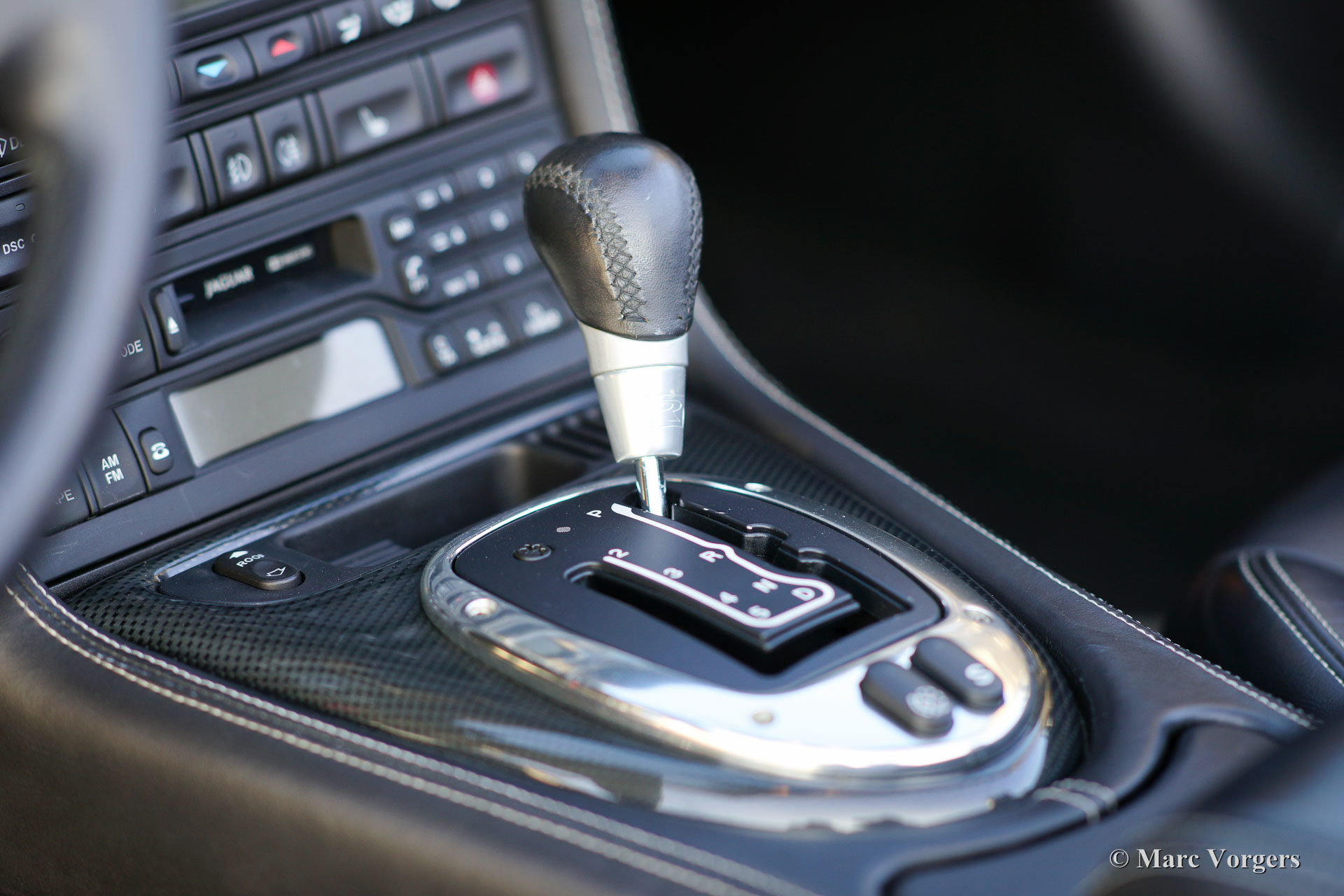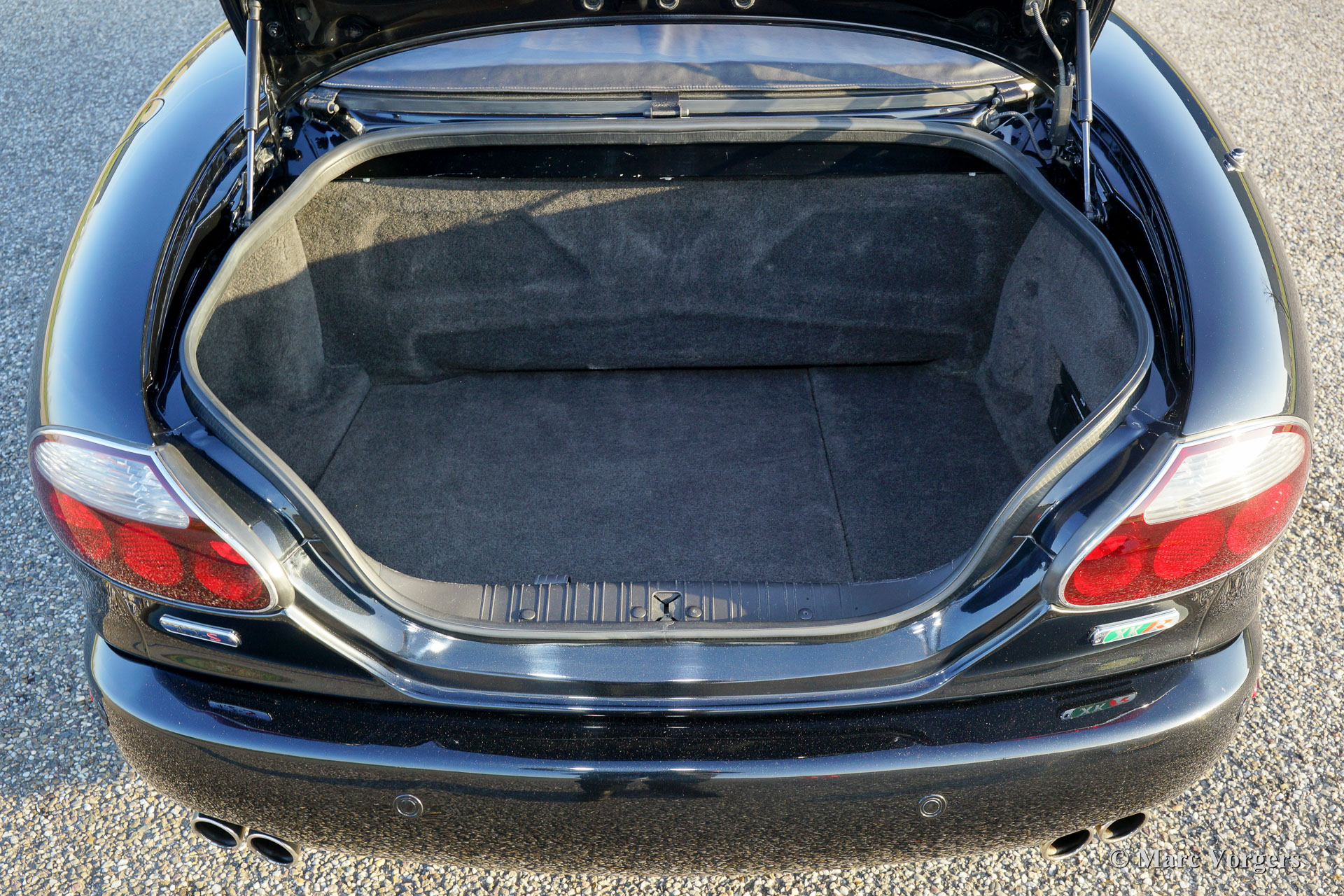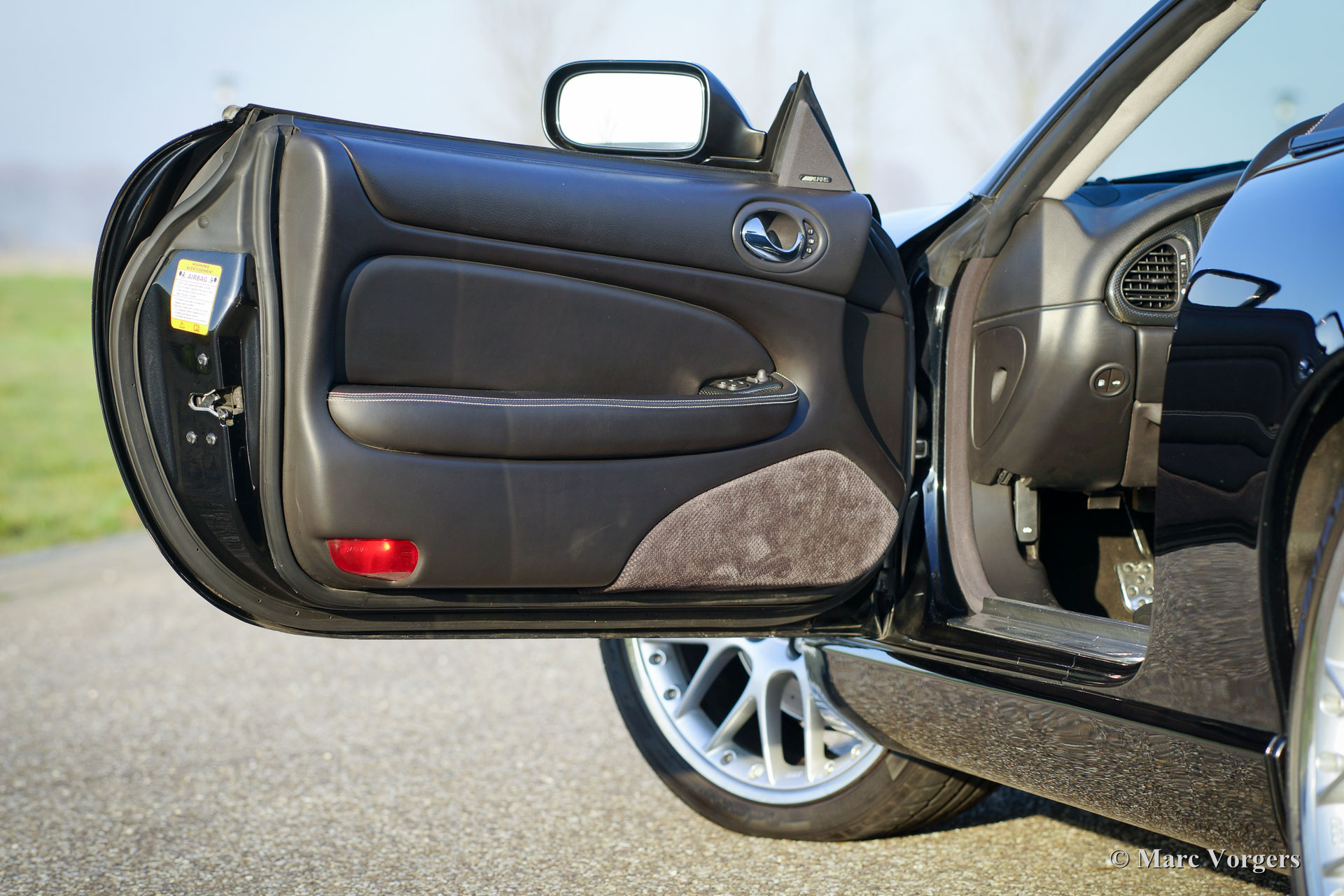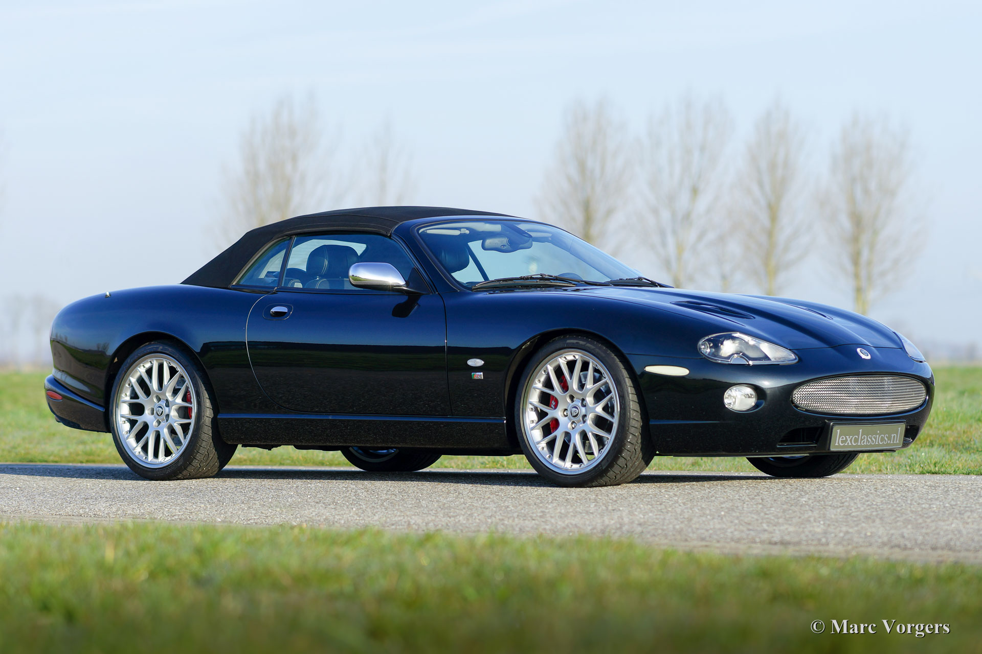 Jaguar XKR 4.2 S convertible (X100), jaar 2005. Kleur zwart metallic met een zwartlederen interieur en donkergrijs tapijt en een zwarte cabrioletkap. Deze zeer indrukwekkende Jaguar XKR 4.2 S werd nieuw verkocht in Italië, de auto is sinds 2011 geregistreerd in Nederland. De auto heeft vanaf nieuw 72.500 kilometer gereden, alle originele boorddocumentatie en het serviceboekje zijn bij de auto aanwezig. Deze fantastische Jaguar XK-R verkeert in sublieme originele staat, nagenoeg als nieuw! Deze XKR 4.2 S komt uit de laatst gebouwde serie; het is het absolute topmodel met een zeer complete optielijst. De auto is onder andere uitgerust met: Xenon-verlichting, 20-inch lichtmetalen Atlas velgen, Navigatie, parkeersensoren achter, cruise control, zelf dimmende binnenspiegel en Brembo remmen. De Jaguar XKR 4.2 S is uitgerust met een krachtige V8 motor voorzien van een ‘supercharger’ waardoor de motor een zeer gezonde 396 pk levert. Het vermogen is te allen tijde paraat voor pijlsnelle acceleratie- en inhaal acties maar de heerlijke V8 overtuigt ook perfect tijdens rustig ‘cruisen’. Een voortreffelijke en indrukwekkende machine in topstaat!