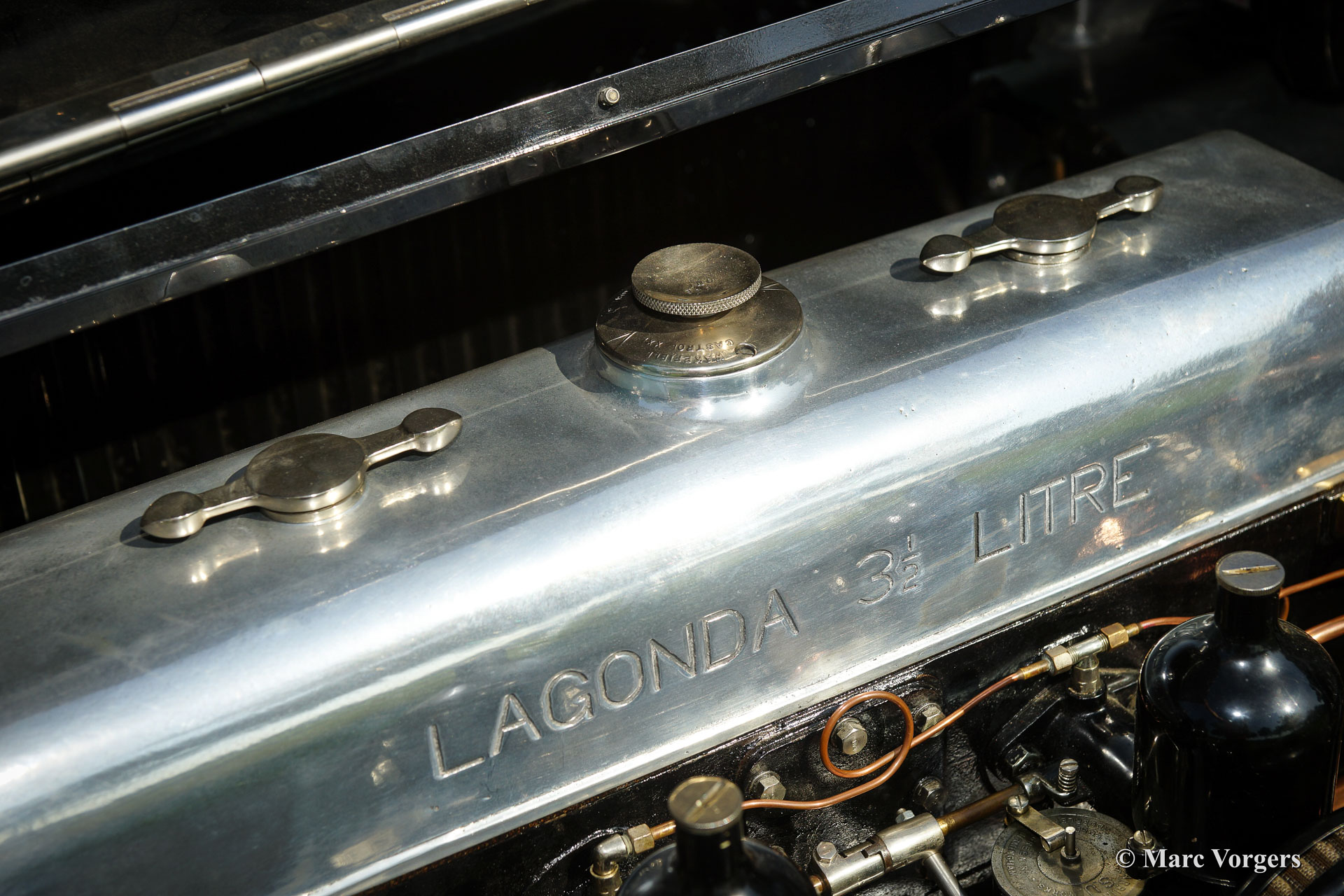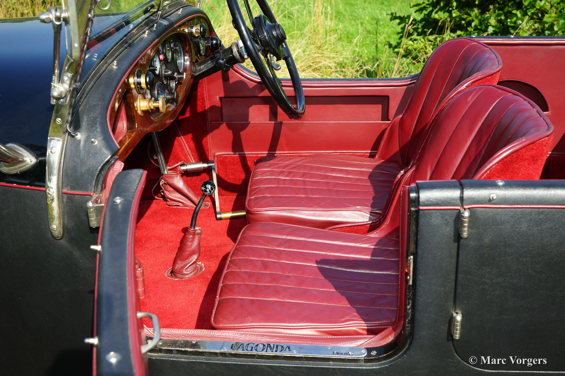 Lagonda 3.5 Litre T-type Tourer, bouwjaar 1933. Kleur zwart met een rood lederen interieur en rood tapijt. Zwarte kap en hood cover. Deze fantastische Lagonda werd tussen 1997 en 1999 in Engeland uitvoerig gerestaureerd door merkspecialisten. Sinds de restauratie heeft de automobiel ca. 6000 mijl gereden. Tijdens de restauratie werd er een Lagonda 3.5 litre motor gemonteerd (uiteraard gereviseerd), gekoppeld aan een subliem schakelende volledig gesynchroniseerde Alvis versnellingsbak. Deze geweldige Lagonda is een juweel om te zien en een genot om te rijden. De automobiel verkeert in excellente staat!
