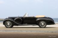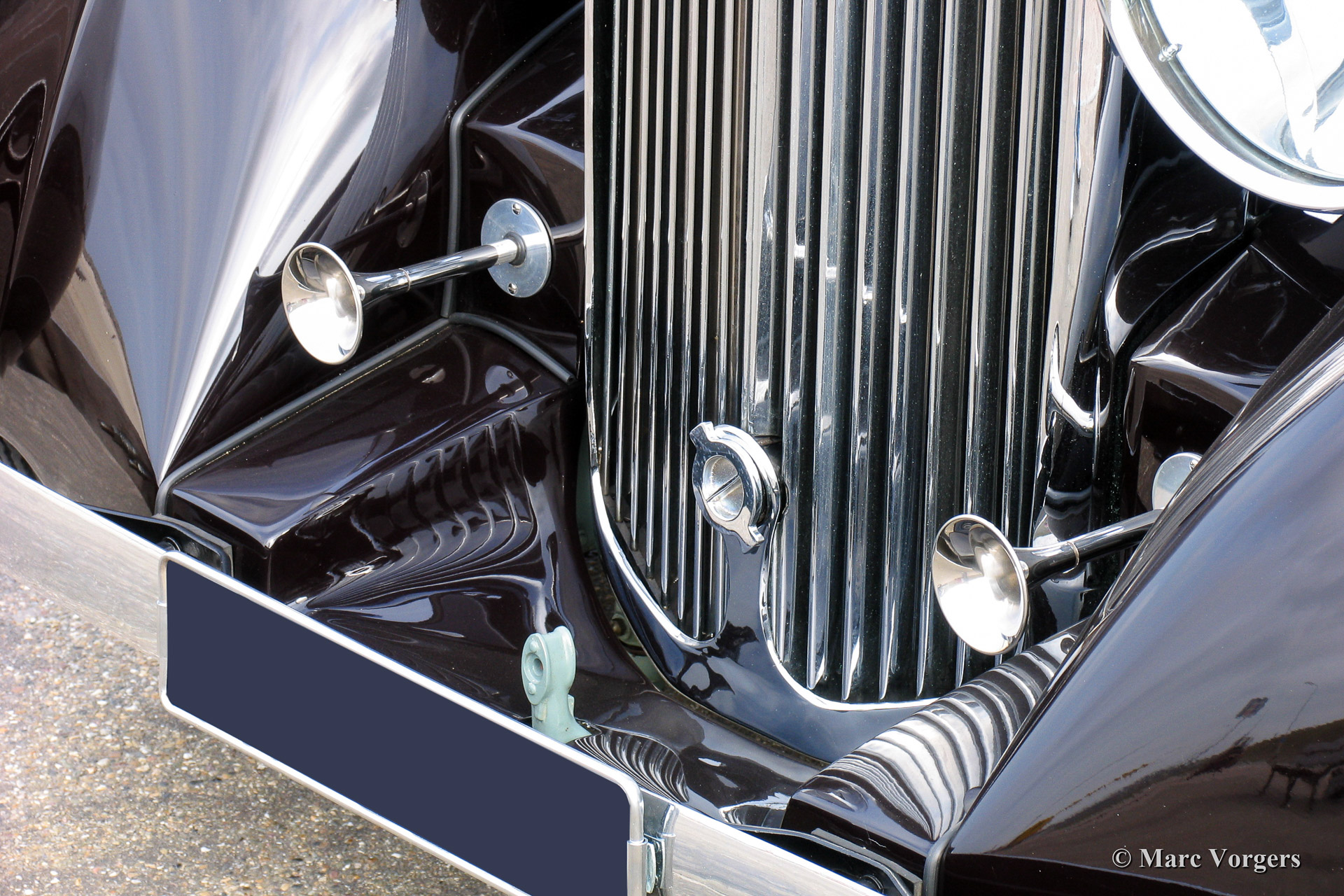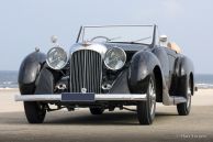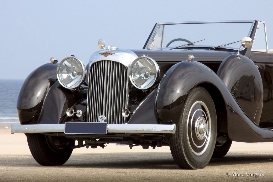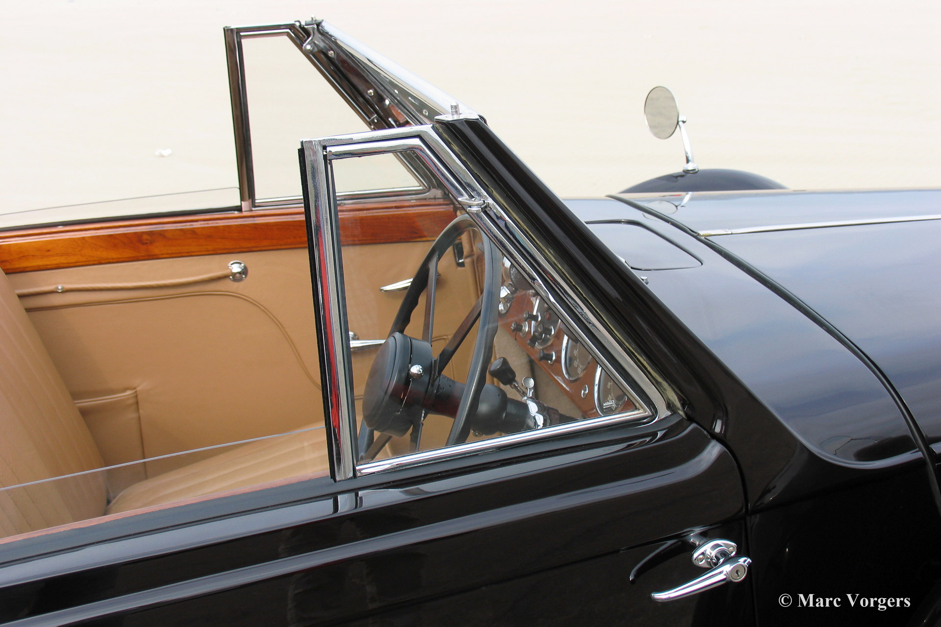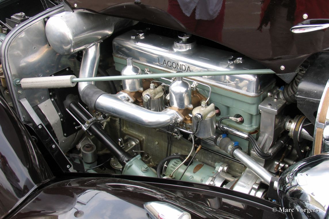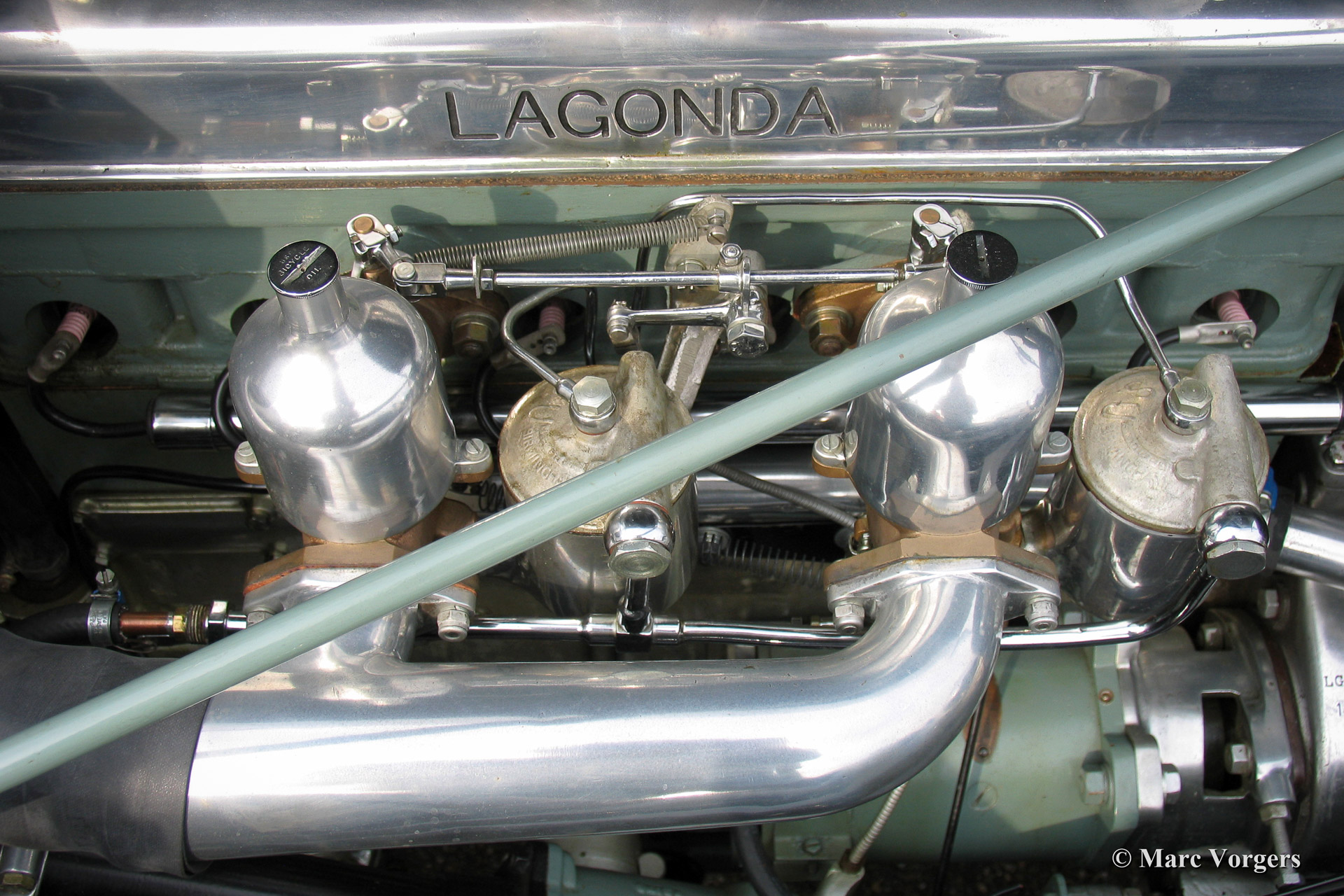 Lagonda LG6 Drop Head Coupe (DHC), bouwjaar 1938. Kleur zeer donkerrood (nagenoeg zwart), beige lederen interieur met beige wollen tapijt. Beige cabriolet-kap. Deze prachtige Lagonda LG6 'Pennock' uit 1938 is een lichtend voorbeeld van de restauratie vaardigheden van Amicale Facel Holland. De automobiel werd tussen 1995 en 2001 volledig 'body off' gerestaureerd naar de hoogst mogelijke perfectie. Veel originele onderdelen moesten worden gezocht en zelfs nieuw gemaakt. De Lagonda werd naar originele nieuwstaat gebracht waarbij de 'coachbuild' achterzijde, vervaardigd door 'Pennock', is aangehouden vanwege de historische achtergrond. Deze zeldzame en zeer speciale Lagonda LG 6 kent een prachtige en volledig gedocumenteerde historie inclusief een TV reportage uit 2004. Sinds de restauratie heeft de automobiel ca. 3500 mijlen gereden.