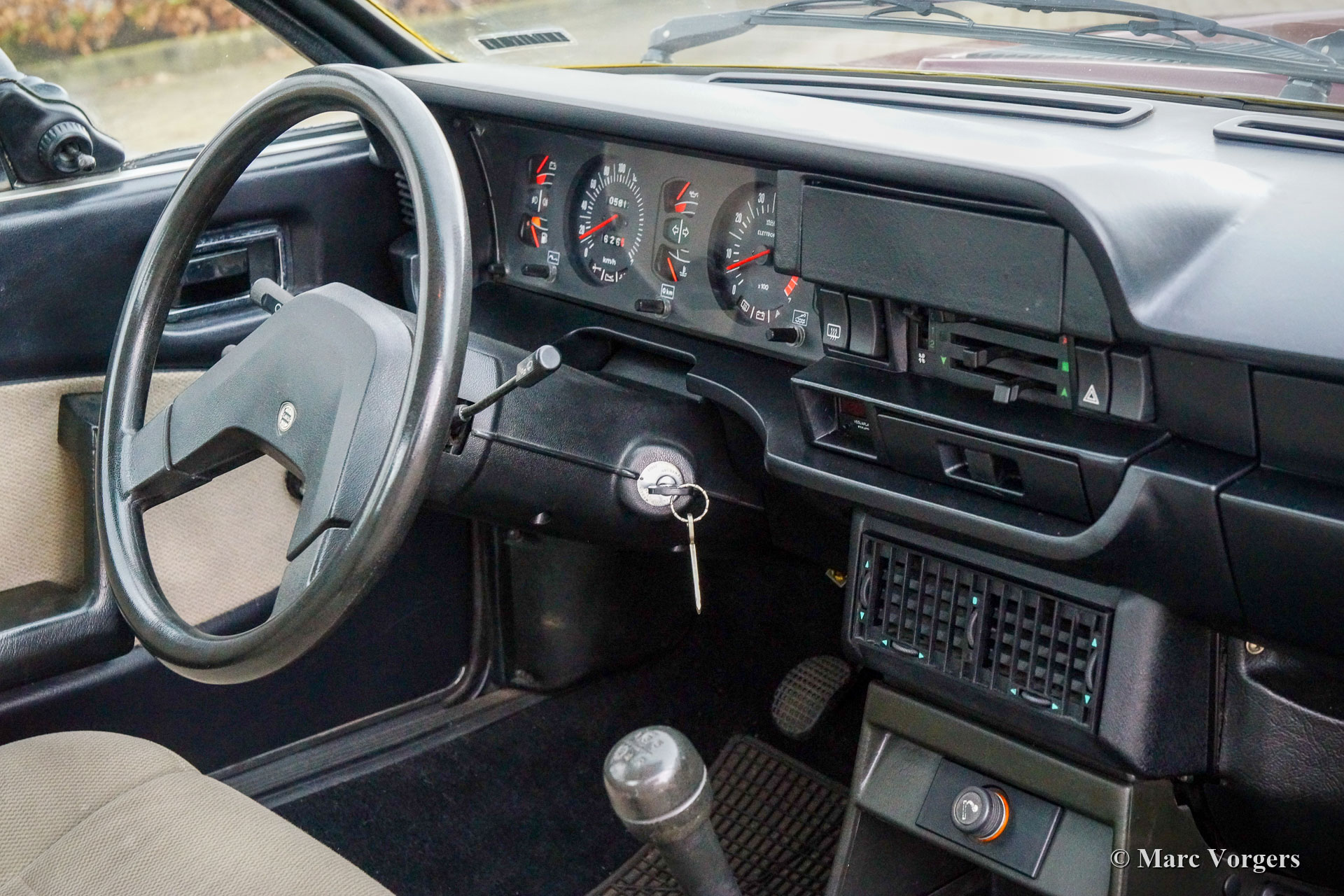 Lancia (Beta) 1300 Coupé, jaar 1978. Kleur Bordeauxrood gecombineerd met een grijs stoffen interieur en zwart tapijt. Deze prachtige Lancia 1300 Coupé werd nieuw verkocht in Italië. In 2004 is de auto in Nederland geïmporteerd. In Nederland kende de auto één vorige eigenaar die de auto in de wintermaanden schorste voor de winterstalling. De kilometerteller geeft momenteel 05.812 kilometer aan. Deze Lancia 1300 Coupé verkeert in een goede tot zeer goede en opmerkelijk originele conditie en de auto rijdt voortreffelijk. Het interieur is geheel origineel en in prachtige staat! De carrosserie is hard en toont een perfecte pasvorm van het plaatwerk. Het lakwerk boven de taillelijn is erg goed, onder de taille en op de dorpels vindt u enig kleurverschil en kleine lakbeschadigingen op de randen van de deuren. De auto is door een Fiat Dino specialist up-to-date gebracht en er zijn nieuwe wielen gemonteerd. De Lancia 1300 Coupé was in nieuw een dure auto en daarom vrij zeldzaam. Tegenwoordig zijn deze prachtige auto's erg moeilijk te vinden in goede conditie. Dit is een zeer goed origineel exemplaar dat gekoesterd zal worden door een nieuwe liefhebber en/ of Lancia verzamelaar!