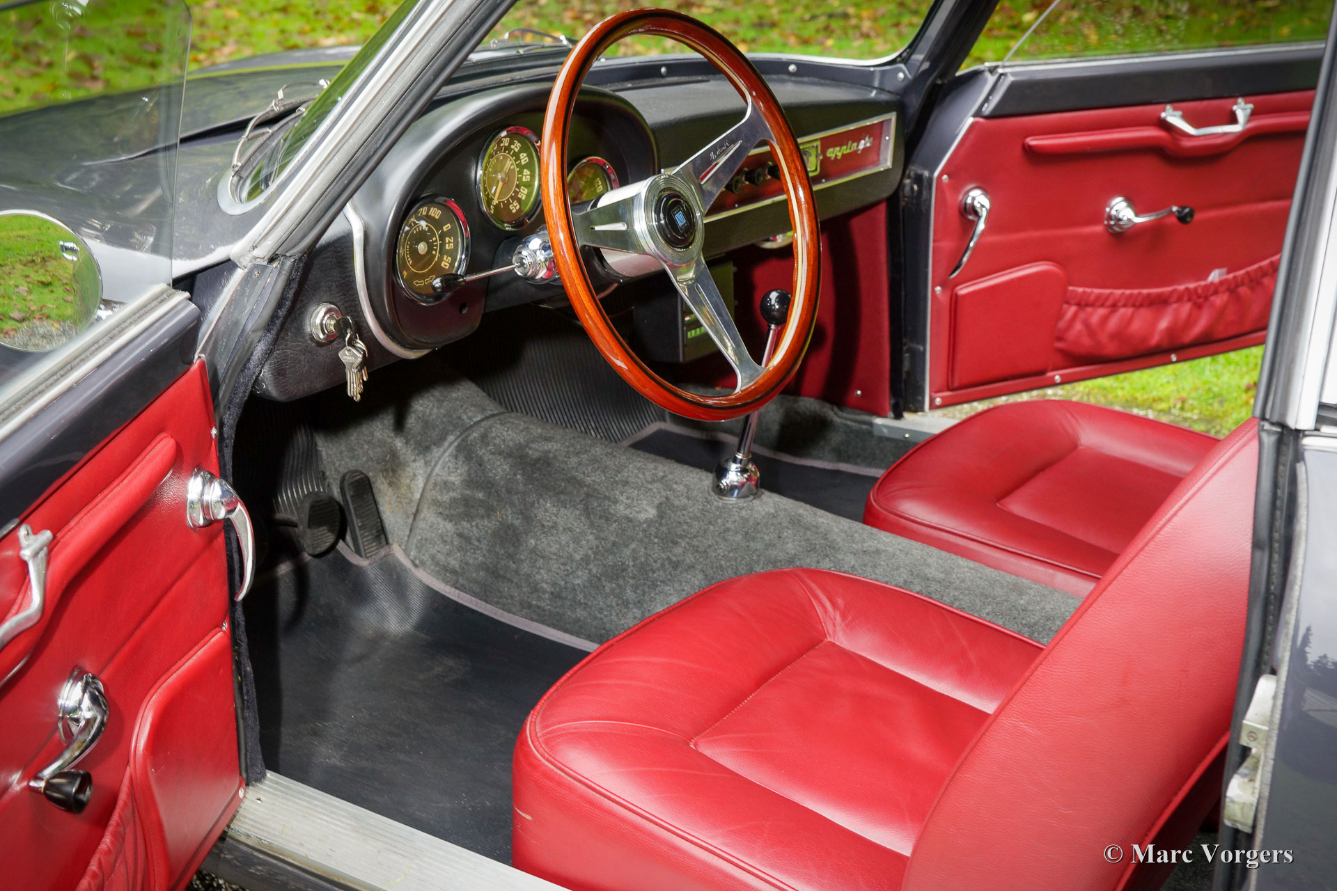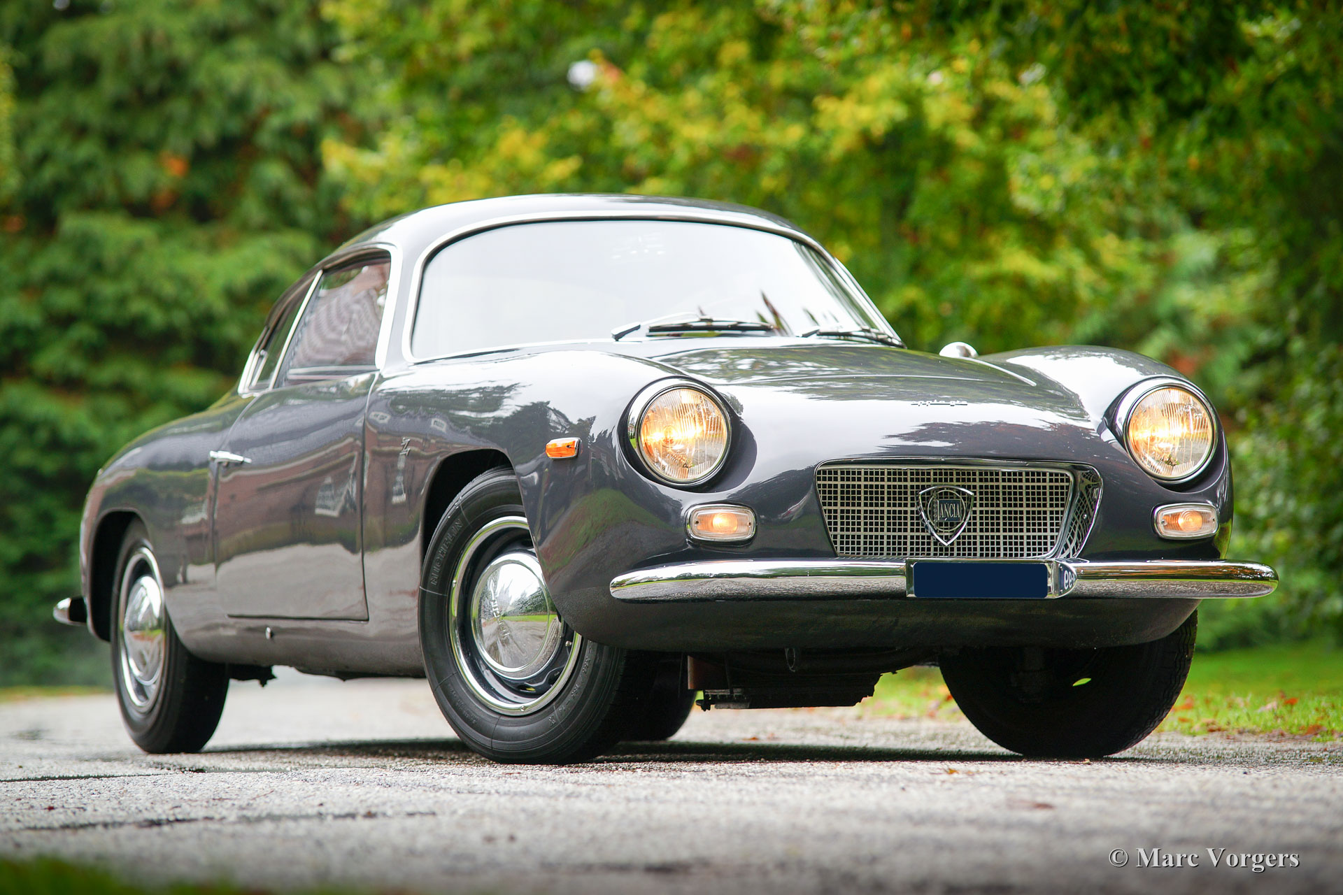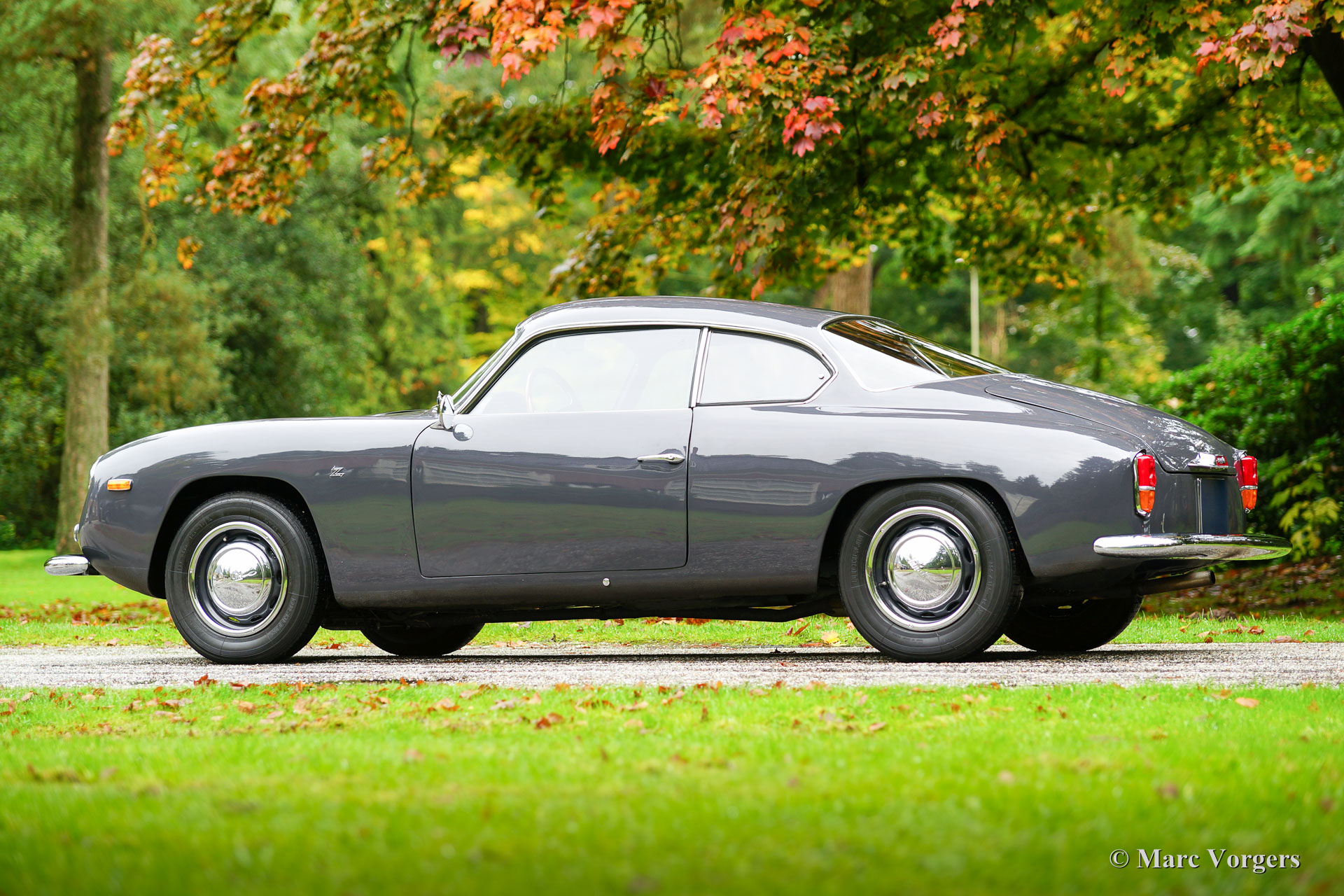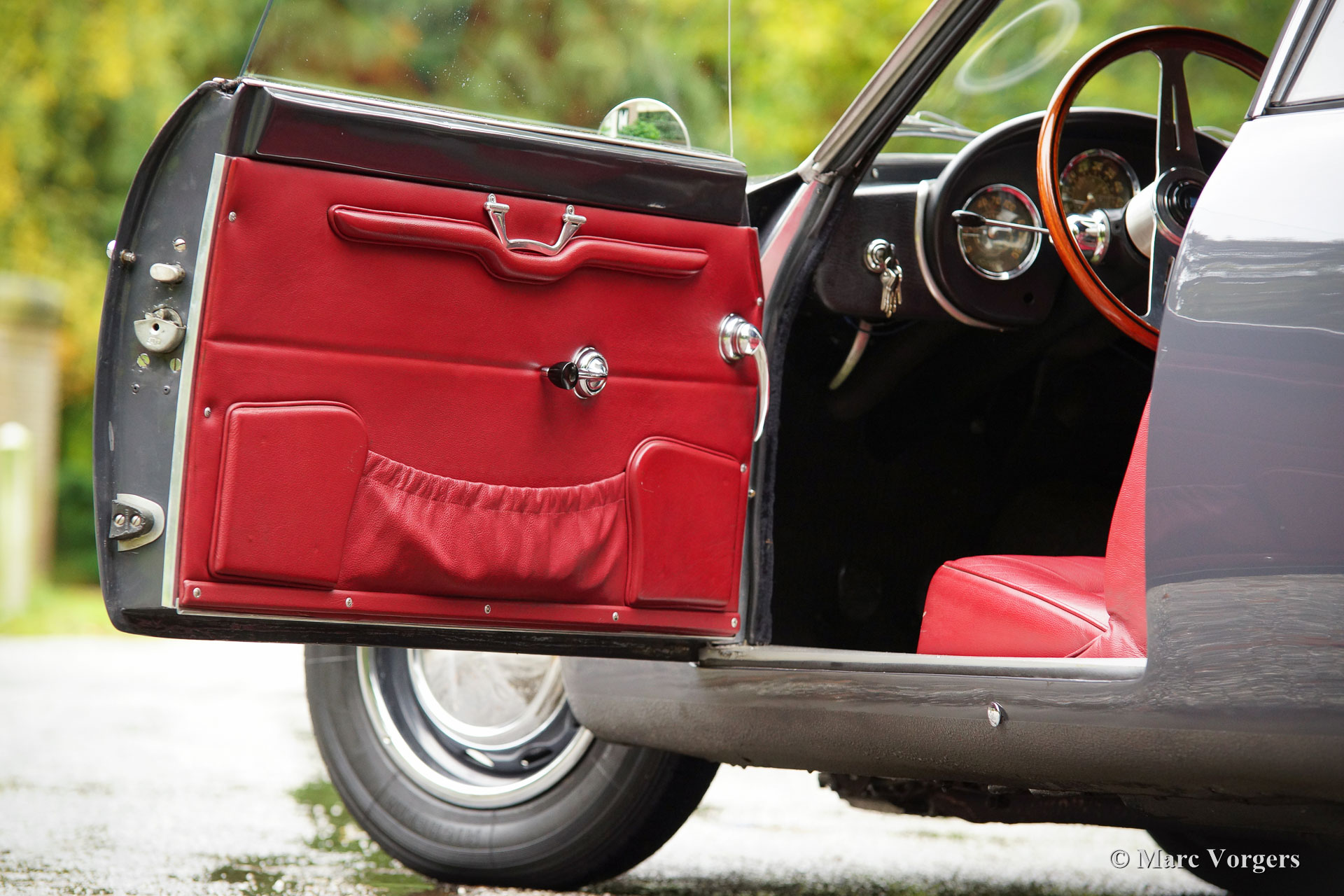 Lancia Appia Zagato GTE (serie 3), bouwjaar 1961. Kleur donkergrijs met een rood lederen interieur. Deze zeer exclusieve en ultra zeldzame Zagato (slechts 134 gebouwd) werd nieuw verkocht in de USA. De auto is voorzien van een Nardi stuurwiel. Deze compacte en lichte Lancia Appia Zagato’s waren succesvol in rally’s in de jaren 1950 en 1960!