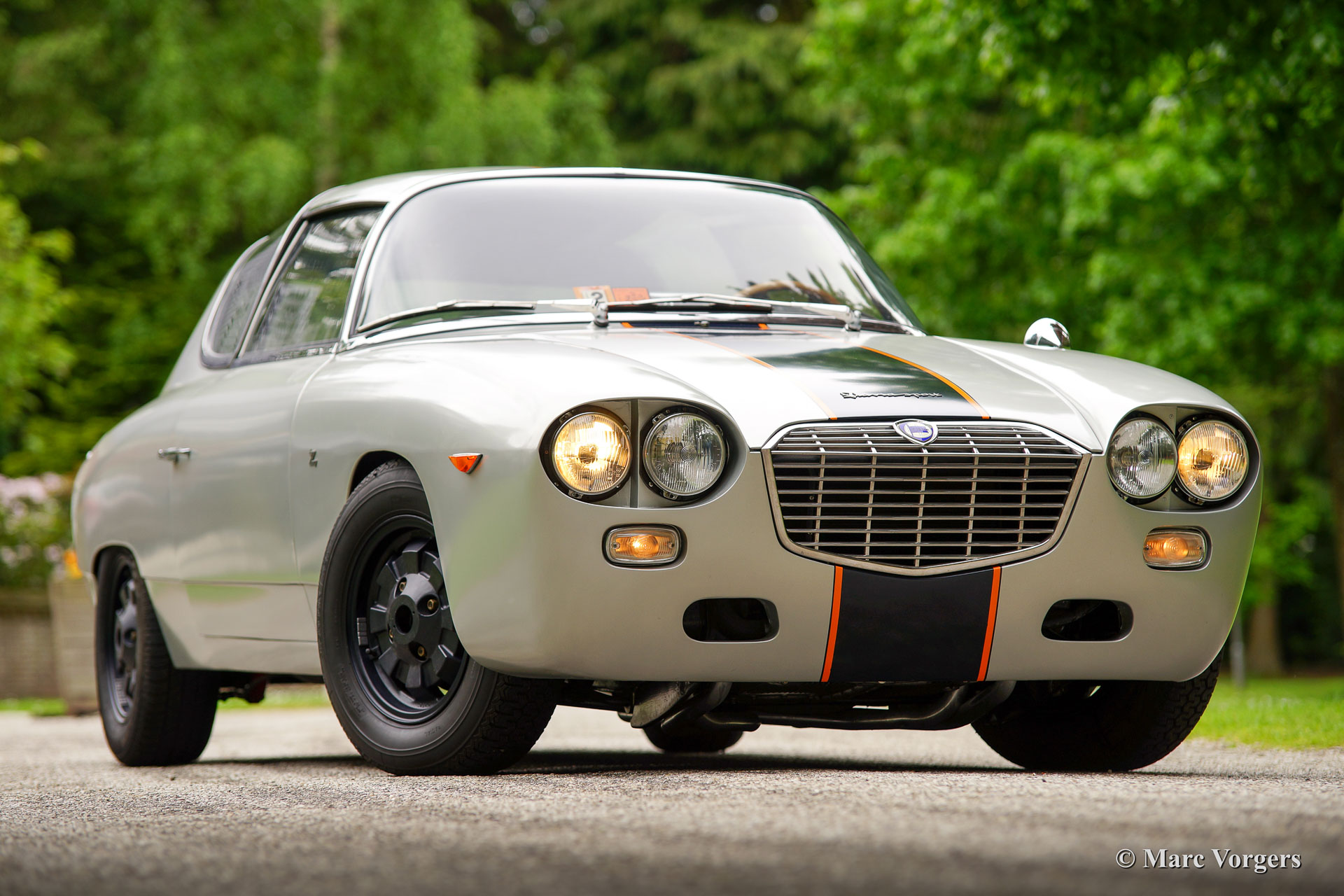 Lancia Flavia Sport Zagato, bouwjaar 1966. Chassisnummer: 815.532*001XXX. Kleur mat zilver metallic met een zwart lederen interieur. Deze geweldige Lancia Flavia Zagato verkeert in zeer goede staat. De auto rijdt fantastisch en het is een echte ‘head turner’. De auto werd ongeveer vijftien jaar geleden uitvoerig onder handen genomen. De carrosserie werd uitvoerig gerestaureerd, veel slecht plaatwerk werd vervangen, de deuren werden gereconstrueerd, nieuwe verstevigde dorpels en A-stijlen werden ingelast en de vloer van de kofferbak werd vernieuwd. De bekleding van het interieur werd vernieuwd. Nu zwart leder, het originele rode (niet gerestaureerde) interieur is ook aanwezig. Tevens inbegrepen zijn een set originele stalen wielen en de niet gerestaureerde voor- en achterbumper.
