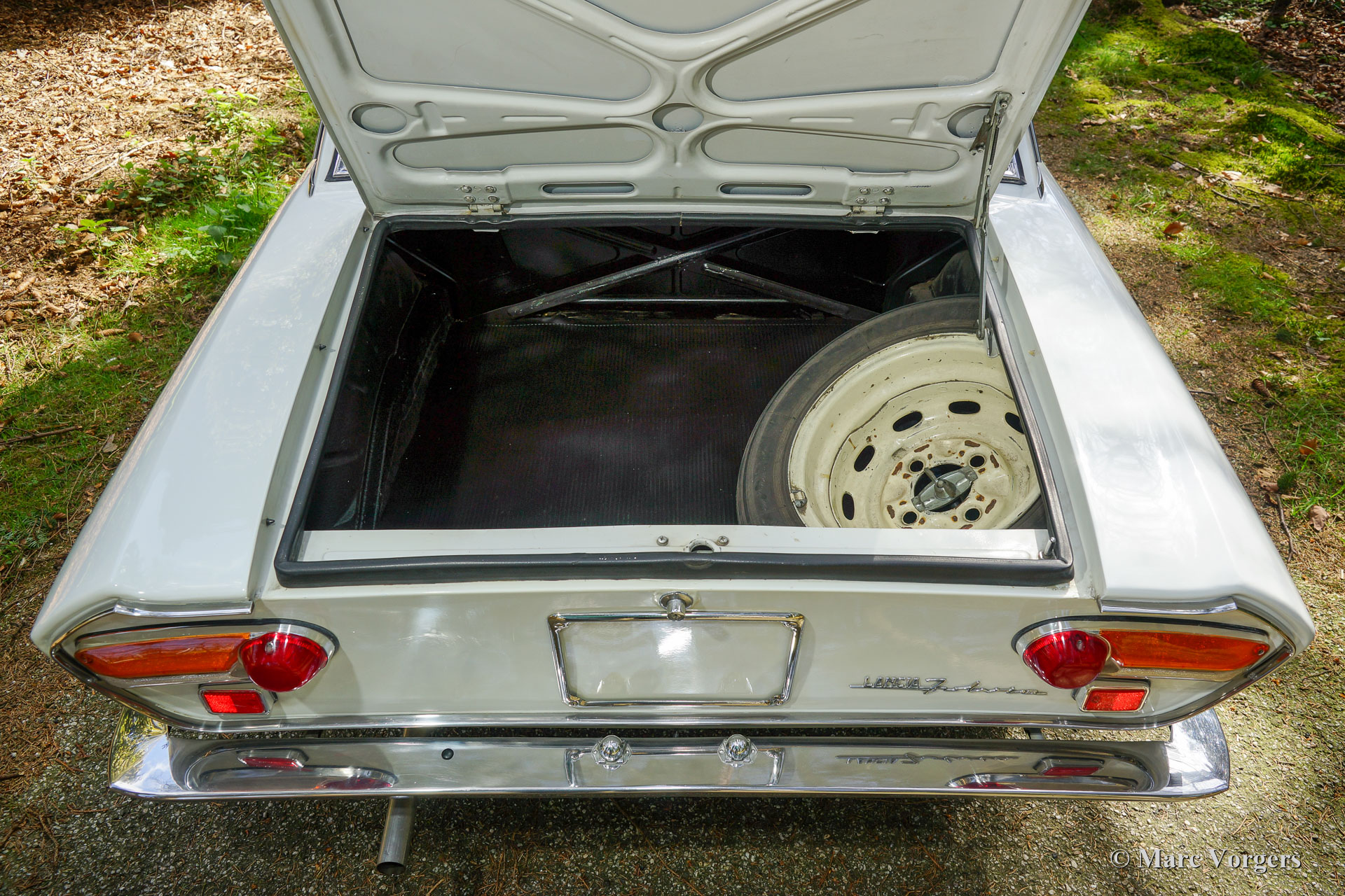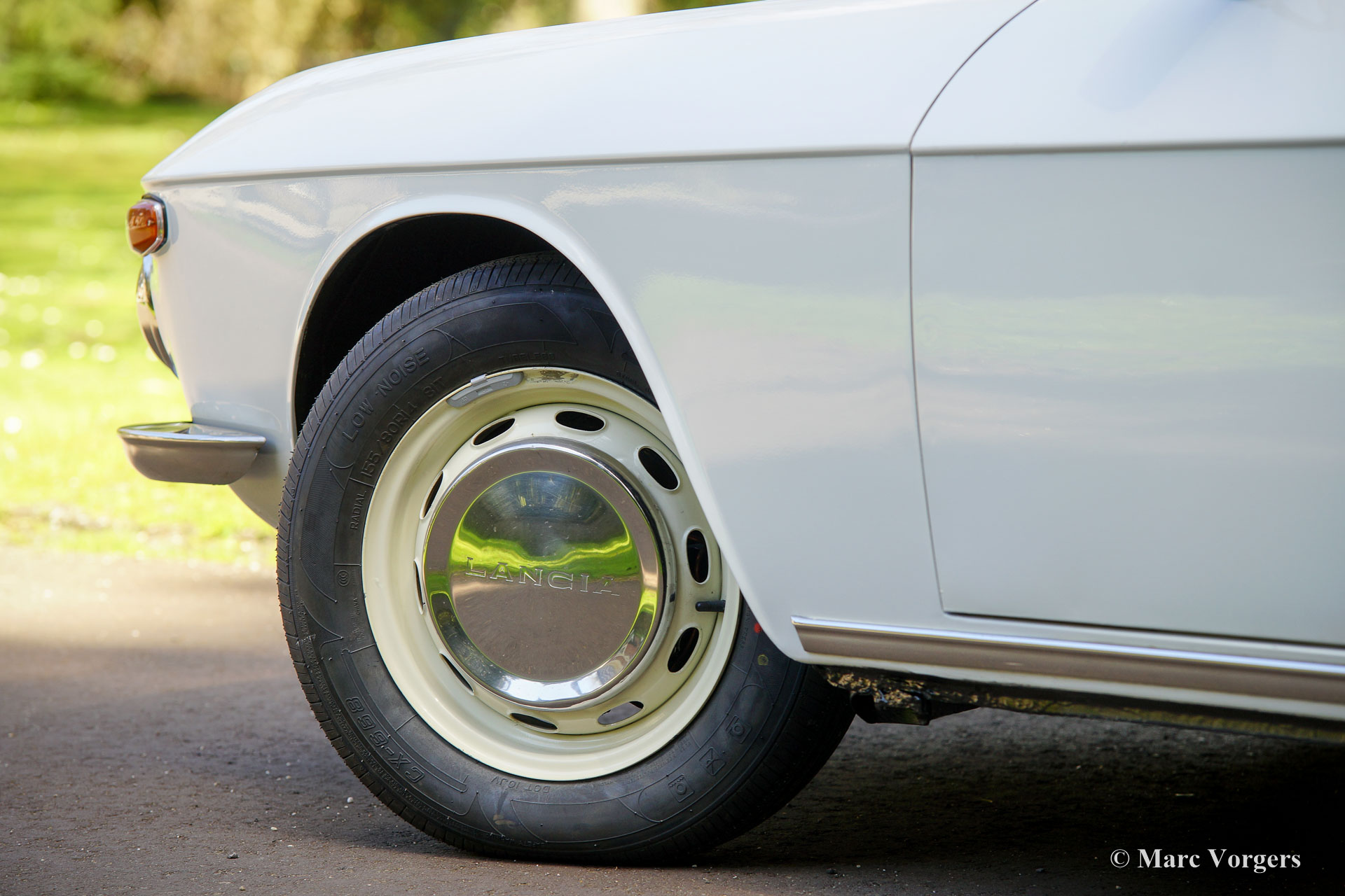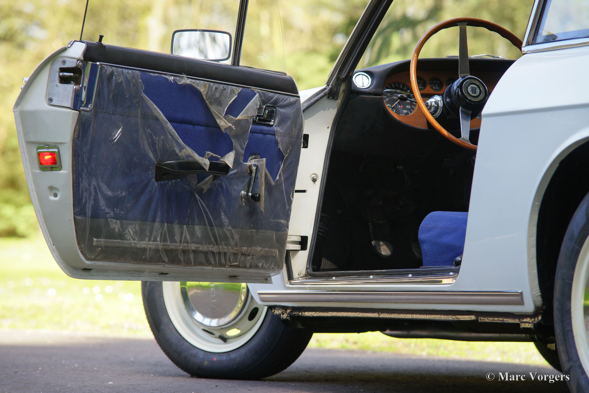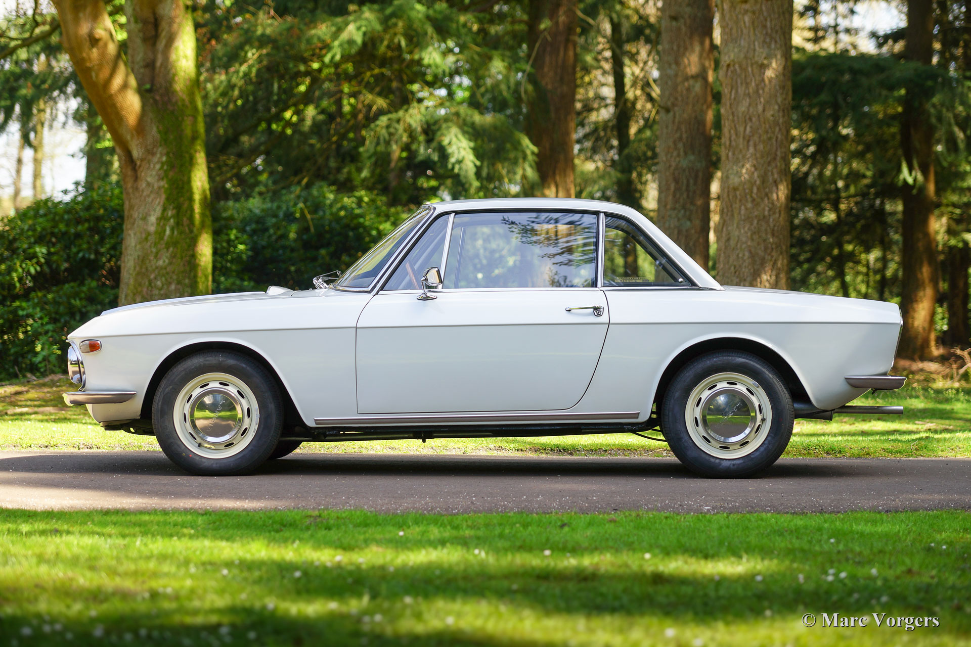 Lancia Fulvia 1.2 coupe, jaar 1967. Kleur wit (Bianco Saratoga) met een blauw stoffen interieur en zwart rubber vloerbedekking. Deze geweldige en ‘matching numbers’ Lancia Fulvia van de eerste serie werd in 2014 geïmporteerd vanuit Italië. De auto verkeert in sublieme en zeer originele topstaat en de auto rijdt alsof deze zojuist de fabriek heeft verlaten. In het jaar 2008 werd de auto gedemonteerd en volledig nieuw opgebouwd. De carrosserie werd hierbij deels (waar nodig) voorzien van nieuwe lak. Tijdens dit proces werden onder andere de volgende onderdelen vernieuwd: koplampen, ontsteking, radiateur, benzinepomp, gehele remsysteem (nu RVS), nieuwe koppeling, nieuwe startmotor, nieuwe schokdempers (nu Koni Classic) en de homokinetische koppelingen van de voorwielaandrijving. De carburateurs werden gereviseerd, de benzinetank gereinigd et cetera. Deze Lancia Fulvia is een topstuk in zeer originele staat. De deurbekleding wordt nog grotendeels beschermd door het originele plastic dat af-fabriek werd aangebracht!