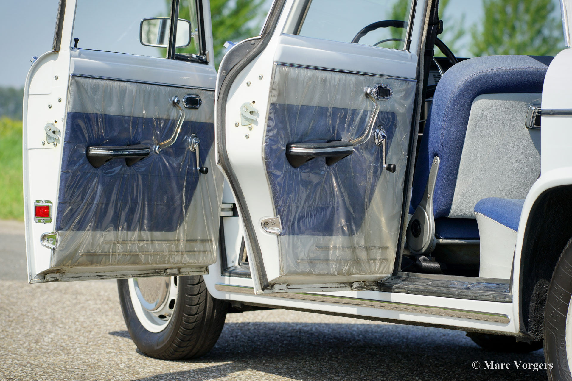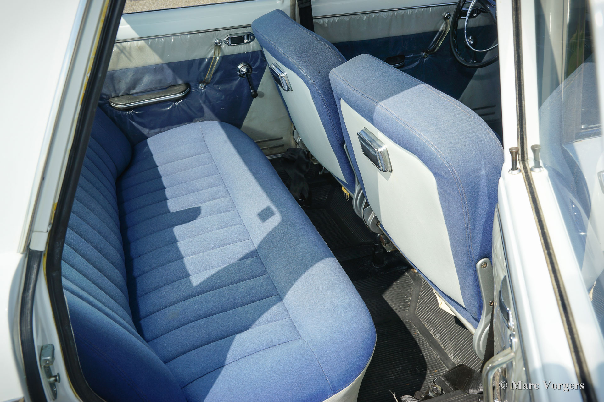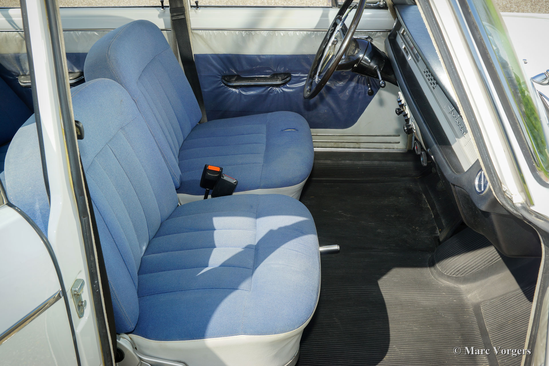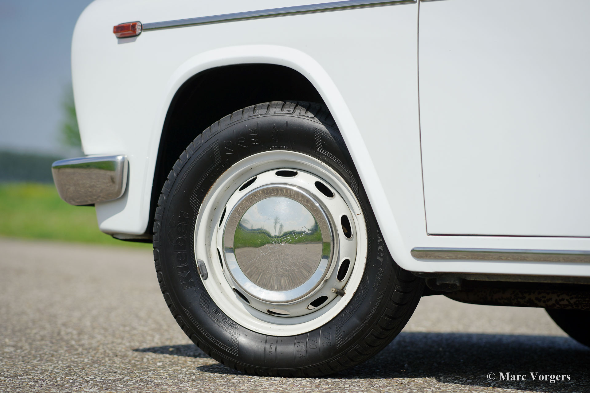 Lancia Fulvia Berlina 2C, jaar 1966. Kleur wit (Bianco) met een blauw stoffen interieur en zwart rubber vloerbedekking. Deze geweldige Lancia Fulvia Berlina 2C verkeert in excellente originele staat! De auto is grotendeels nog voorzien van de eerste lak en het interieur is volledig origineel. De deurpanelen zijn nog voorzien van de plasticfolie die de auto af-fabriek meekreeg! De stof van de bestuurdersstoel vertoont helaas een scheurtje dat gelukkig vrij eenvoudig hersteld kan worden. Technisch is deze Lancia ook een juweeltje; de V4 motor is uitgerust met twee Solex carburateurs (2C) en deze loopt perfect. De stuurschakeling laat zich perfect en als nieuw bedienen. Deze Fulvia Berlina is een fraai stukje Italiaanse industriële vormgeving uit de jaren 1960 met een bijzonder fraai gedetailleerd dashboard.