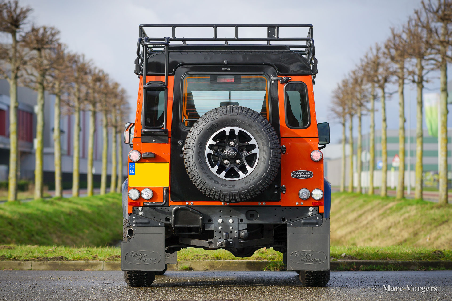 Land Rover 90 Defender ‘Adventure Edition’, jaar 2016. Kleur Phoenix Orange met een ‘Windsor’ zwartlederen interieur afgewerkt met zwart tapijt. Dit is een fantastische en zeldzame ‘limited edition’ Land Rover Defender, er zijn slechts 600 van dit 3-deurs ‘Adventure Edition’ model gebouwd, een waar collectors item. Dit ‘limited edition’ model is voorzien van vele bijzondere opties en details. Het meest in het oog springend zijn de speciale kleur, het ‘90 Adventure’-logo, de speciale carrosseriewerkafwerking, de imperiaal met trapje, en de speciale wielen met Goodridge ‘all-terrain’ banden. Discreter is het toegenomen vermogen van de 2,2-liter TD4 Puma-dieselmotor die nu 148 pk en 400 Nm levert! Het vermogen wordt via een handgeschakelde 6-versnellingsbak op de versterkt uitgevoerde assen overgebracht. De auto is prachtig afgewerkt en het interieur is ook achterin hoogwaardig afgewerkt. De auto is uitgerust met een scala aan moderne comfort- en veiligheidsopties, waaronder xenonkoplampen. Momenteel is de auto een tweezitter, twee extra stoelen om achterin te plaatsen (met ‘geel’ NL-kenteken) zijn aanwezig. Deze prachtige ‘limited edition’ Land Rover is afkomstig van de eerste eigenaar. De auto verkeert in een sublieme en als nieuwe conditie en de auto heeft vanaf nieuw slechts 12.000 kilometer gereden. Een zeldzame ‘limited-edition’ van de iconische klassieke Land Rover 90 Defender voor de verzamelaar/ liefhebber! De auto heeft een Nederlands (‘grijs’) kenteken, dus zonder BPM. Het volledige originele interieur is aanwezig, de auto kan op ‘geel’ kenteken gezet worden.