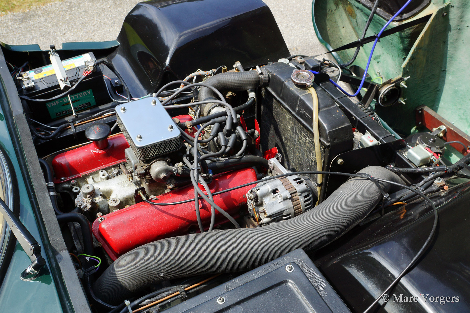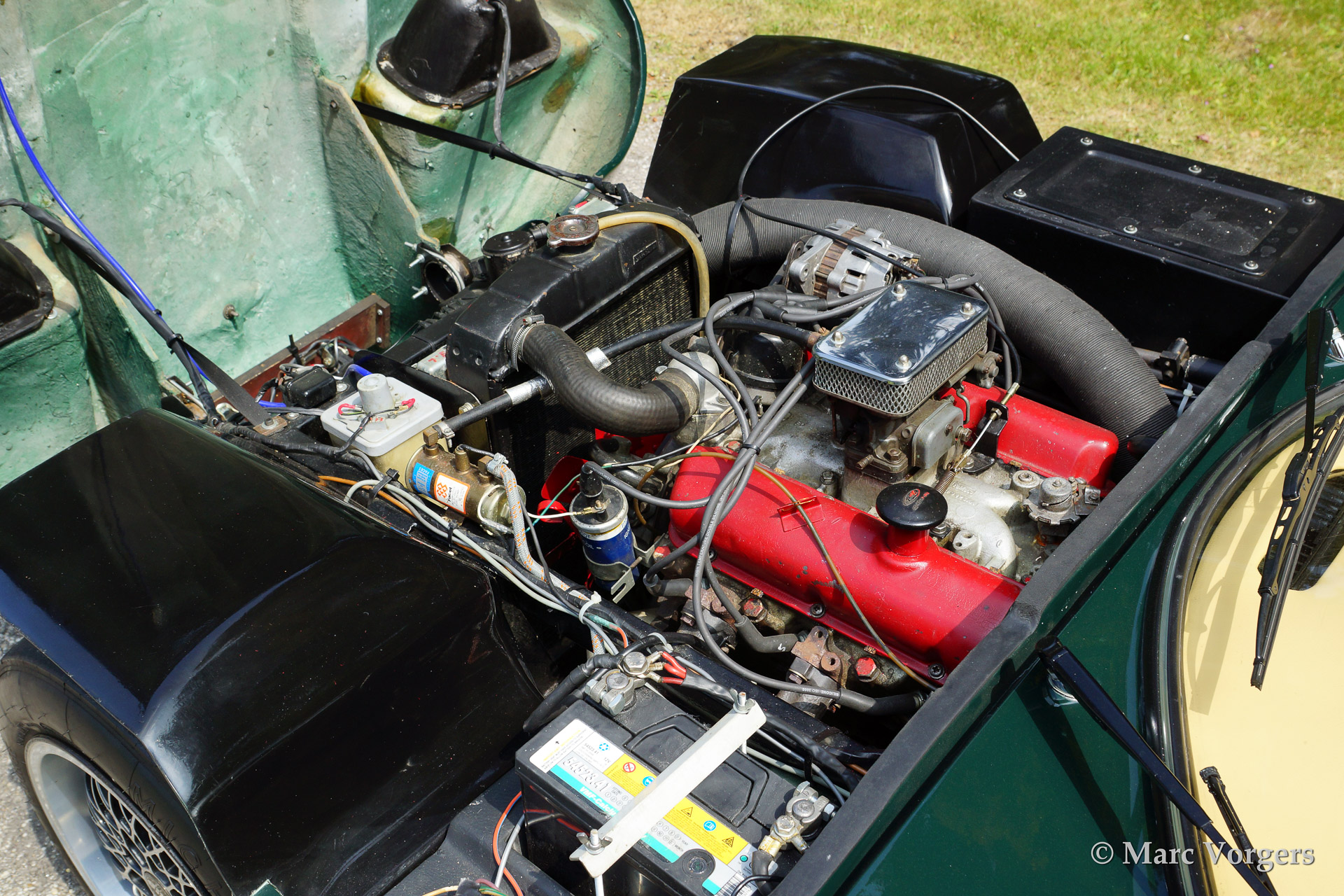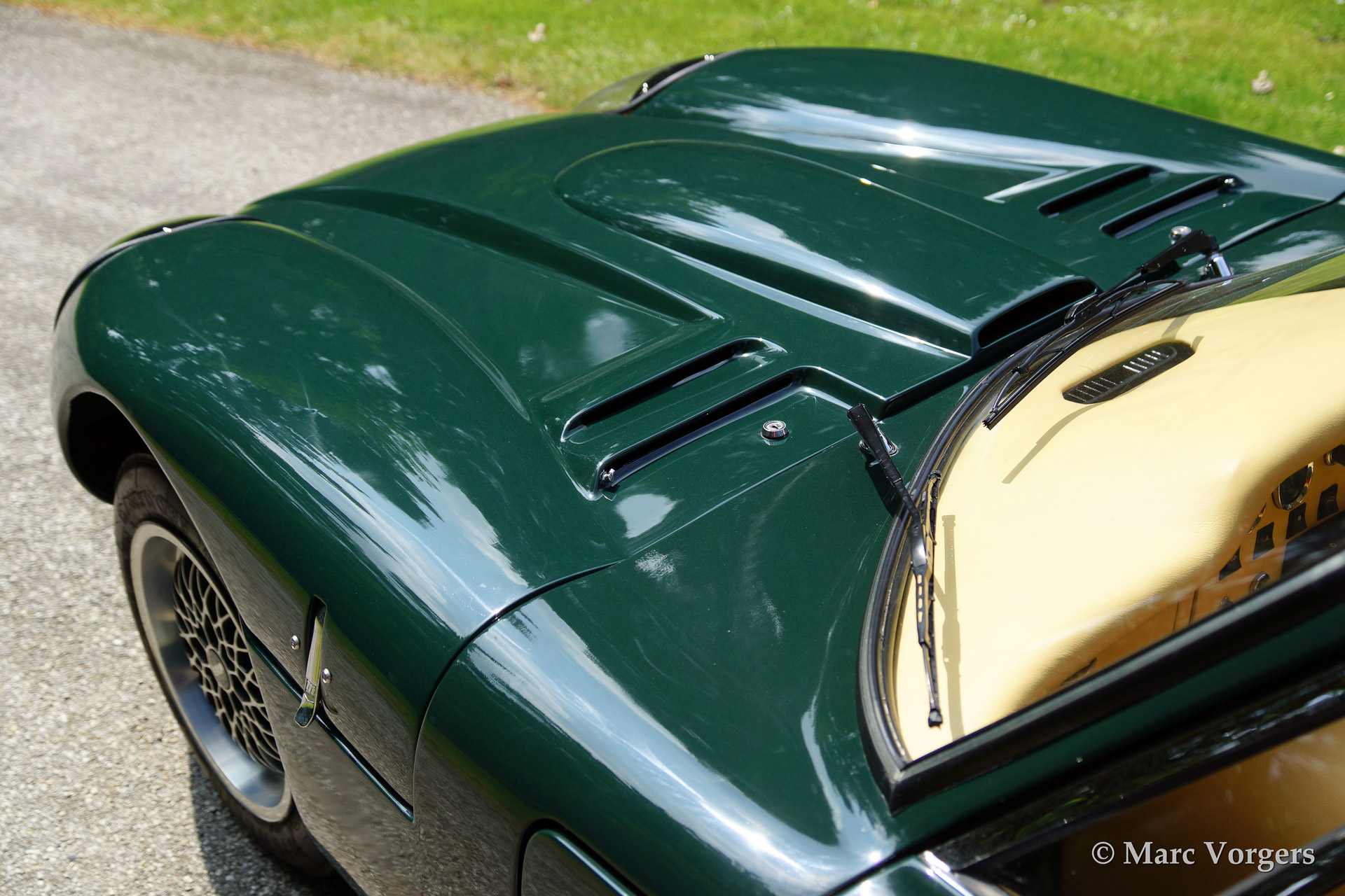 Marcos GT 3-Litre, bouwjaar 1969. Kleur 'British Racing Green'met een beige lederen interieur. Deze geweldige Marcos GT werd uitvoerig gerestaureerd. Kosten noch moeite werden gespaard om alles perfect te krijgen. De Marcos GT 3-Litre is een zeldzame auto, er werden slechts 145 exemplaren met de Ford 'Essex' 3 liter motor gebouwd. Volgens de documenten werd deze auto origineel afgeleverd met het grote sunroof! In dit geval geeft het sunroof ook extra, niet overbodige, hoofdruimte! De auto is uitgerust met een vol-lederen interieur (donkergroene stoelen, beige dashboard, transmissietunnel en de deur panelen, 4-punts veiligheidsgordels, extra meters en prachtige lichtmetalen wielen.