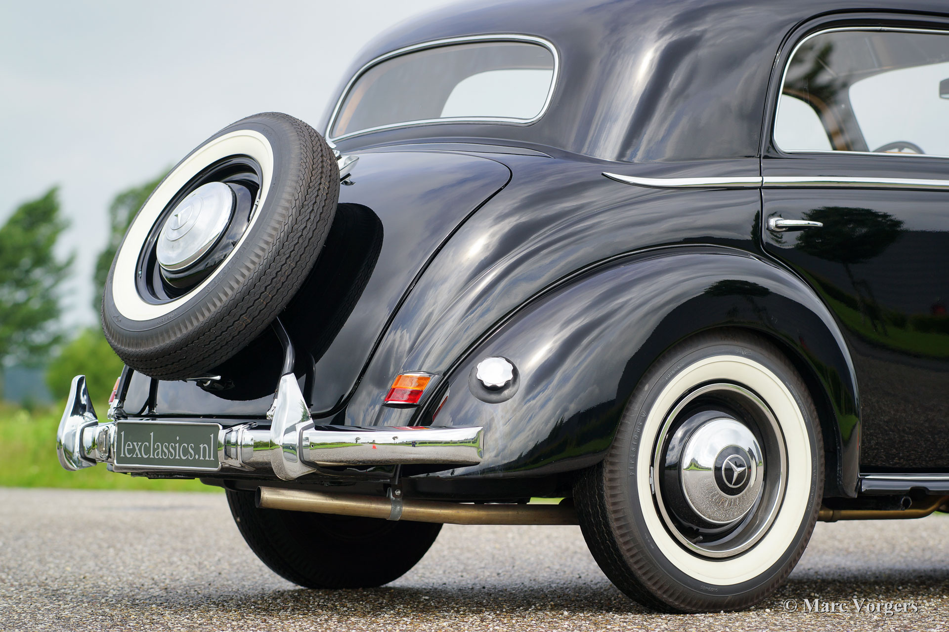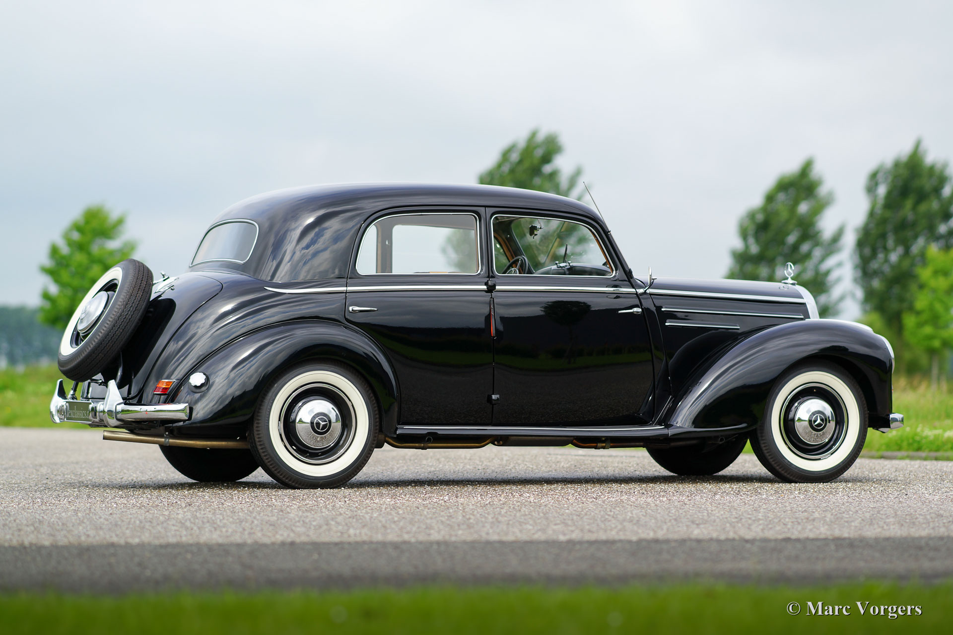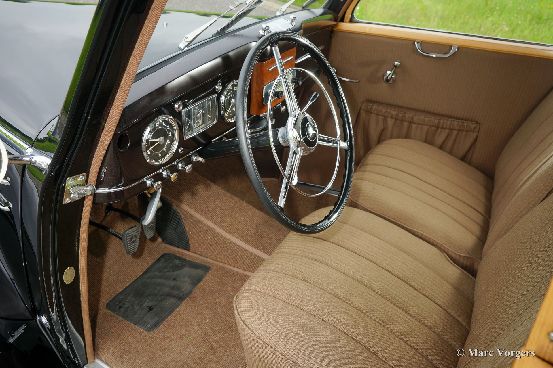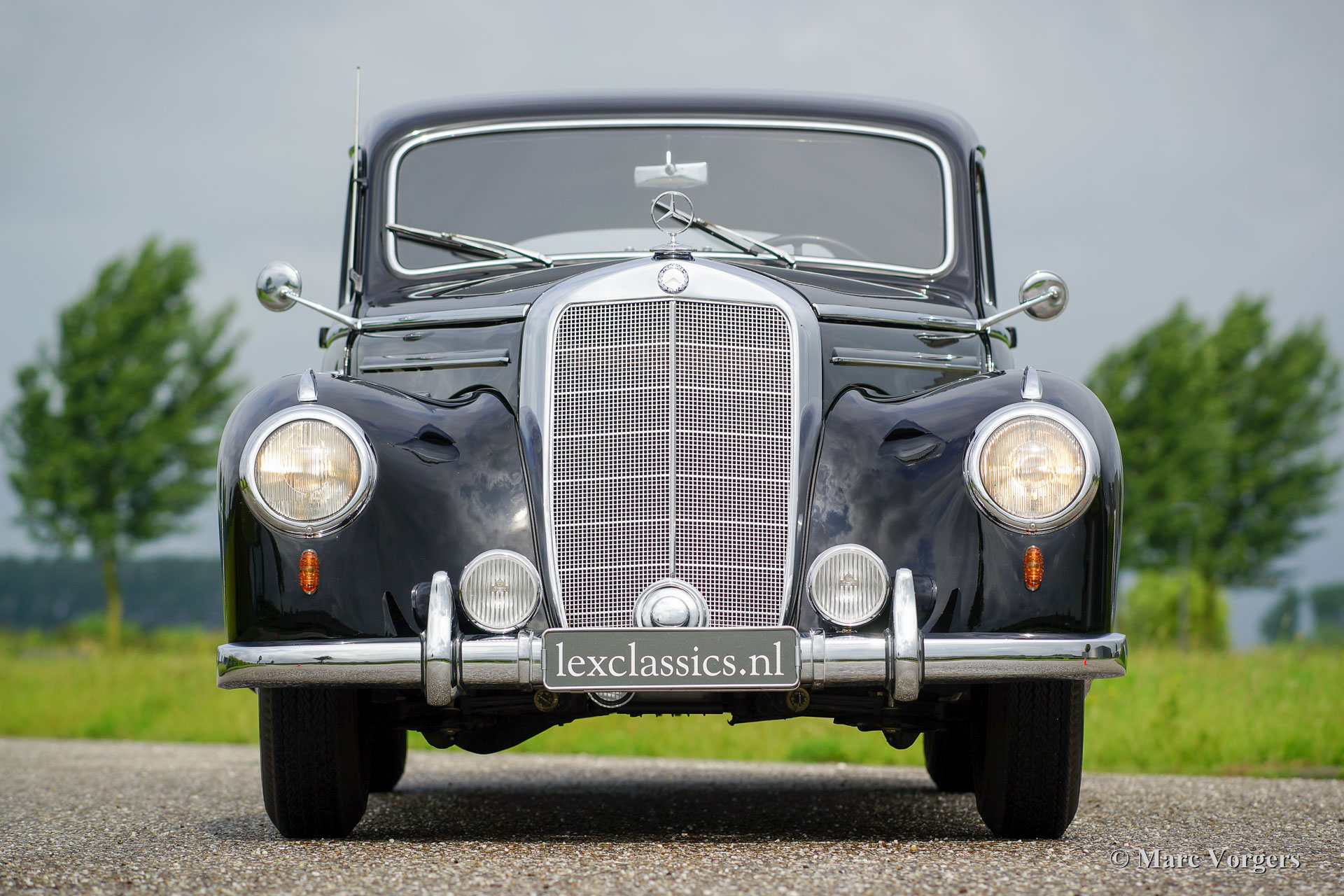 Mercedes-Benz 220 limousine, jaar 1952. Kleur zwart met een bruin stoffen interieur. Deze prachtige Mercedes-Benz werd uitvoerig gerestaureerd, de automobiel verkeert in sublieme topstaat en de auto rijdt voortreffelijk. De auto is voorzien van een zes cilinder lijnmotor en een vierversnellingsbak met stuurkolomschakeling. Een zeer solide en prachtige afgewerkte Mercedes-Benz.
