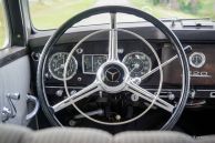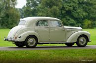 Mercedes-Benz 220 (W187), jaar 1953. Kleur crèmewit gecombineerd met een tweekleurig grijs stoffen/kunstlederen interieur en lichtgrijs tapijt. Deze prachtige Mercedes-Benz 220 is nieuw verkocht in Nederland, de auto is nog voorzien van het originele kenteken PX-15-31. Deze fantastische tijdcapsule verkeert in een zeer goede, zeer mooie, en zeer originele conditie. De automobiel maakte deel uit van een collectie en werd door de jaren heen minutieus onderhouden en door een vakman. De carrosserie is in het verleden voorzien van nieuwe lak in de originele kleur, de motor is in 2016 gereviseerd. In datzelfde jaar is het interieur opnieuw bekleed met de juiste materialen in de correcte kleuren. De zescilinder lijnmotor loopt prachtig en alles werkt feilloos. Deze Mercedes-Benz oogt als een volledig originele klassieker in uitstekend verzorgde staat! De automobiel rijdt heerlijk, deze W187 is een waar pareltje voor de Mercedes-Benz liefhebber/ verzamelaar.