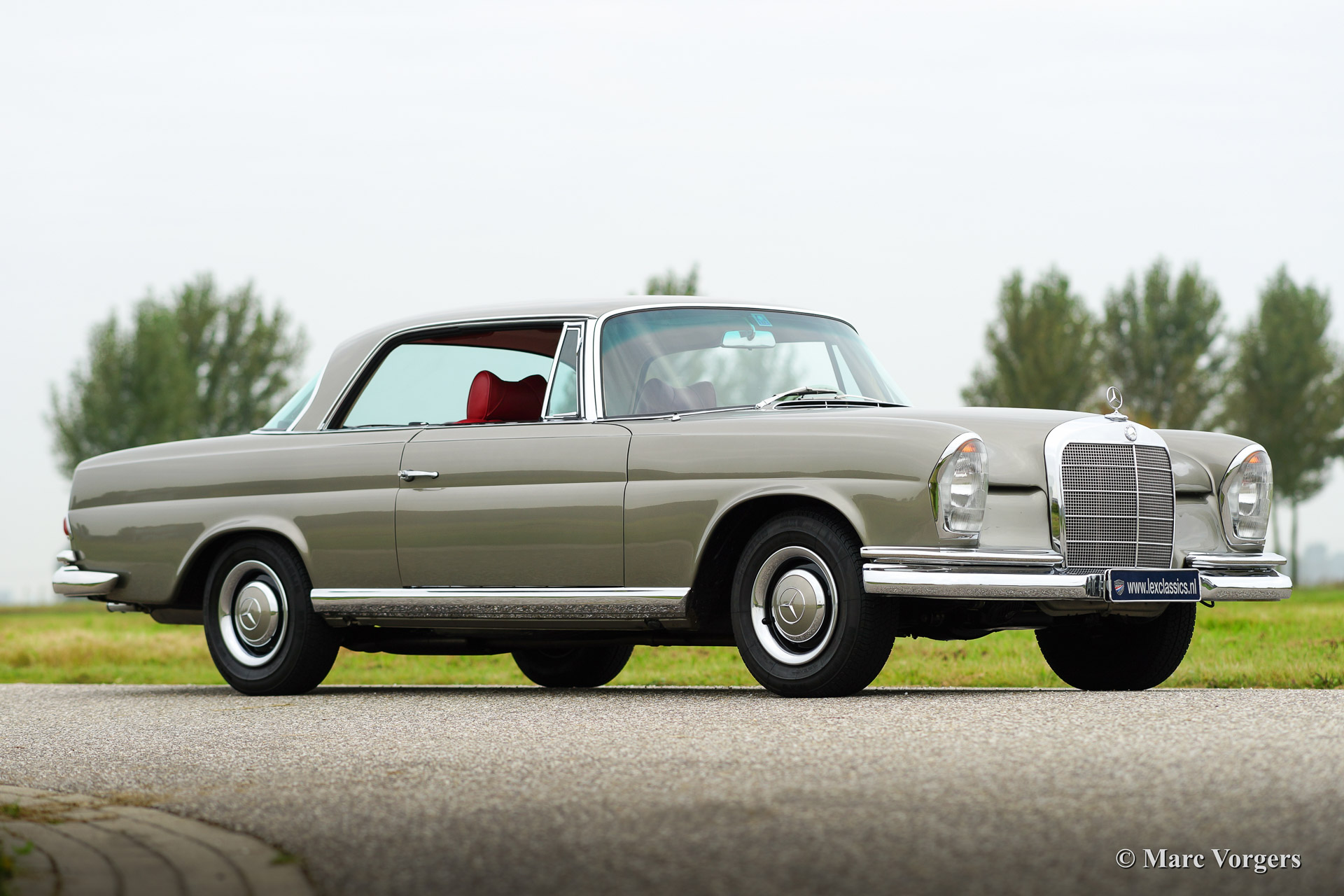 Colour Nerz Grau metallic with a red leather interior. This fabulous Mercedes-Benz coupe was extensively restored in Germany to superb (excellent++) condition, concours! Part of the work was carried out by Mercedes-Benz. This fine automobile was imported from Germany. The car comes beautifully documented, this including German and Dutch invoices proving all the work which has been carried out to bring the car to perfect condition. This Mercedes-Benz 250 Se coupe features a factory original sliding roof. The car looks like brand new in every detail! A great investment and a delightful car to drive with it's smooth six cylinder engine and it's positive manual four speed gearbox!