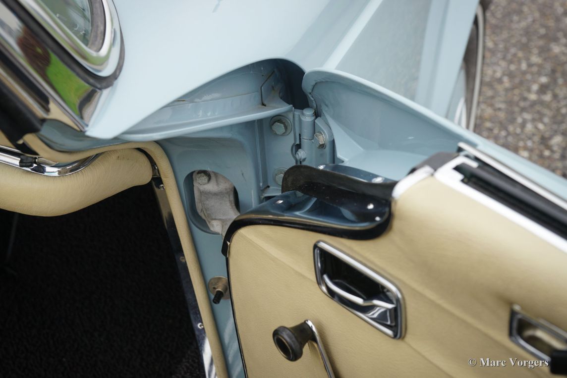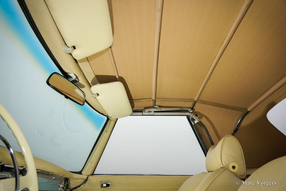 Mercedes-Benz 280 SL ‘Pagode’, bouwjaar 1970. Kleur ‘Horizont Blau’ met een beige lederen interieur en een blauwe soft-top. Deze prachtige Mercedes-Benz 280 SL werd nieuw verkocht in de USA. In 2014 werd de auto vanuit Arizona in Nederland geïmporteerd waarna een uitvoerige en professionele restauratie volgde. De automobiel verkeert in concoursstaat. Een uitgebreide fotoreportage van de restauratie is aanwezig evenals diverse facturen. De restauratie was gereed in 2015, sindsdien heeft de auto enkel testkilometers gereden. Deze 280 SL rijdt geweldig, een prachtexemplaar!