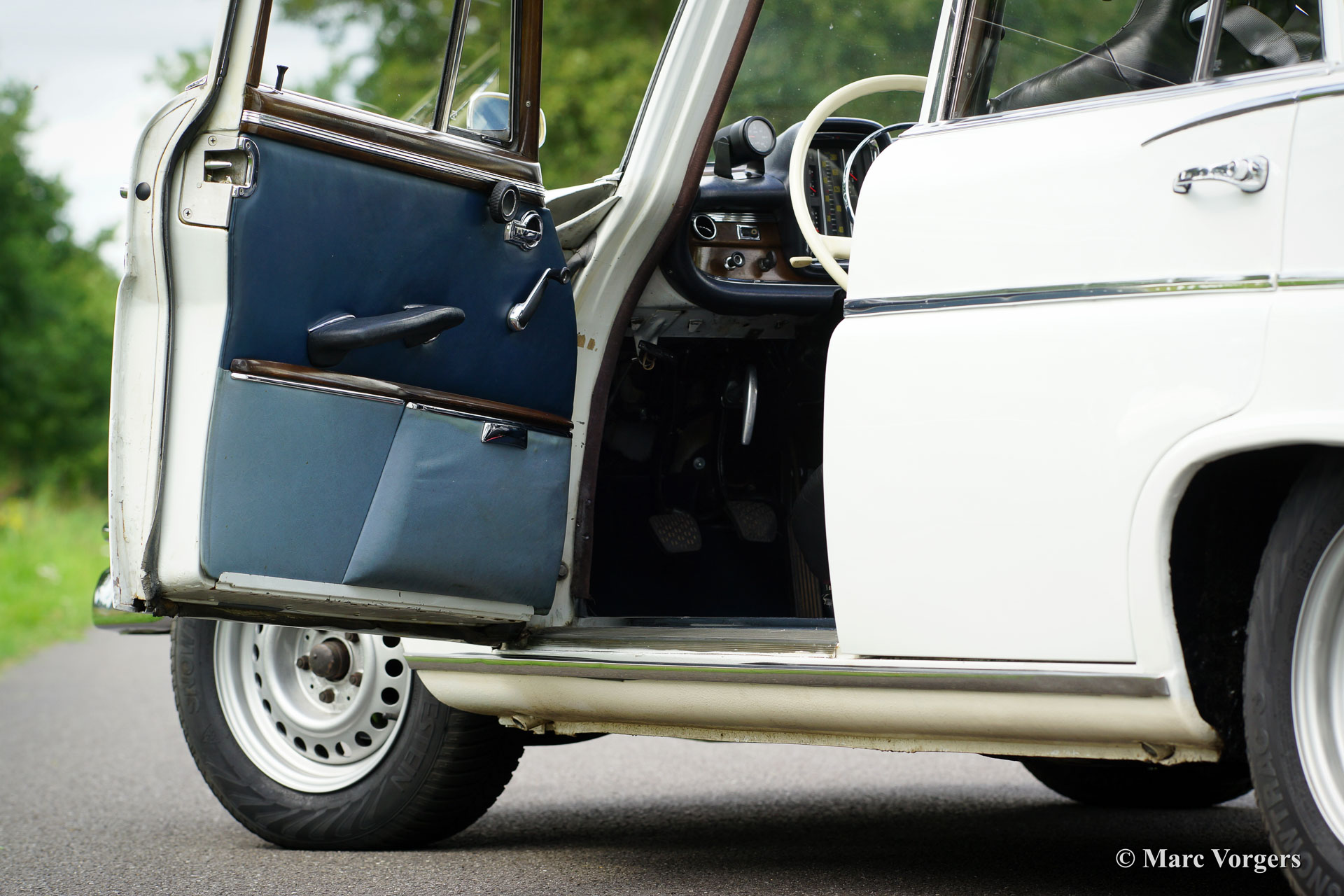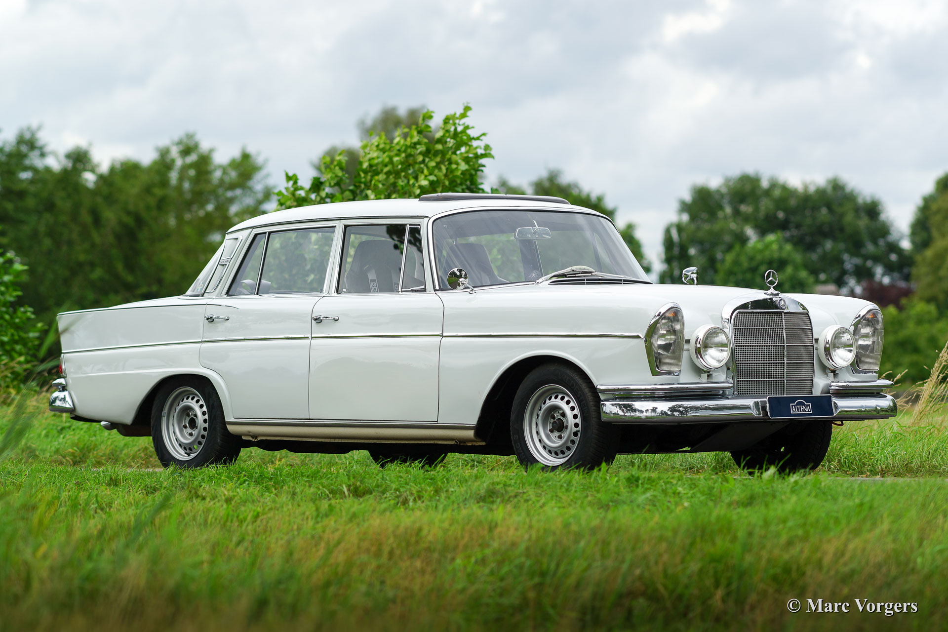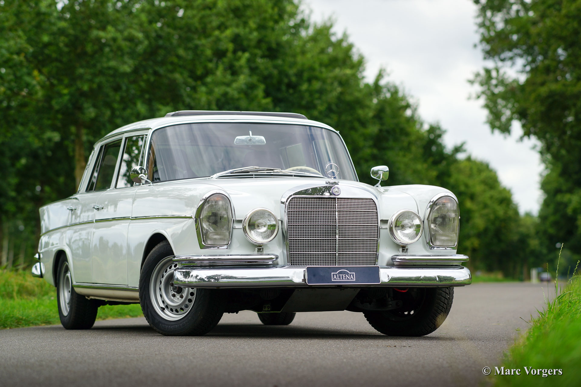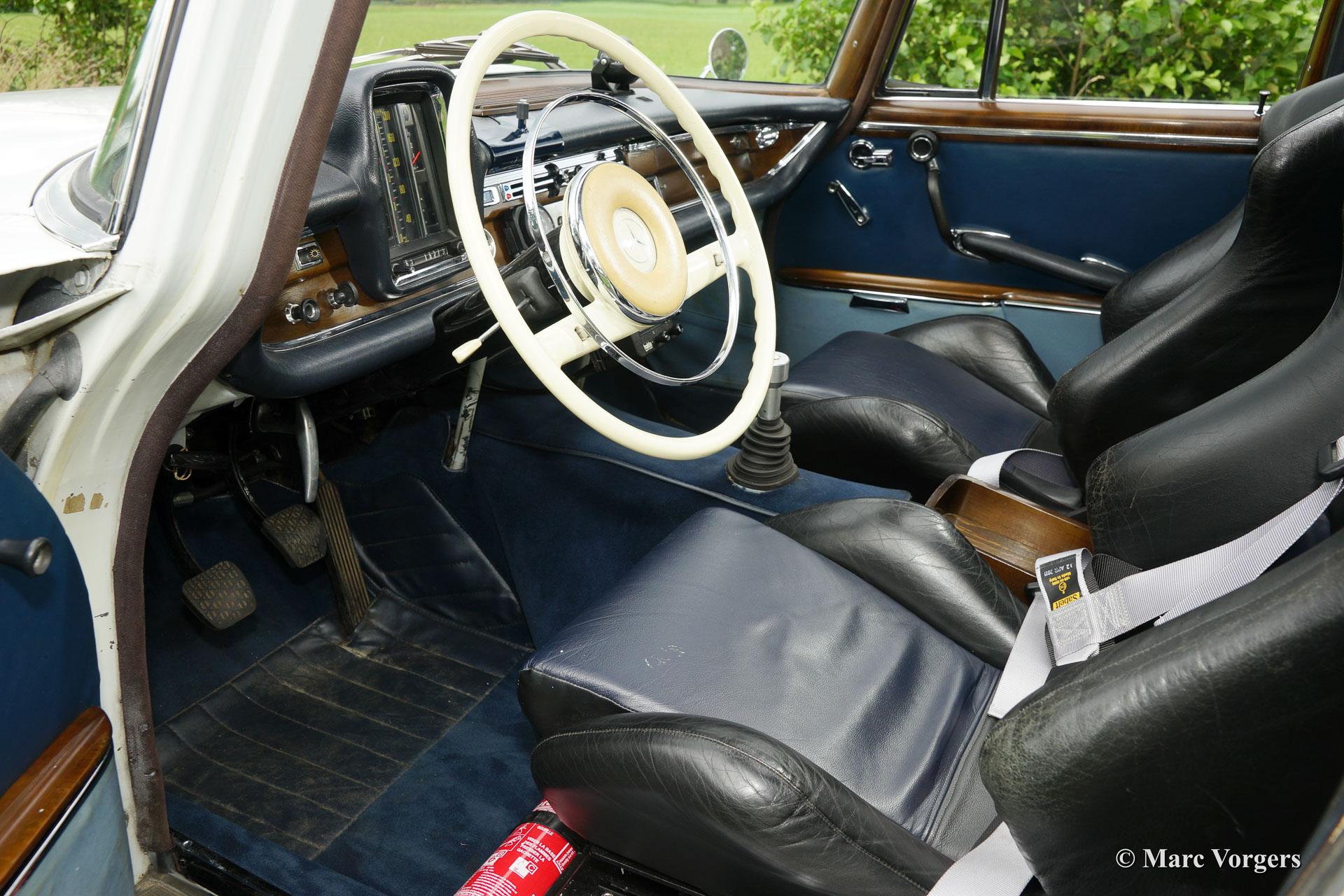 Mercedes Benz 300 SE, bouwjaar 1962. Kleur zeer lichtgrijs, met een blauw / grijs lederen rally geprepareerd interieur. Deze geweldige Mercedes-Benz werd uitvoerig rally geprepareerd en technisch sterk verbeterd ten opzichte van standaard 220-serie. Standaard werd de 300 SE voorzien van luchtvering, een dubbel remsysteem met vier schijfremmen en een aluminium 3-liter motor. Deze Mercedes-Benz 300 SE verkeert in zeer goede staat en de auto is uitstekend onderhouden.