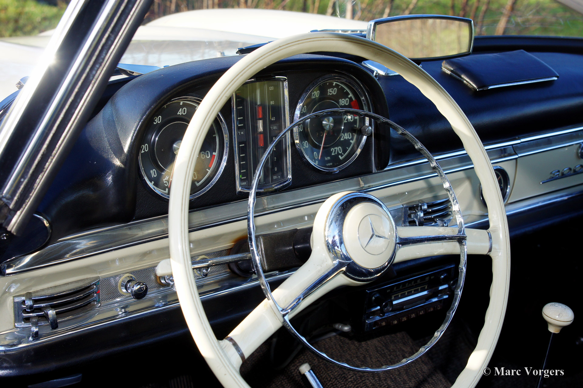 Mercedes-Benz 300 SL roadster, bouwjaar 1961. Kleur crème wit/crème witte hard top een zwart lederen interieur.