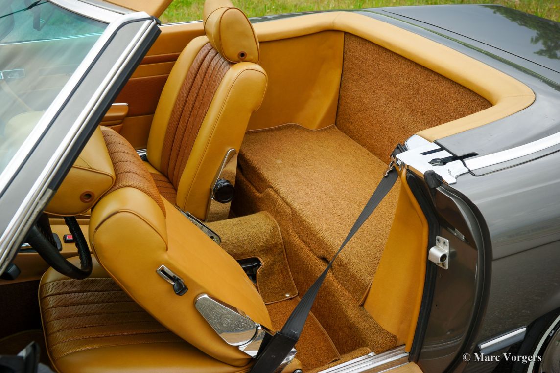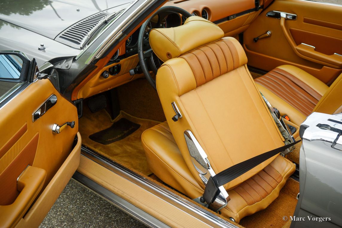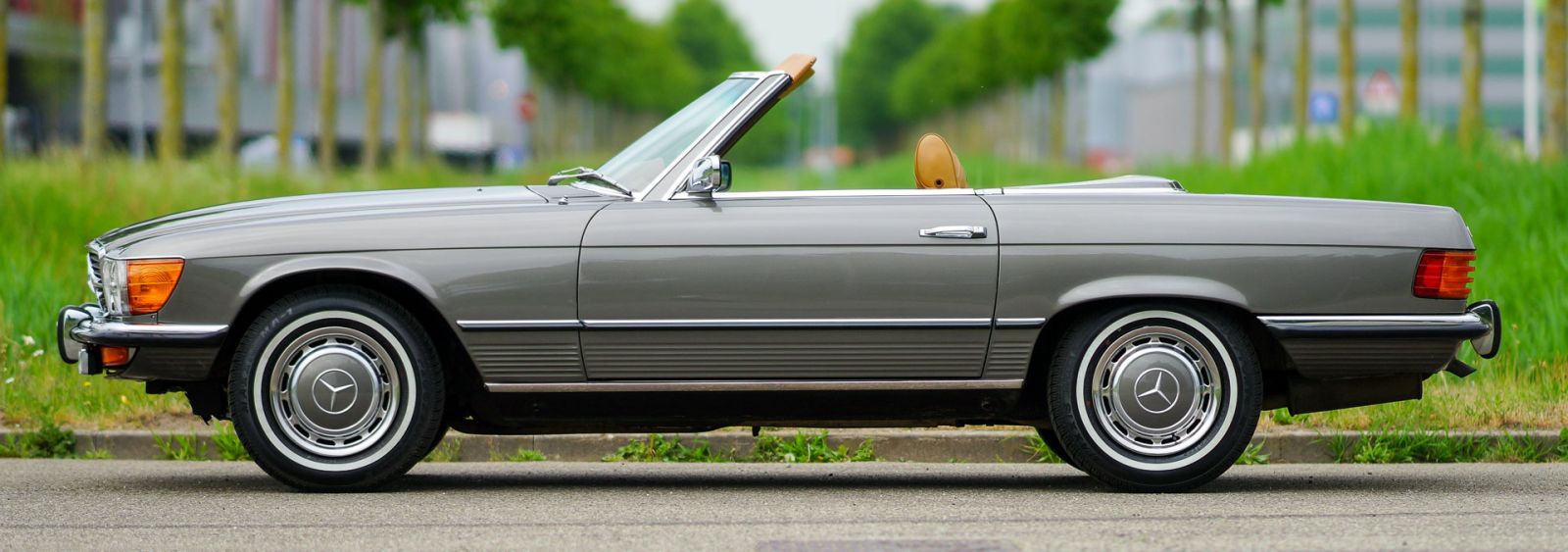 Mercedes-Benz 350 SL, jaar 1972. Kleur donkergrijs metallic gecombineerd met een cognacbruin ‘tex’ interieur. Zwarte mohair kap en originele hard-top in carrosseriekleur. Deze fantastische Mercedes 350 SL uit de R107-modellenreeks werd nieuw verkocht in Californië, VS. De automobiel is in 2020 naar Nederland geïmporteerd. De R107 is een gezochte Mercedes ‘evergreen’, het model is gebouwd van 1971 tot 1989. De 350 SL was het eerste model in de modelreeks. De 350 SL is uitgerust met een fantastische V8-motor die is gekoppeld aan een automatische versnellingsbak. Met een koppel van 286 Nm en 220 pk is de 350 SL een snelle luxe cabriolet. Met de hard-top erop verandert de 380 SL in een schitterende coupé. Van dit 350 SL-model werden slechts 15.000 exemplaren gebouwd. Dit exemplaar verkeert in een uitstekende conditie, de auto vertoont slechts lichte gebruikssporen. Ook de soft-top en de hard-top verkeren in een uitstekende conditie. De auto is voorzien van stuurbekrachtiging, airconditioning en een Alpine stereo radio met cassettespeler. Deze prachtige Mercedes 350 SL wordt compleet geleverd met de originele boekjes, originele gereedschapset en krik. Deze 350 SL rijdt en klinkt perfect, een zeer begeerlijk exemplaar!