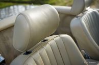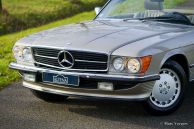 Mercedes-Benz 560 SL, jaar 1987. Kleur Rookzilver (Rauchsilber) metallic gecombineerd met een lichtbeige leren interieur en bijpassend tapijt. Donkerbruine soft top en een originele hard top in carrosseriekleur. Deze fantastische Mercedes 560 SL uit de R107 modelserie werd nieuw verkocht in North Carolina, USA. De auto heeft slechts twee Amerikaanse eigenaren gekend. Onlangs is de auto in Nederland geïmporteerd met slechts 89.000 mijl op de teller. Na aankomst in Nederland werden de US-bumpers ingeruild voor slanke chromen Europese bumpers. Op verzoek en tegen meerprijs kunnen de Amerikaanse koplampen worden omgewisseld voor Europese versies. Deze fantastische V8 aangedreven Mercedes-Benz verkeert zowel van binnen als van buiten in een uitstekende originele staat, de originele fabrieksstickers zijn nog aanwezig. De auto vertoont slechts de minste sporen van eerder gebruik. De auto is enkele jaren geleden perfect opnieuw gespoten in de originele kleur, dit alleen omdat de 35 jaar oude lak lichte sporen van gebruik vertoonde. Het originele interieur is in onberispelijke staat en de motorruimte is fris en schoon. De donkerbruin kleurige soft top is recentelijk vernieuwd en verkeert in nieuwstaat. De auto is voorzien van begeerlijke opties zoals airconditioning, cruise control, originele lichtmetalen velgen en een Becker stereo radio. De auto staat op goede 205/65 15 inch banden en de originele gereedschap set is aanwezig. Dit is geweldig rijdende en comfortabele Mercedes-Benz 560 SL in fantastische kleuren en in excellente conditie!