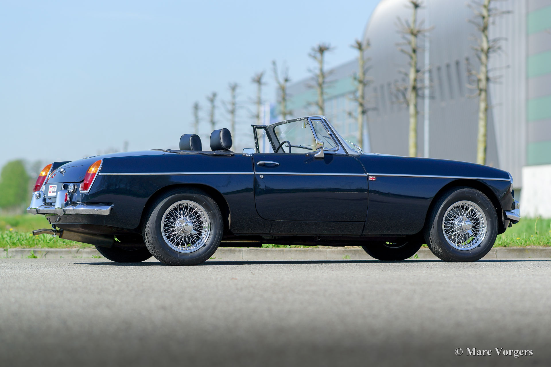 De MG B was de eerste MG (Morris Garage) met een zelfdragende carrosserie. De MG B roadster werd gebouwd tussen 1962 en 1980. De vroegere modellen zijn te herkennen aan de chroom bumpers. De latere modellen werden onder invloed van de Amerikaanse regelgevingen op het gebied van veiligheid voorzien van kunststof exemplaren.