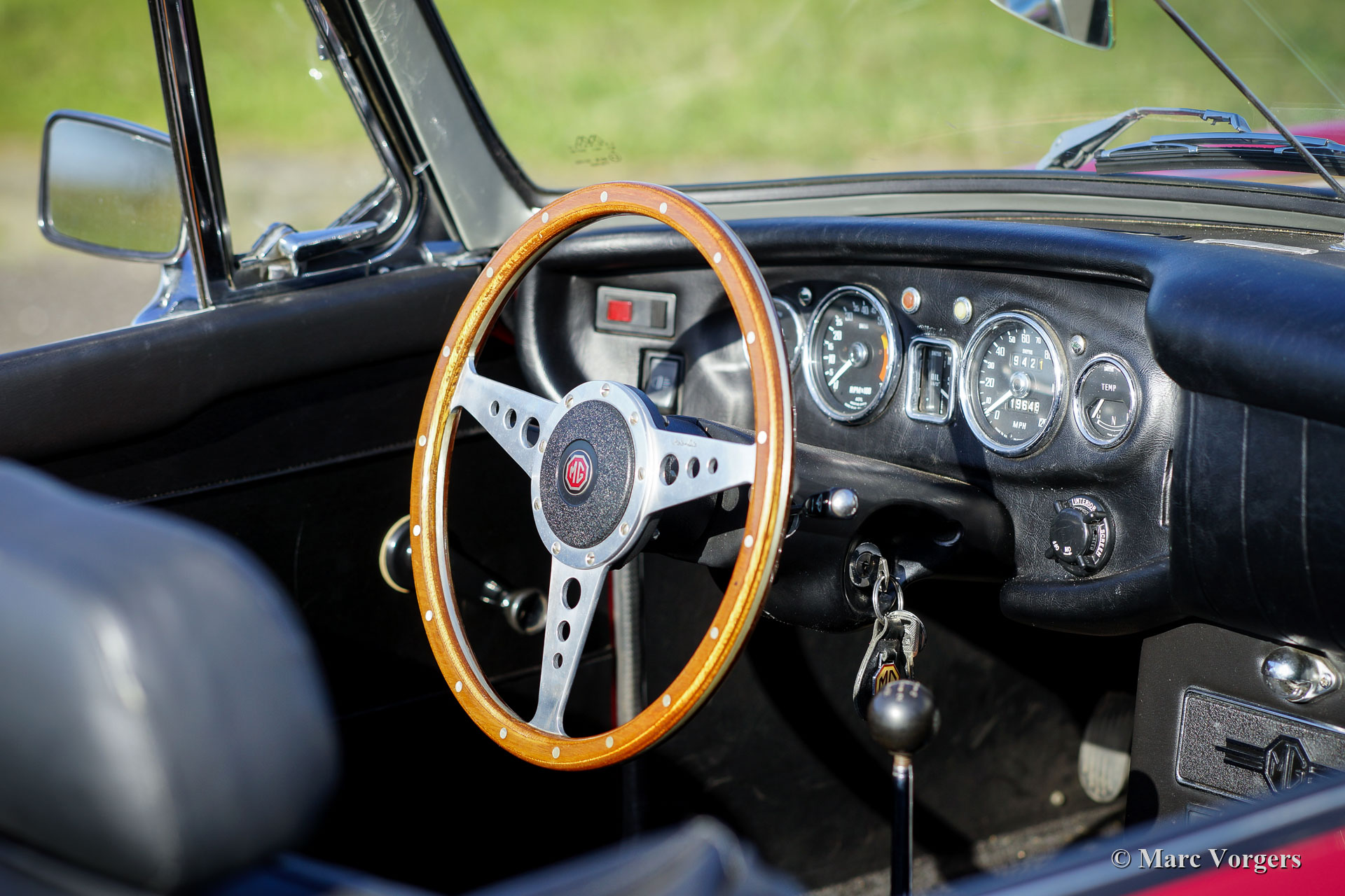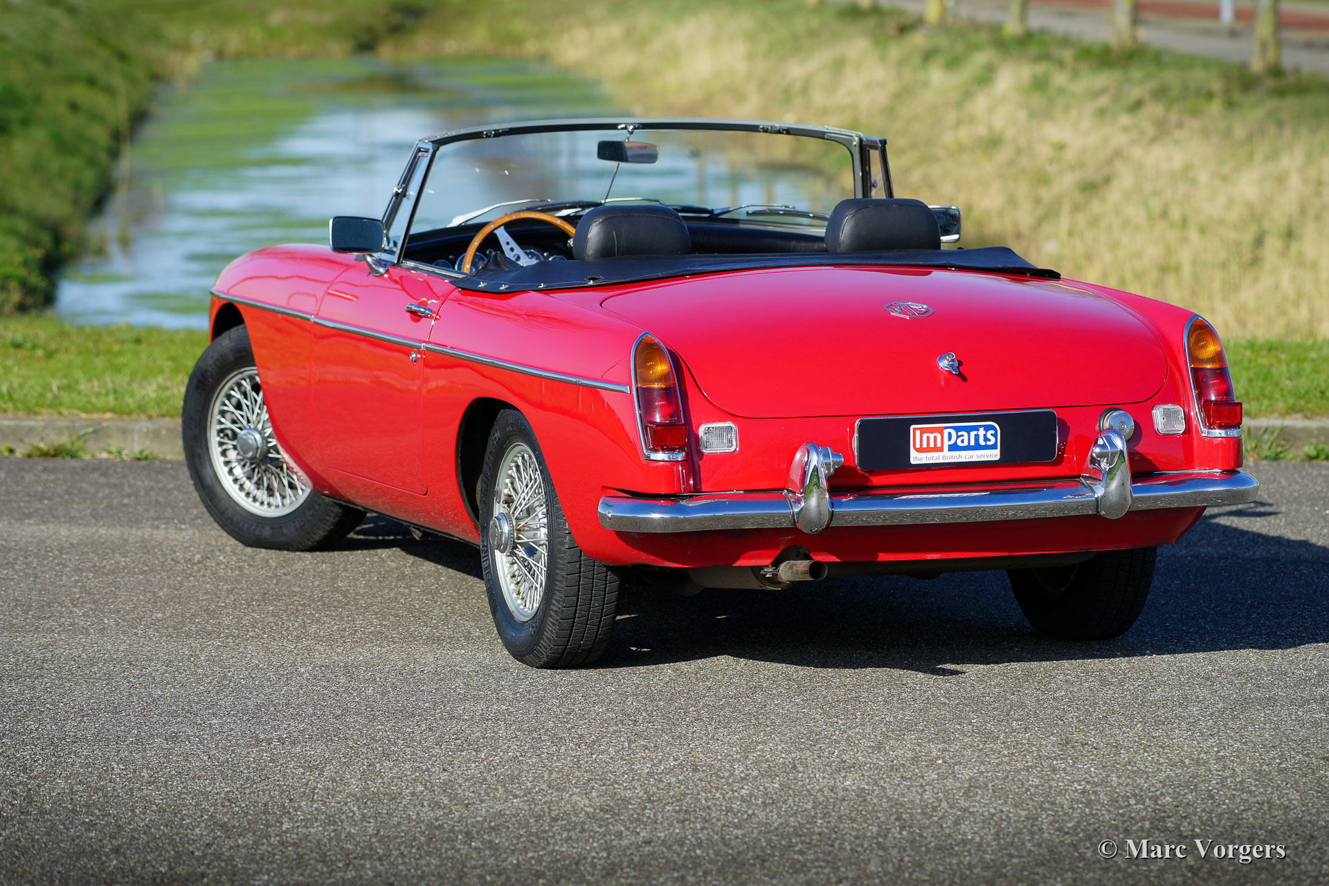MG MGB roadster, jaar 1968. Kleur rood gecombineerd met een zwartleren interieur en zwart tapijt. Zwarte vinyl soft-top en hood-cover. Deze prachtige MG MGB roadster werd nieuw verkocht in de Verenigde Staten van America. In 1997 werd de auto naar Nederland verscheept. De laatste Nederlandse eigenaar koestert de auto sinds het jaar 2005. Deze MGB roadster verkeert in zeer goede conditie en de auto rijdt voortreffelijk. Deze MG is uitgerust met overdrive, zilver gelakte spaakwielen, een MotoLita sportstuur met houten rand en een oliekoeler. De MGB is een zeer betrouwbare en robuuste klassieke auto. De prachtige -lente, zomer, herfst- open rijervaring is inbegrepen!