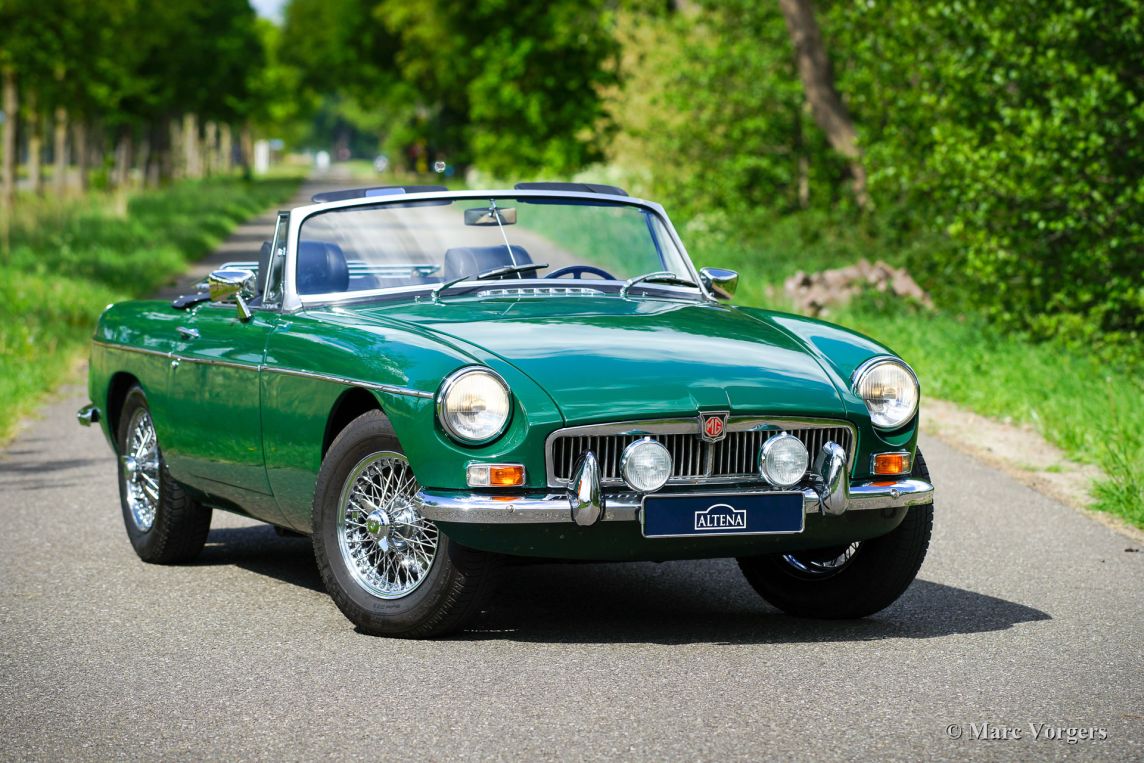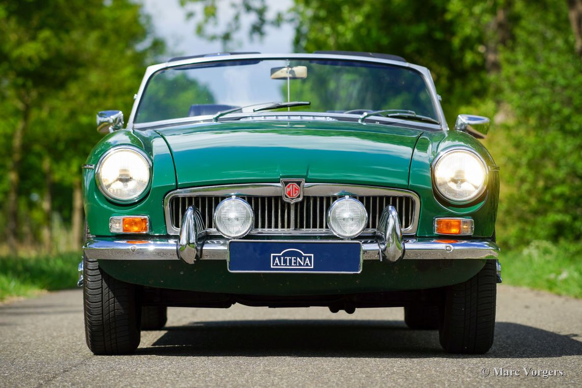 MG MGB roadster, jaar 1968. Chassisnummer GHN4U14193XX, motornummer 18V547EL2374XX. Kleur British Racing Green gecombineerd met een zwartleren interieur en zwart tapijt. Zwarte soft-top, hood-cover en tonneau-cover. Deze mooie MGB roadster werd in het jaar 1991 vanuit de USA naar Nederland geïmporteerd. In Nederland werd de auto opnieuw gespoten en uitgebreid gerenoveerd. De eerste Nederlandse eigenaar heeft de auto gekoesterd van 1995 tot 2018. We hebben de auto in 2018 verkocht aan de tweede Nederlandse eigenaar. De auto is sinds 1995 onderhouden bij Altena Classic Service, alle facturen zijn aanwezig. De MGB verkeert in zeer goede staat en de auto rijdt perfect. De auto heeft in de loop der jaren deelgenomen aan tal van klassieke (tour-) rally's. De auto heeft zelfs de beroemde Tulpen Rallye eens gewonnen! Deze MGB is uitgerust met overdrive, chromen spaakwielen met ‘knock off’ wielmoeren, Michelin-banden, 2 chromen op de deur gemonteerde achteruitkijkspiegels en twee periode correcte Marchal-mistlampen op de voorbumper. Deze MGB roadster is klaar om genoten te worden door een nieuwe eigenaar!