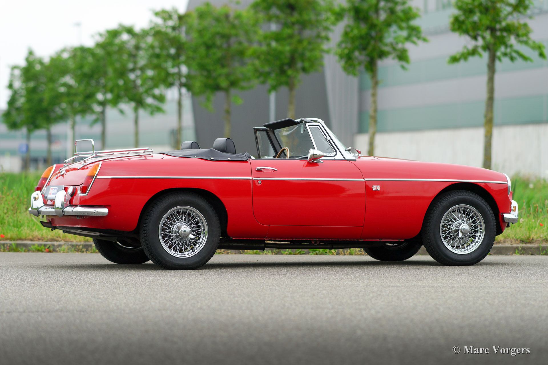 De MG B was de eerste MG (Morris Garage) met een zelfdragende carrosserie. De MG B roadster werd gebouwd tussen 1962 en 1980. De vroegere modellen zijn te herkennen aan de chroom bumpers. De latere modellen werden onder invloed van de Amerikaanse regelgevingen op het gebied van veiligheid voorzien van kunststof exemplaren.