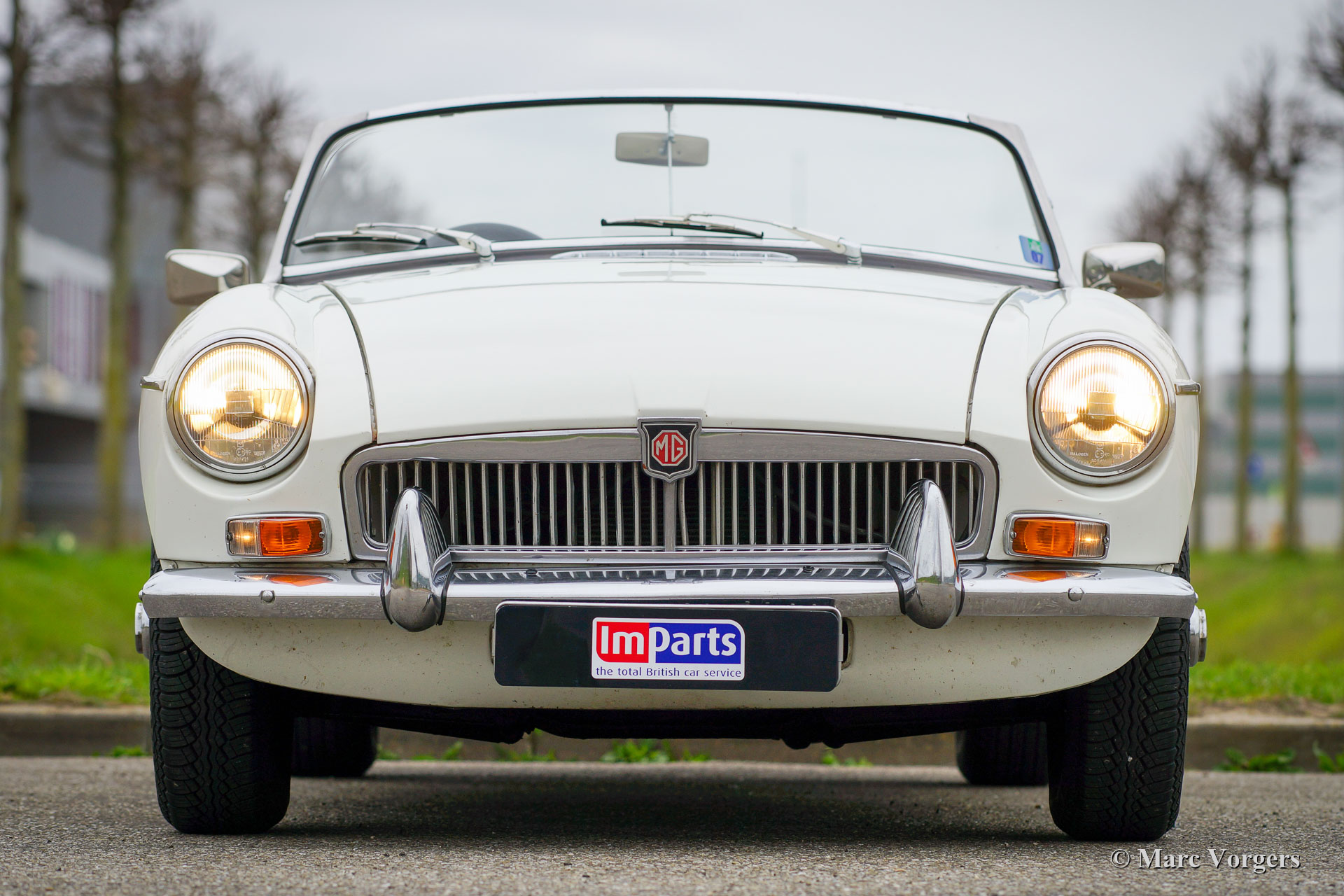 De MG B was de eerste MG (Morris Garage) met een zelfdragende carrosserie. De MG B roadster werd gebouwd tussen 1962 en 1980. De vroegere modellen zijn te herkennen aan de chroom bumpers. De latere modellen werden onder invloed van de Amerikaanse regelgevingen op het gebied van veiligheid voorzien van kunststof exemplaren.