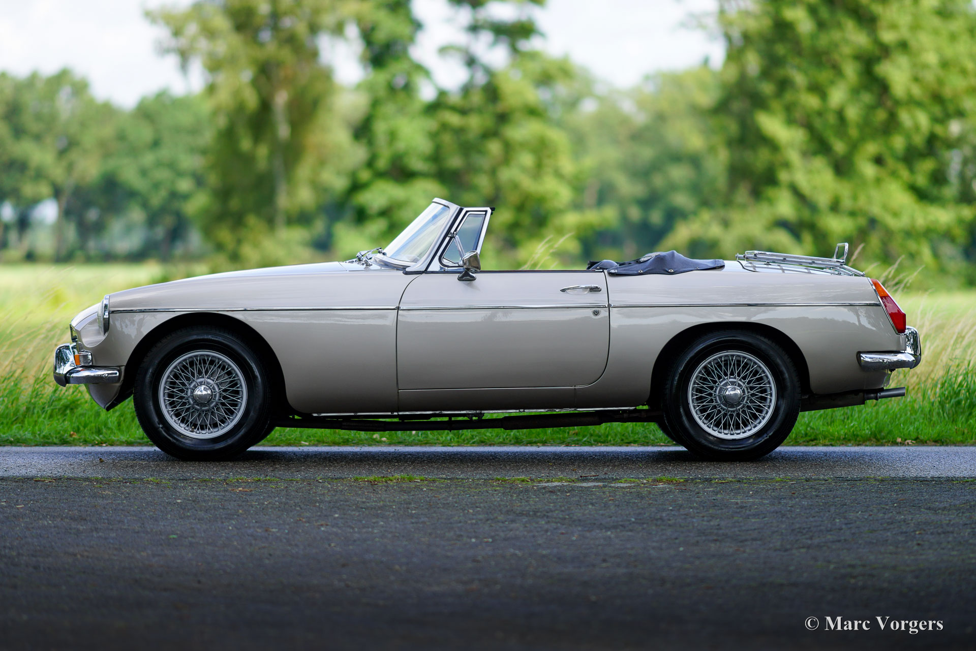De MG B was de eerste MG (Morris Garage) met een zelfdragende carrosserie. De MG B roadster werd gebouwd tussen 1962 en 1980. De vroegere modellen zijn te herkennen aan de chroom bumpers. De latere modellen werden onder invloed van de Amerikaanse regelgevingen op het gebied van veiligheid voorzien van kunststof exemplaren.