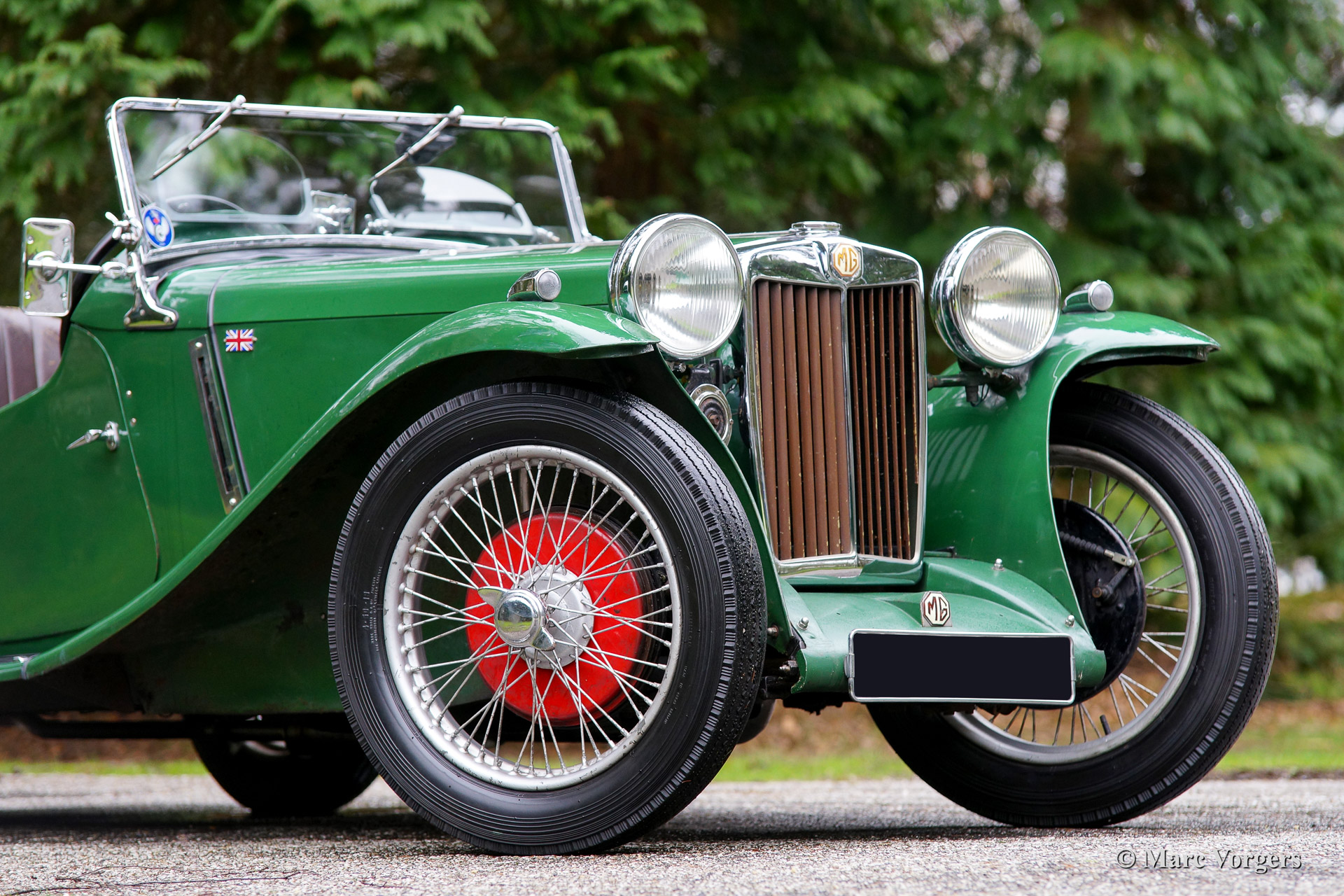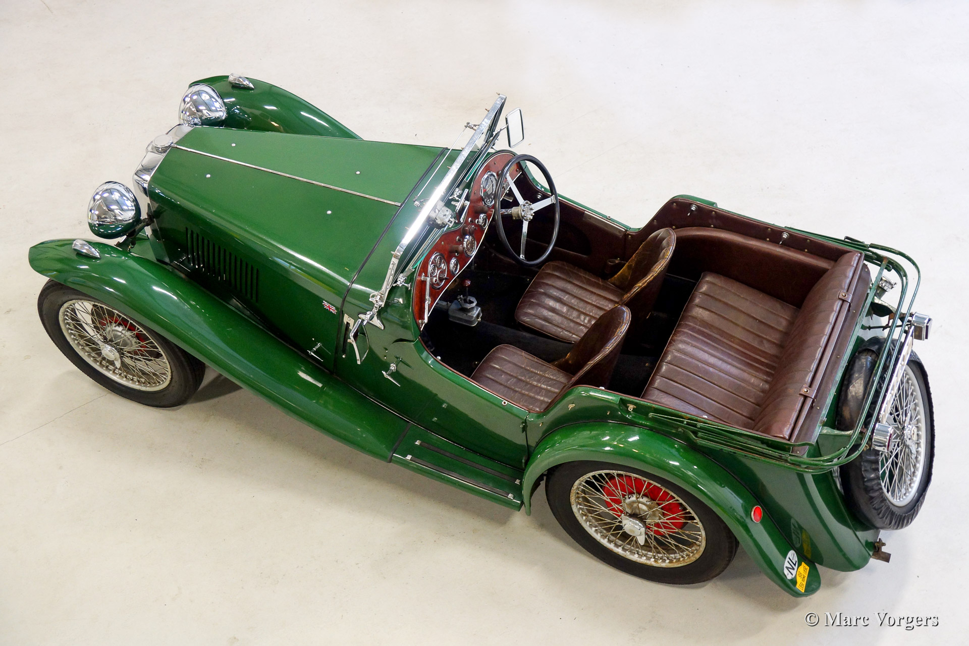 MG PB 'four seater', bouwjaar 1935. Kleur groen met een bruin lederen interieur en zwart tapijt. Zilver gelakte spaakwielen en rood gelakte trommelremmen. Deze zeldzame MG PD 'open four seater' werd nieuw geleverd in Nederland. De automobiel werd in de jaren 1970 gerestaureerd. Alle originele delen werden onderhanden genomen, gereinigd en waar nodig gereviseerd. De carrosserie werd nieuw gespoten met originele celluloselak. Nu 44 jaar later is de auto nog altijd in goede originele staat. Een geweldige tijdmachine met een geweldig patina. De voorgaande eigenaren zijn bekend evenals de historie. De auto nam in 1995 deel aan de 'LeJog', in 1996 aan de 'Scottish Six Day Trials', in 1999 aan de 'Liege-Rome-Liege' en aan diverse evenementen in Nederland. Er werden slechts 526 MG PB's gebouwd van welke een derde deel uitgerust was met een 'open four seater' carrosserie.