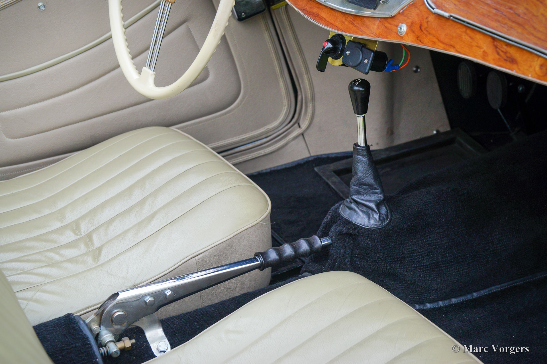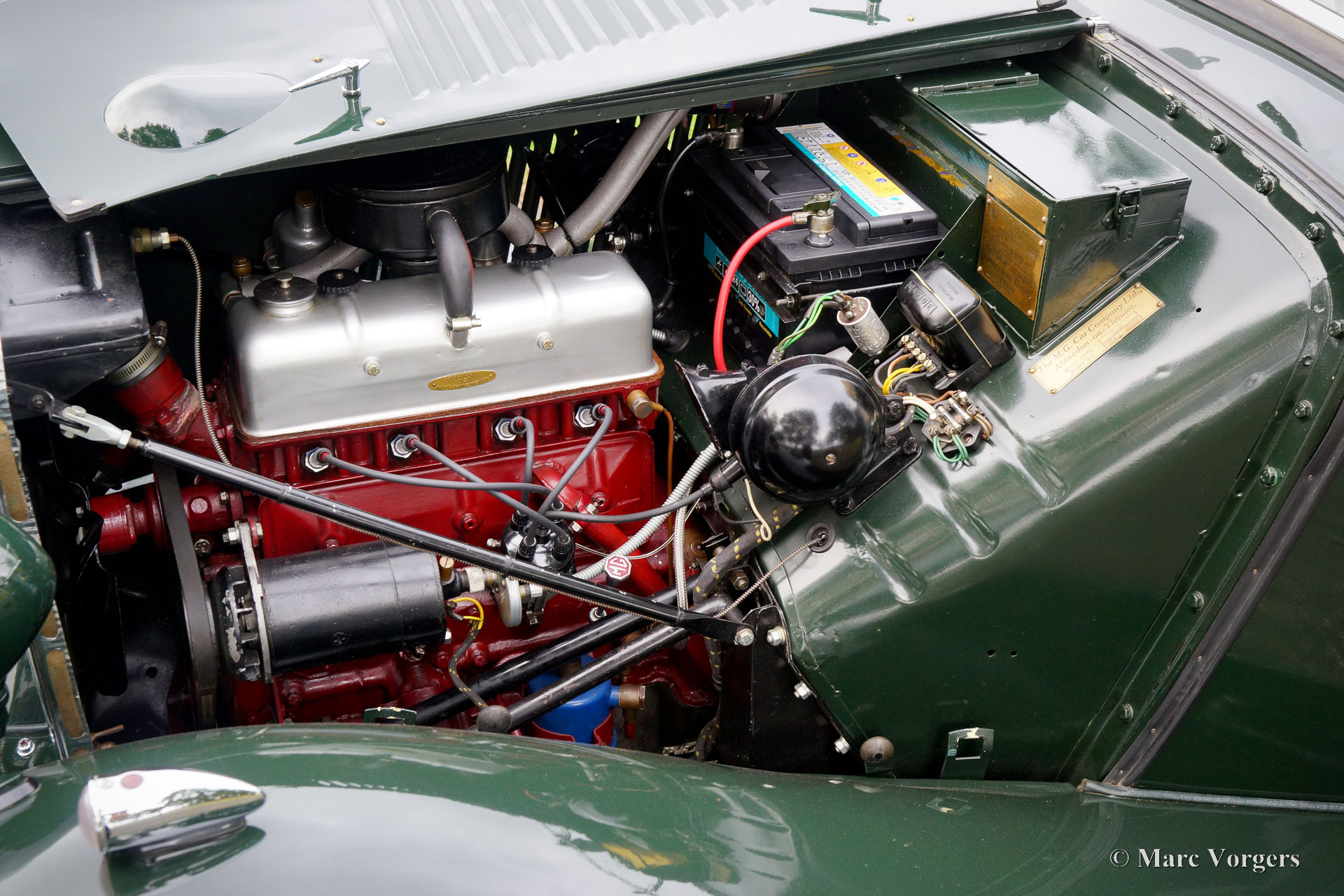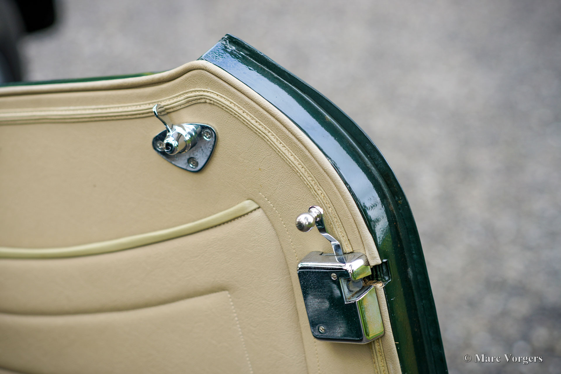 MG TD, jaar 1952. Kleur British Racing Green gecombineerd met magnolia (lichtbeige) interieur met lederen stoelen en zwart tapijt. Beige vinyl kap en beige mohair tonneau cover. Deze prachtige MG TD is nieuw verkocht in de Verenigde Staten, de auto is in het jaar 2000 naar Nederland geïmporteerd. Na aankomst in Nederland is de auto uitvoerig naar perfectie gerestaureerd (inclusief de kabelboom). Sindsdien heeft de auto slechts 4852 mijl gereden. De afgelopen 22 jaar is de MG gekoesterd door MG-liefhebbers die de auto in uitstekende staat hebben gehouden! De MG ‘EPAG’-motor loopt feilloos en alle bedieningselementen werken zoals het hoort. Deze MG TD toont alle originele details zoals het originele stuur en de stalen wielen met chromen wieldoppen. Deze prachtige en super originele MG TD kan in elk land geïmporteerd worden. Deze fraaie MG TD is een waar pareltje voor de liefhebber.
