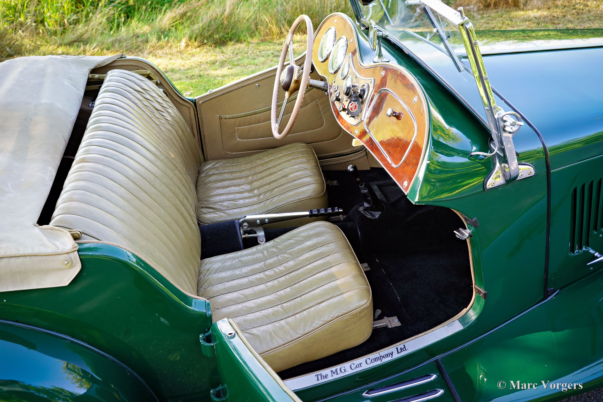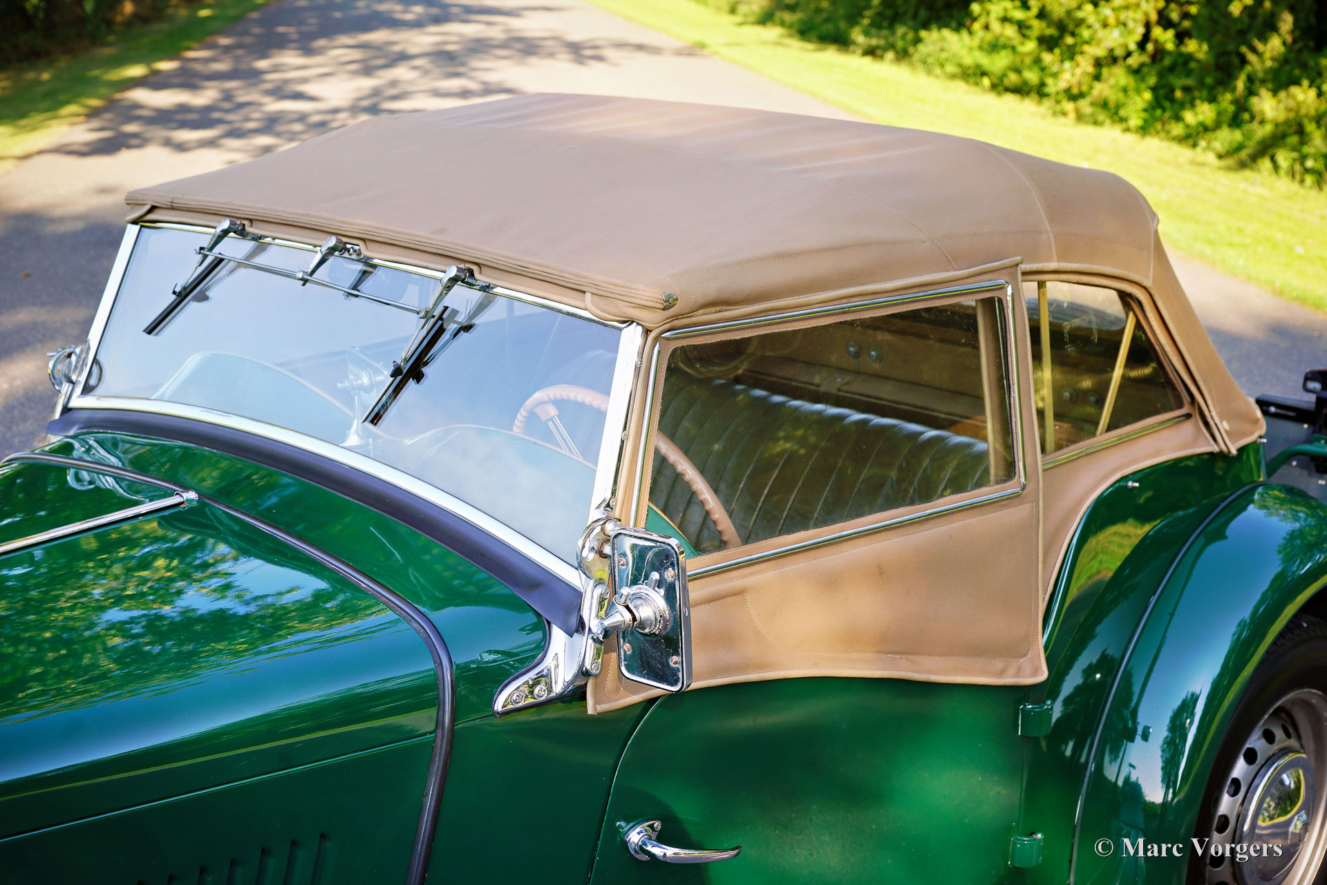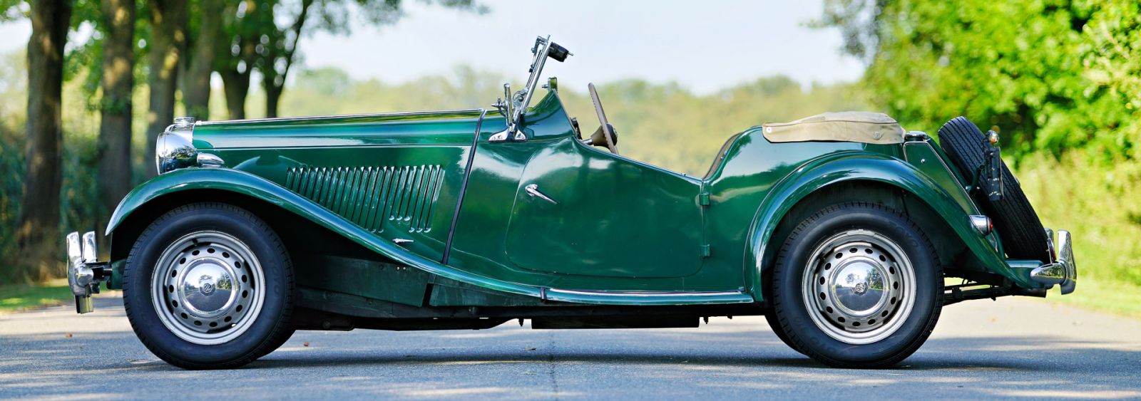 MG TD, jaar 1953. Kleur British Racing green gecombineerd met een beige lederen interieur en zwart tapijt. Voorzien van een beige canvas kap, beige zijruitframes en een beige kapafdekking. Deze prachtige MG TD is nieuw verkocht in de VS. Nadat de auto naar Nederland was geïmporteerd, is de auto uitgebreid gerestaureerd. In 1997 is de MG TD verkocht aan de huidige eigenaar die de auto al 27 jaar koestert! Deze MG TD is perfect onderhouden en up-to-date gehouden. De auto verkeert in een zeer goede staat en de auto rijdt perfect. We hebben nog nooit in een fijner rijdende en sturende MG TD gereden. De 5-versnellingsbak (Ford) is een mooie upgrade. De MG TD is een ‘British-to the bone’ vintage sportwagen met een geweldige klassieke open rijbeleving en prachtige designdetails. De auto toont alle originele details zoals het walnotenhouten dashboard, het ‘geveerde’ beigekleurige stuurwiel en de stalen velgen met chromen wieldoppen. Deze liefdevol onderhouden MG TD is een geweldige vondst voor de MG-liefhebber. De auto staat klaar om door een nieuwe liefhebber te worden genoten.