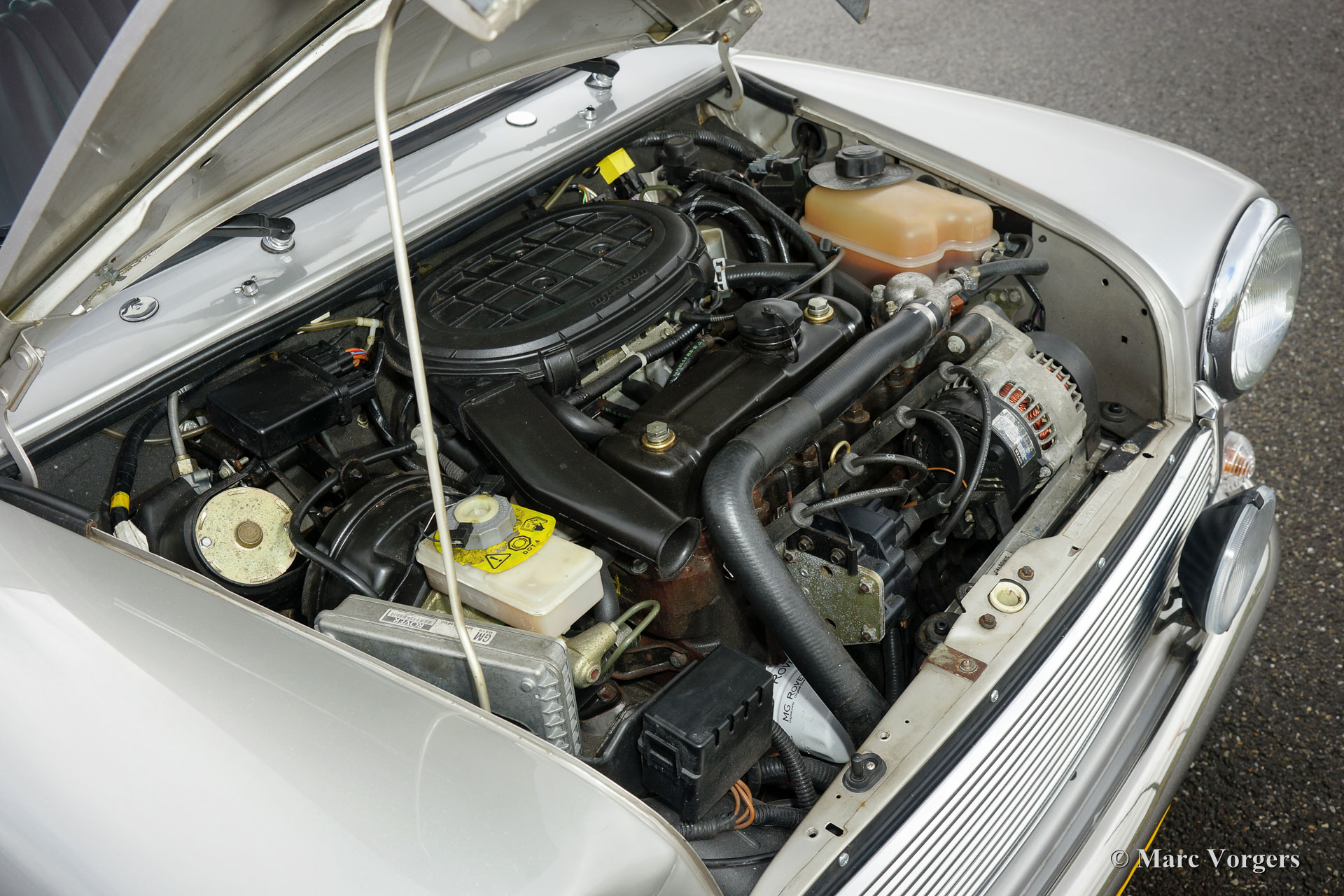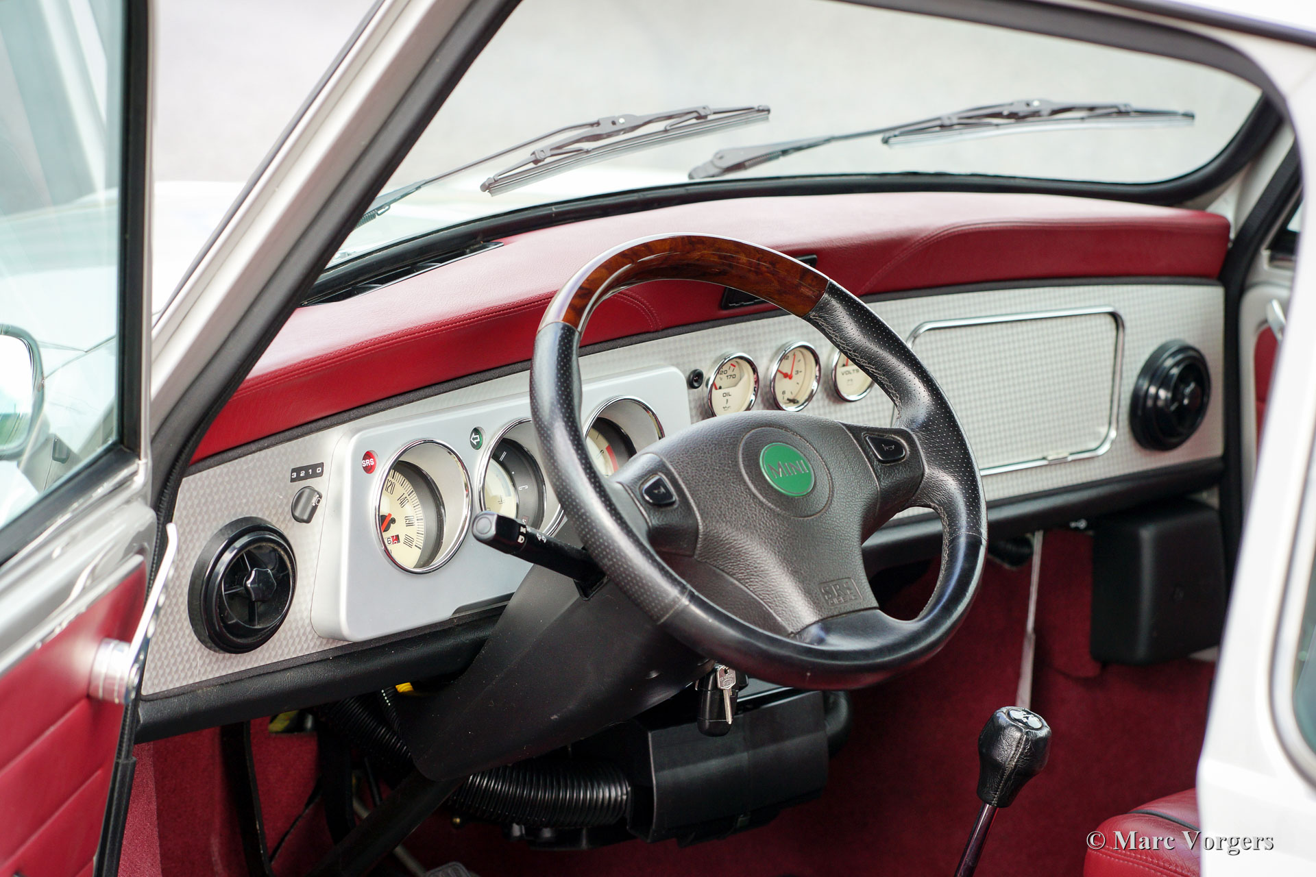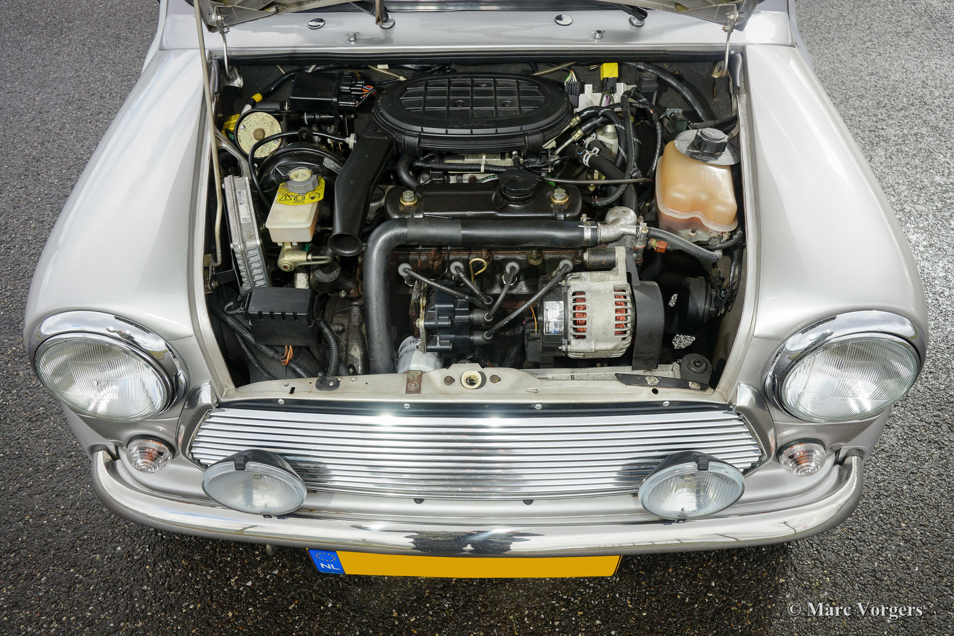 Rover Mini 40th Anniversary, jaar 2001. Kleur ‘Platinum’ zilver metallic met een ‘Burgundy’ roodlederen interieur en rood tapijt. Deze geweldige Mini werd in 2003 vanuit Duitsland ingevoerd. De auto verkeert in sublieme originele staat, de auto rijdt geweldig en heeft vanaf nieuw slechts 35.000 km gereden! De auto toont prachtige details zoals een gepolijst aluminium dashboard, aluminium deurgrepen, magnolia dashboard instrumenten met het 40 logo erin. Aan de buitenkant vallen de wielkastverbreders op en de prachtige lichtmetalen wielen. Alle ‘badges’ op de carrosserie inclusief de ‘GB’ aanduiding zijn origineel voor deze zeldzame uitvoering. Er werden slechts 800 exemplaren gebouwd in zeven kleuren. De auto is enige maanden geleden voorzien van nieuwe banden en er is een Nederlands instructieboekje aanwezig.