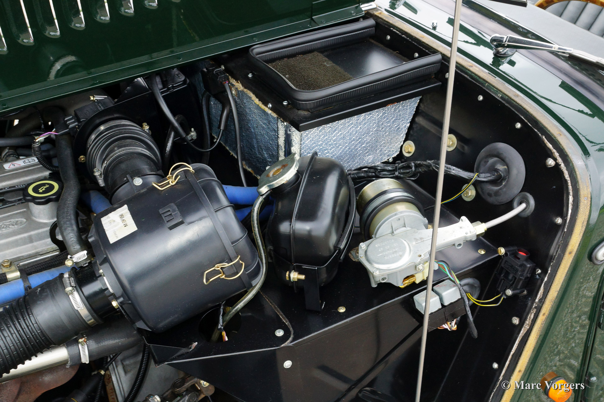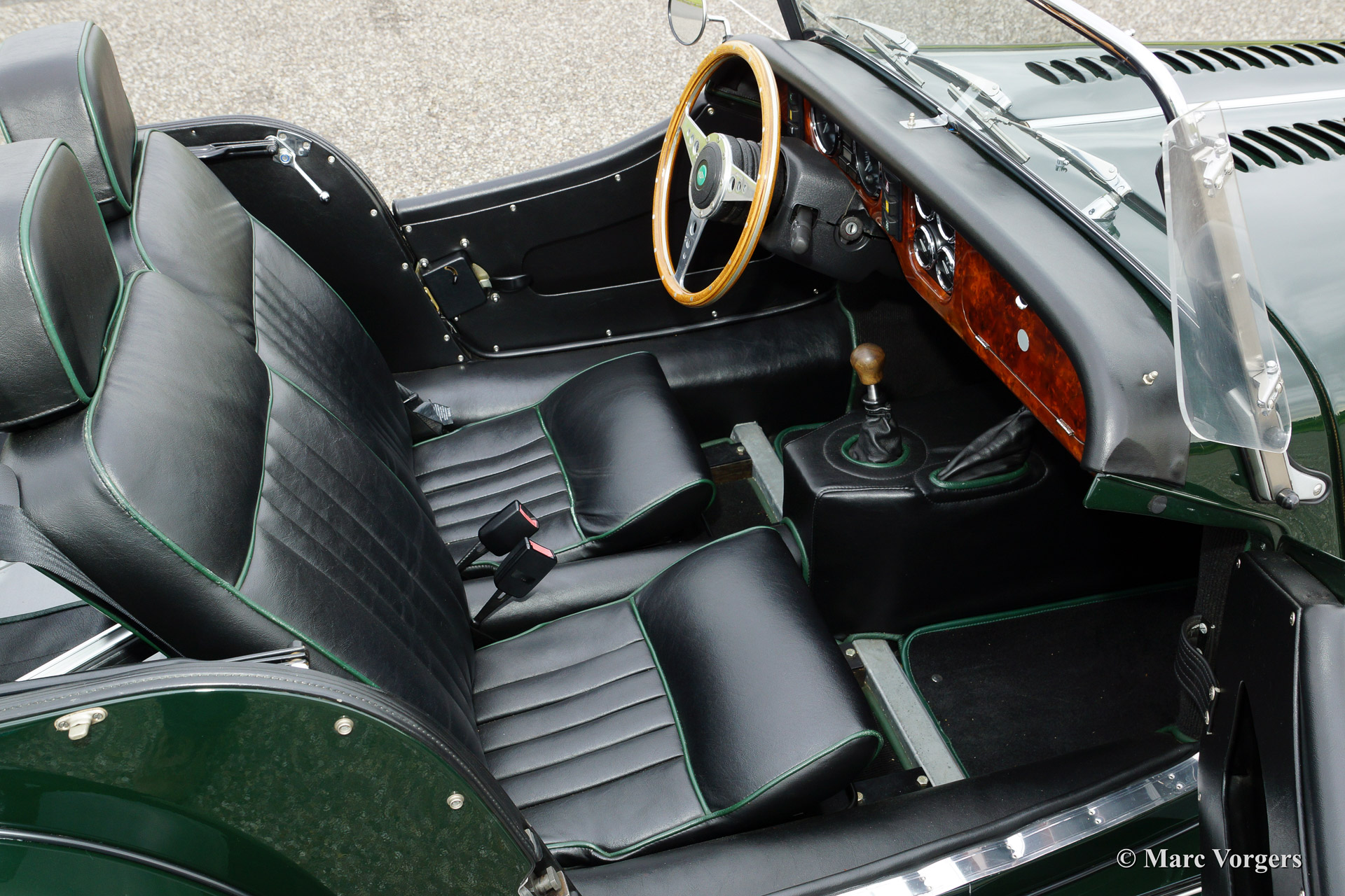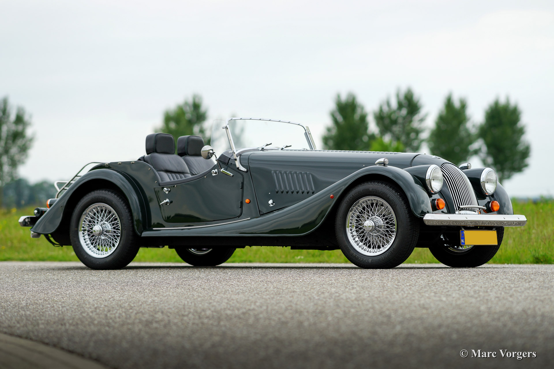 Morgan 4/4 1800, bouwjaar 1998. Kleur donker British Racing Green met een zwart lederen interieur afgewerkt met groene biezen. Zwarte vinyl kap en tonneau cover. Deze prachtige Morgan 4/4 werd nieuw geleverd door de Nederlandse importeur Nimag. Vanaf dag een heeft de auto 44.177 kilometer gereden. De auto verkeert in sublieme staat, als nieuw! Het serviceboekje is aanwezig en de (service) historie is volledig bekend. Deze Morgan rijdt geweldig! De auto is voorzien van chroom spaakwielen, een chroom kofferrek, verchroomde bumpers, een houten dashboard, badge bar en een speciale parapluberging in een buis boven de achterbumper!